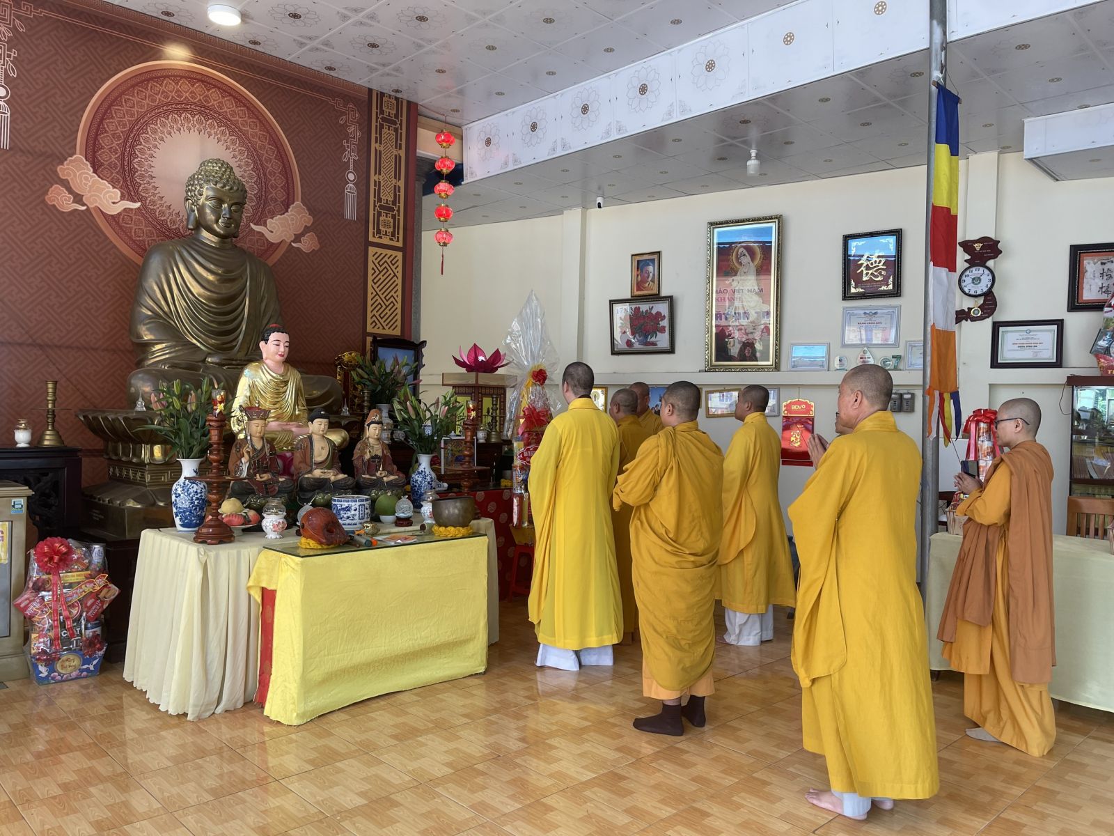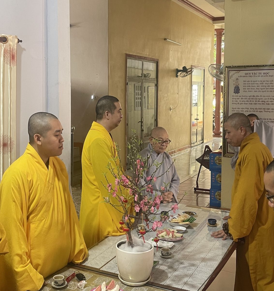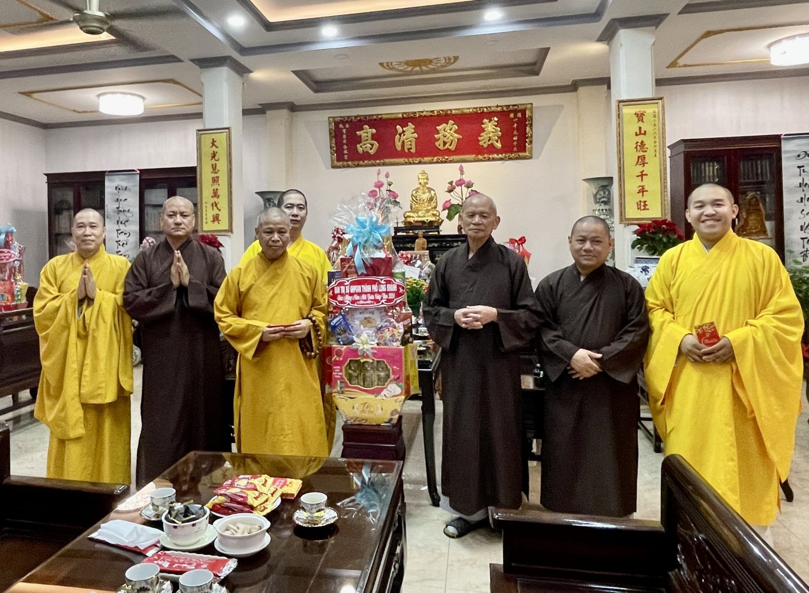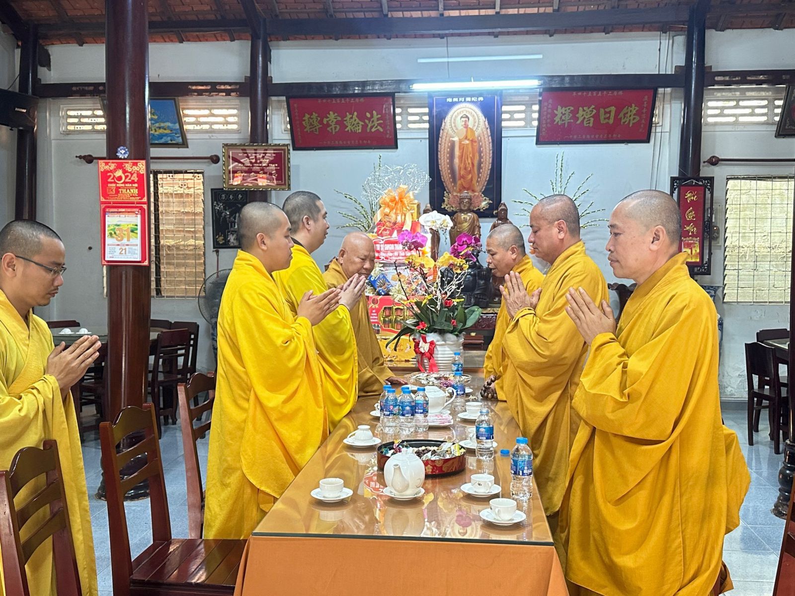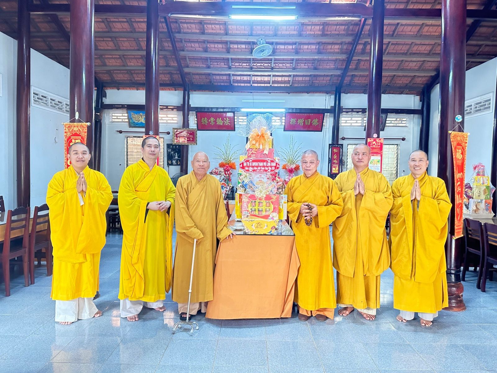Chư tôn đức chia làm 2 đoàn. Đoàn 1: Ban Trị sự GHPGVN Tp. Long Khánh đã đến trụ sở Thành ủy Thành Phố để chúc Tết Thành ủy - HĐND - UBND - UBMTTQVN, và Công an Tp. Long Khánh. Phái đoàn đi do Đại Đức Thích Giác Đăng - phó ban thường trực làm trưởng đoàn, cùng chư tôn đức trong ban thường trực.