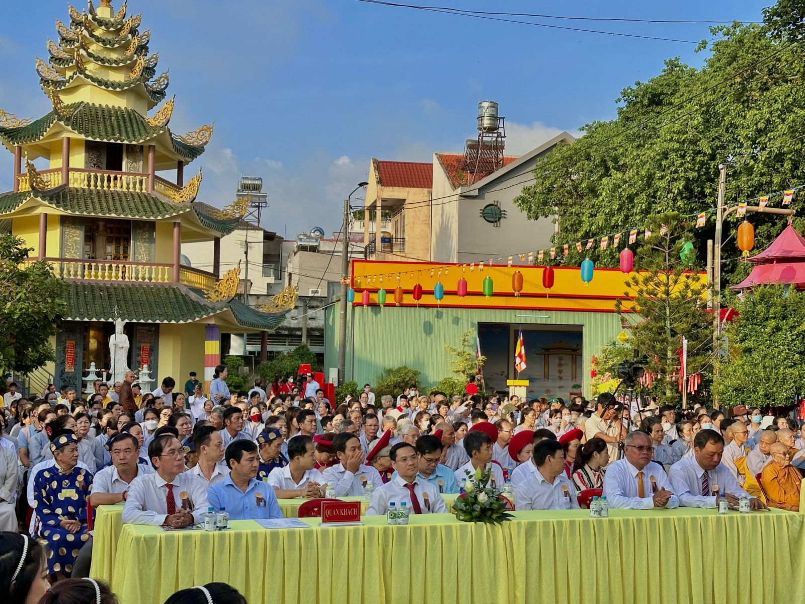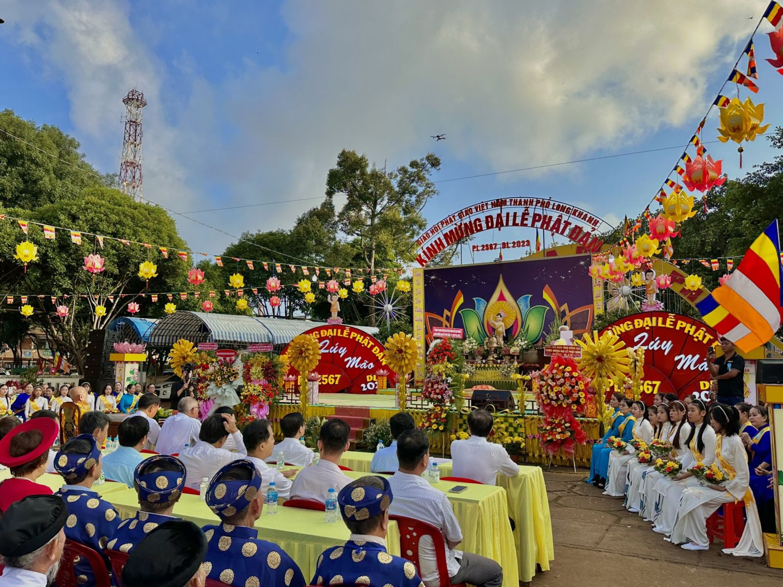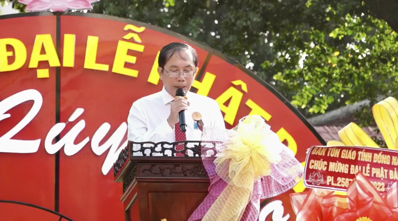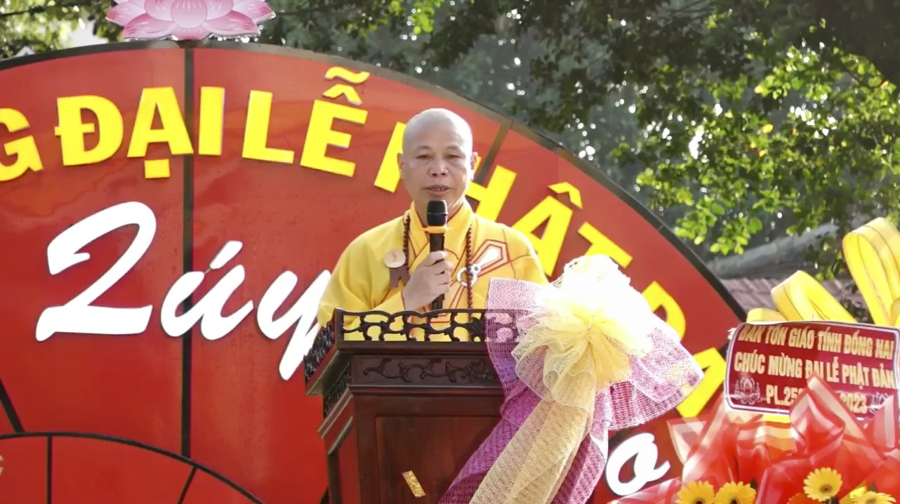 Phát biểu tại Đại Lễ Phật đản, đồng chí Nguyễn Trung Tín - Ủy viên Ban Thường vụ Thành ủy, Chủ tịch Ủy ban MTTQVN thành phố ghi nhận sự đóng góp quan trọng của các chức sắc, Tăng, Ni và đồng bào Phật tử trên địa bàn đối với những thành tựu mà thành phố đã đạt được trong thời gian qua; đồng thời bày tỏ sự tin tưởng quý vị chức sắc và đồng bào Phật tử, kêu gọi tiếp tục phát huy truyền thống “đồng hành cùng dân tộc”, hưởng ứng các phong trào thi đua yêu nước, các chủ trương, chính sách của Đảng, Nhà nước và của tỉnh, thành phố, góp phần xây dựng quê hương ngày càng phát triển phồn vinh và hạnh phúc.