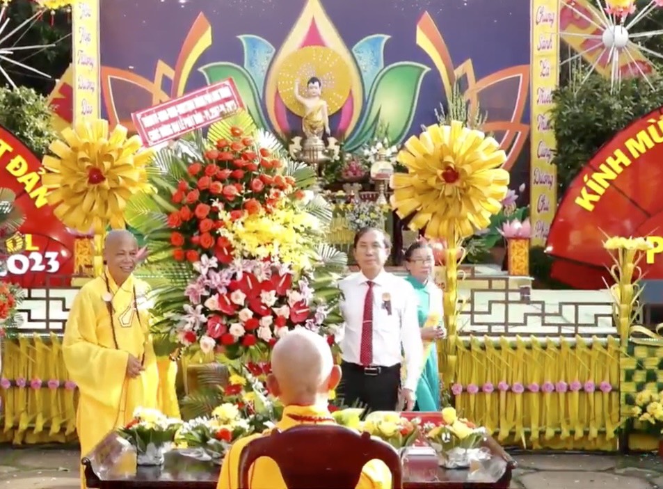 Dịp này, các chư tăng ni, phật tử cũng được nghe Đồng Chí Bùi Quốc Thể, đọc thư chúc mừng Đại lễ Phật đản, Phật lịch 2567 - Dương lịch 2023 của Tỉnh ủy - HĐND - UBND - UBMTTQVN tỉnh, gửi lời chúc mừng Ban Trị sự Giáo hội Phật giáo Việt Nam thành phố Long Khánh, chư vị giáo phẩm, tăng, ni và đồng bào Phật tử đón một mùa Phật đản an lạc, hạnh phúc.