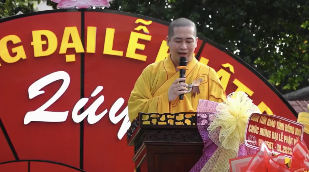 Tại buổi lễ, Hòa thượng Thích Huệ Tâm - Chứng minh Ban Trị sự Giáo hội Phật giáo Việt Nam Tỉnh Đồng Nai, Thành phố Long Khánh tuyên đọc Thông điệp Phật đản Phật lịch 2567 của Đức Pháp chủ Giáo hội Phật giáo Việt Nam.