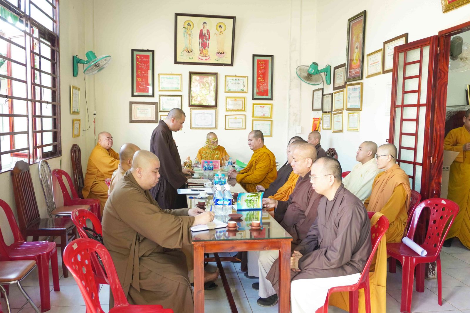 Sau phiên làm việc thường trực, Ban Trị sự tỉnh và Ban Trị sự Tp. Long Khánh đã tiến hành phiên họp mở rộng cùng với Tăng Ni trụ trì các Tự viện.