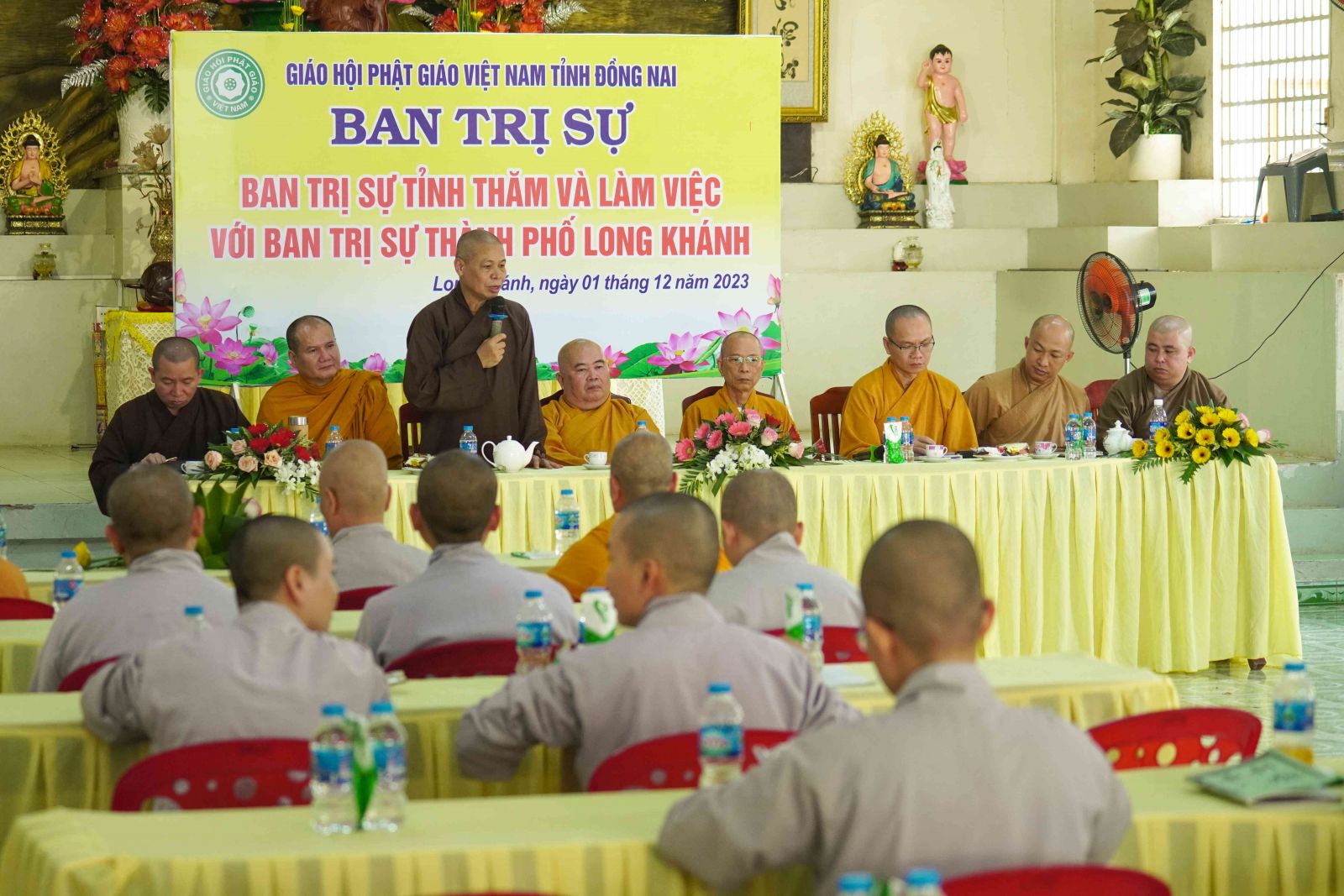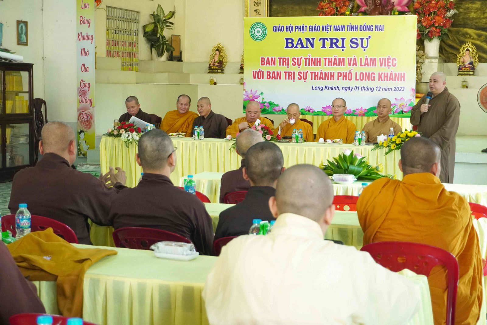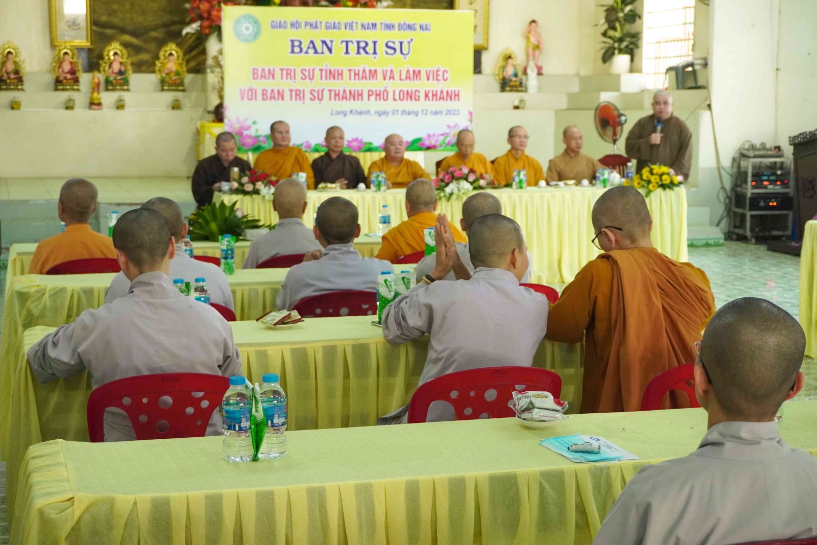 Tại phiên họp mở rộng của Ban Trị sự tỉnh và Ban Trị sự Tp. Long Khánh. ĐĐ. Thích Thiện Trí – Phó Thư ký, Chánh Văn phòng Ban Trị sự tỉnh đã đại diện đoàn phổ biến các một số nội dung cơ bản và lấy ý kiến đóng góp của Tăng Ni về việc triển khai Quy chế số 794 về việc ban hành Quy định thành lập cũng như Quản trị cơ sở Tự viện của GHPGVN và thông qua Thông tư 795 về việc thành lập ban Quản Trị các cơ sở Tự viện của nhiệm kỳ 2022 – 2027.