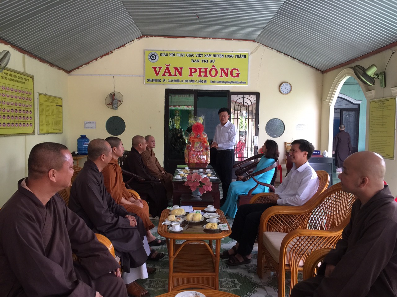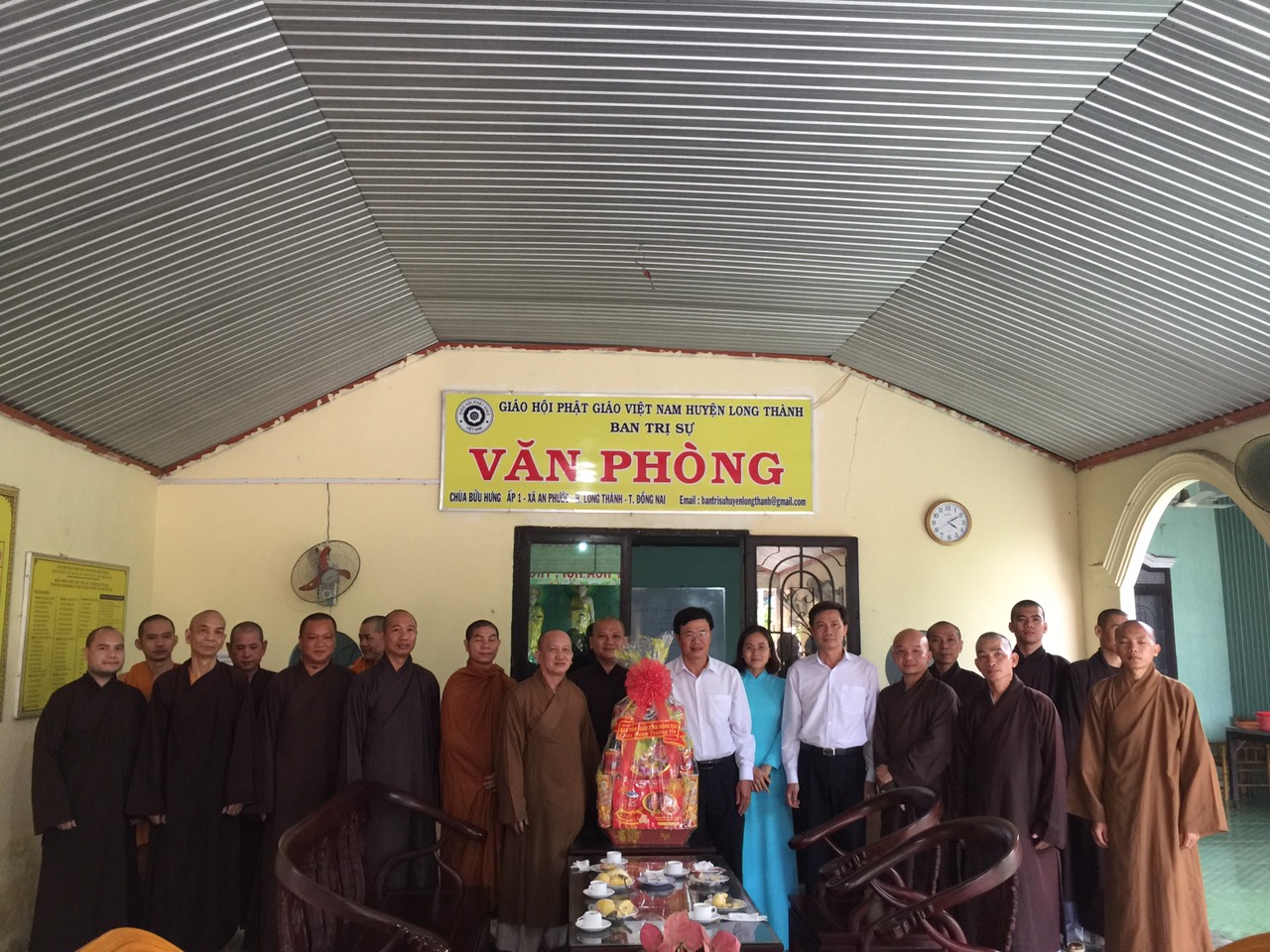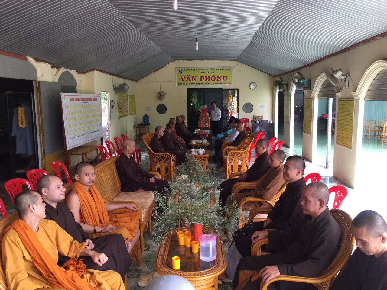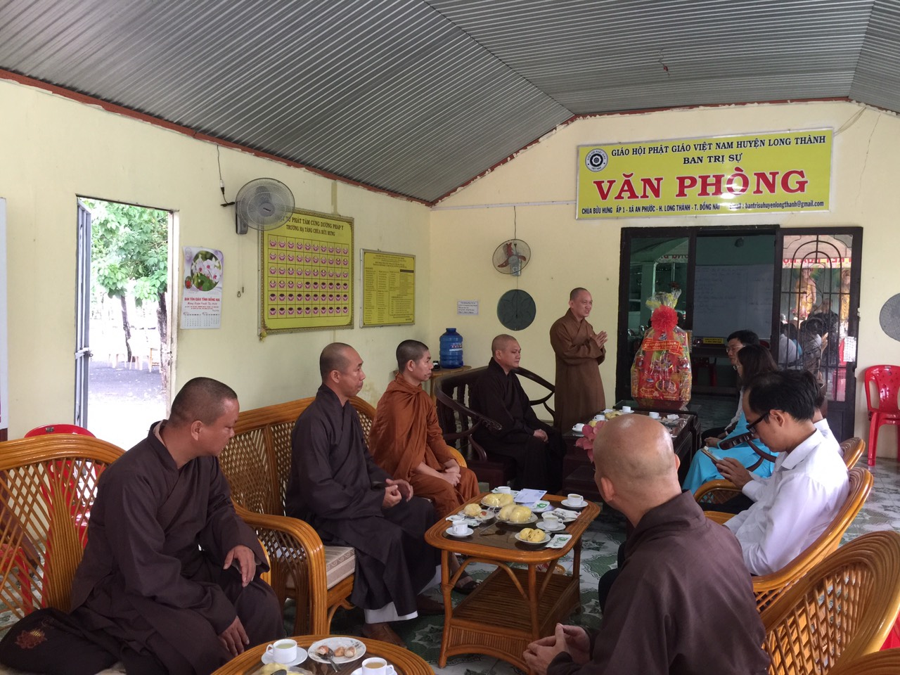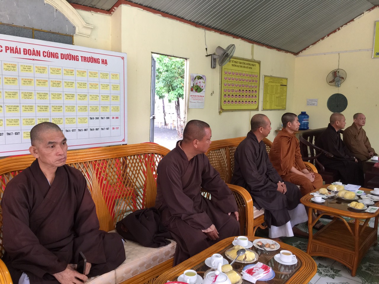 Tiếp đoàn có TT. Thích Pháp Quang - Phó Thiền chủ; ĐĐ. Thích Đạt Ma Chí Hải - Phó Thiền chủ, Phó BTS GHPGVN huyện Long Thành, trưởng Ban tổ chức; ĐĐ. Thích Pháp Điền - Phó BTS GHPGVN huyện Long Thành; TT. Thích Minh Hạnh - Hoá chủ; ĐĐ. Thích Minh Từ - thư ký; cùng chư tôn Đức Ban tổ chức, Ban chức sự và các hành giả Tăng an cư.