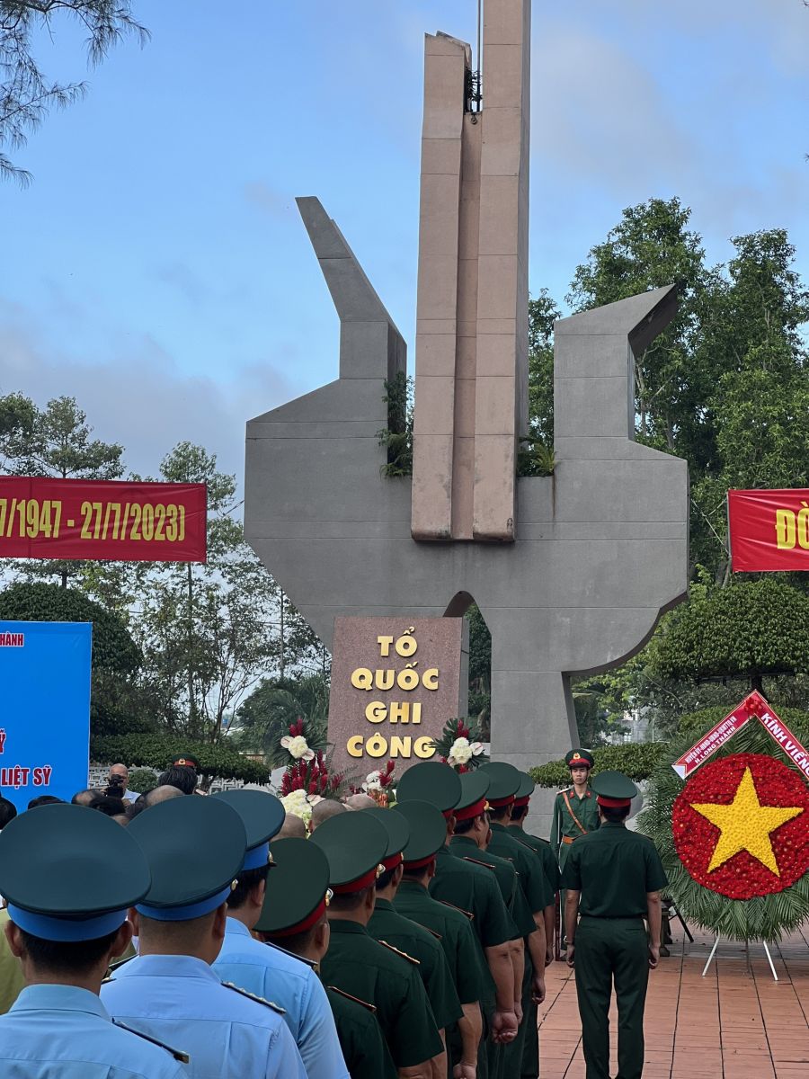 Buổi lễ được diễn ra một cách trang nghiêm và trọng thể, trong ý nghĩa: “Người đang sống nhớ thương người đã khuất, Khắc đá làm bia dựng giữa đất trời”, “Muôn kiếp uy nghi người liệt sĩ, Khói vẽ nên hình bóng vĩ nhân”/. Với trọn lòng biết ơn những người tham dự đại lễ đã vô cùng xúc động khi nhớ về sự hy sinh cao cả của các anh cho dân tộc, cho Tổ quốc và đồng bào. Các anh các đã cống hiến hết tuổi thanh xuân của mình, ra đi góp máu xương để tạc dáng non sông, vẽ nên hình hài đất nước, các anh, các chị những người con ưu tú của đất mẹ đã mãi mãi yên nghĩ trong lòng đất mẹ để chúng ta hôm nay thụ hưởng những giá trị của độc lập tự do, của hòa bình và hạnh phúc. Đất nước được rạng rỡ như hôm nay là nhờ sự hy sinh của các Anh hùng, liệt sỹ của cả dân tộc trong cuộc chiến tranh bảo vệ Tổ Quốc vĩ đại, để tưởng nhớ công ơn ấy, tất cả chúng ta hôm nay thắp lên những nén hương của trái tim, biểu tượng của lòng tri ân là ánh sáng soi đường cho chúng ta tiếp tục xây dựng quê, đất nước giàu đẹp.