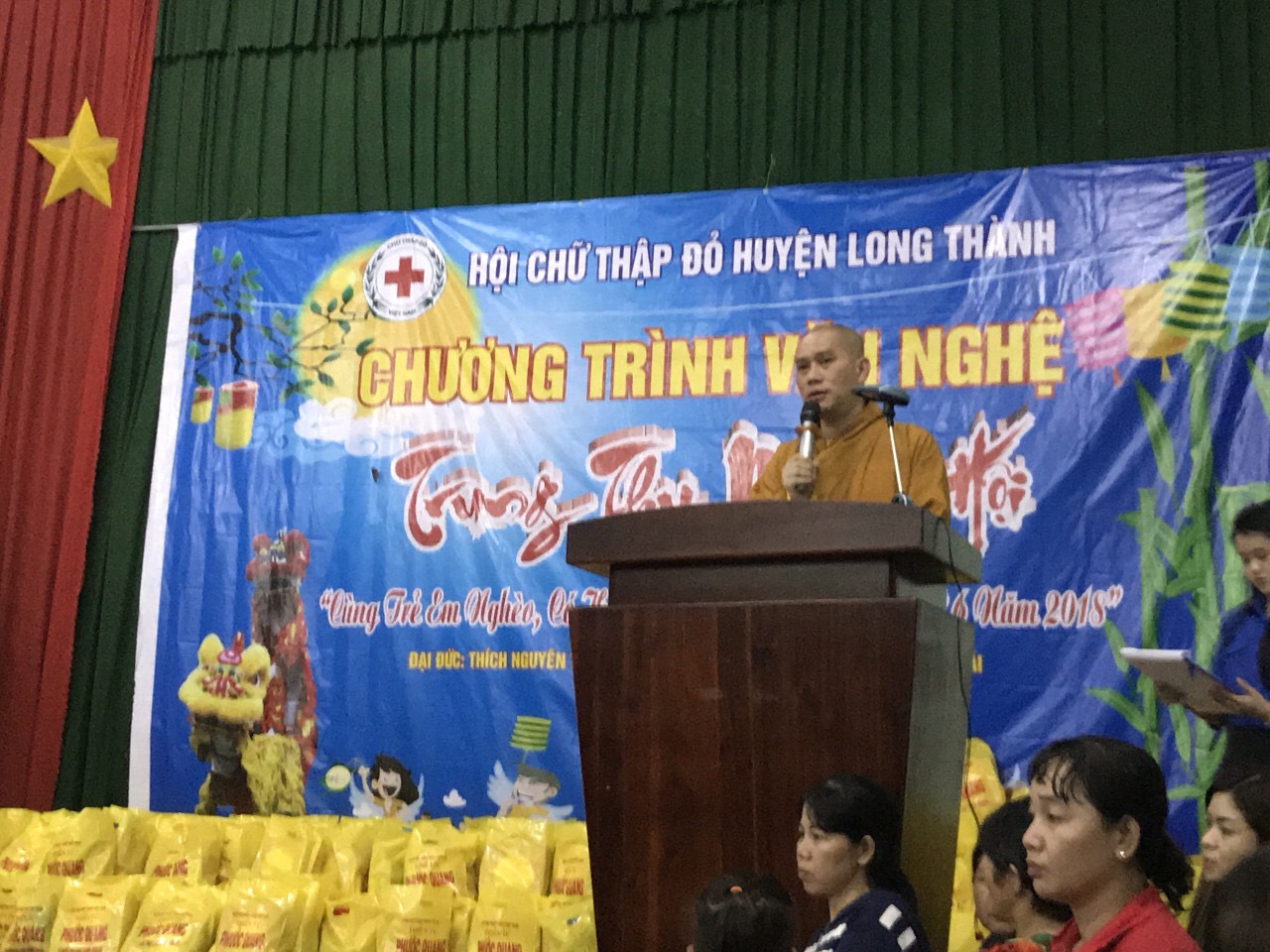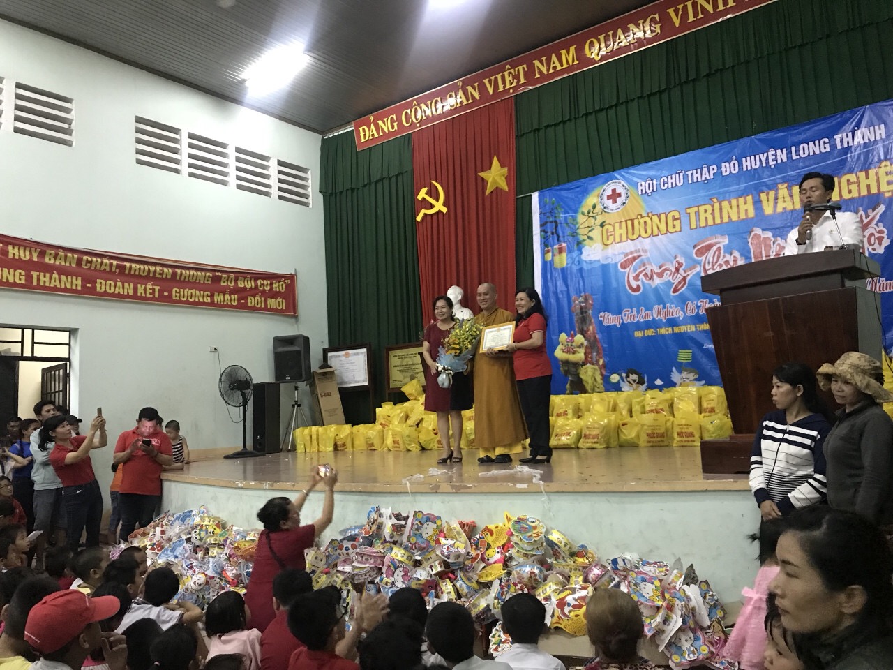 Đại đức Thích Nguyên Thông phối hợp với Hội Chữ thập đỏ huyện Long Thành tổ chức buổi văn nghệ và tặng 400 phần quà cho các em thiếu nhi nghèo, khó khăn của xã Long Đức huyện Long Thành, tỉnh Đồng Nai.