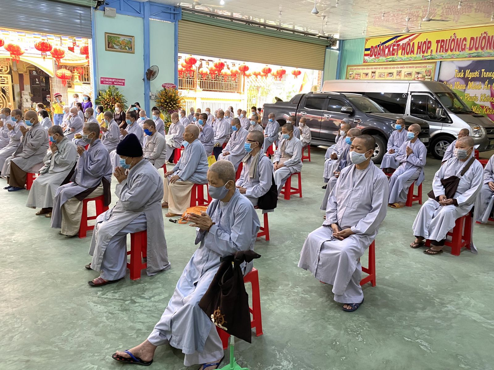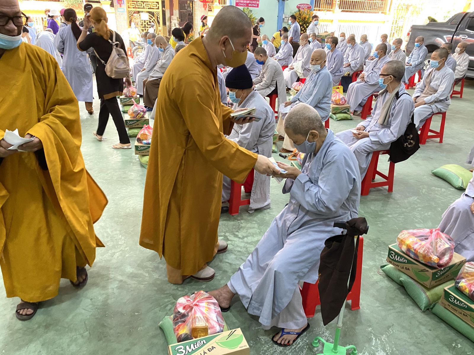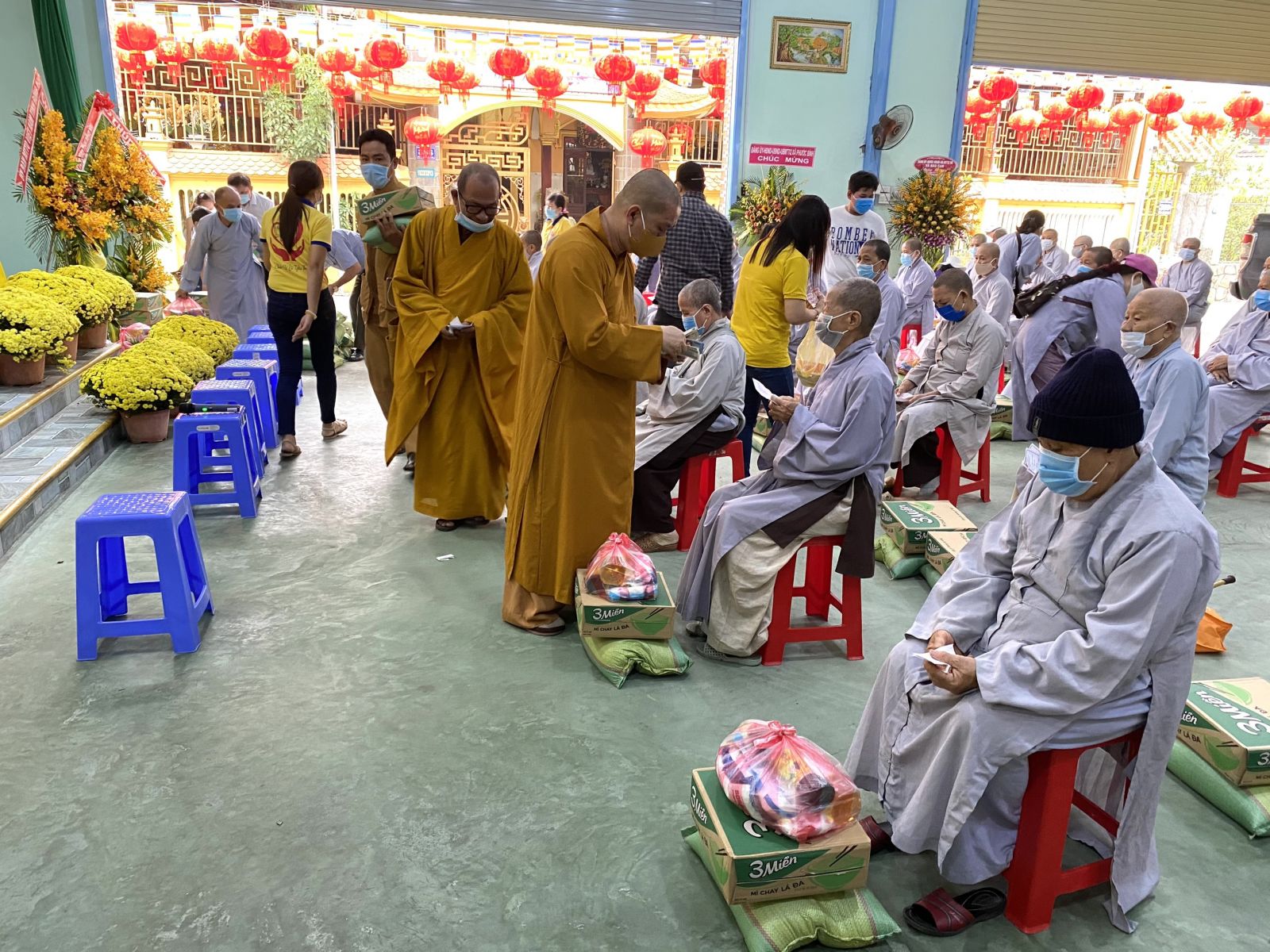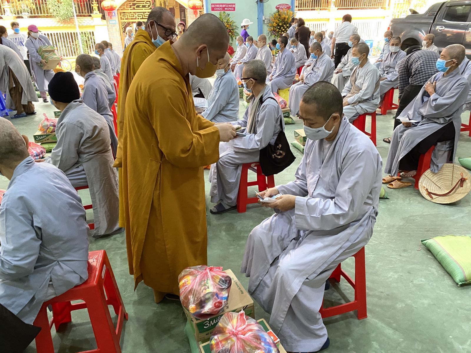 Do tình dịch dịch bệnh Covid-19 hiện tại đang rất nguy hiểm và phức tạp, buổi cúng dường diễn ra đảm bảo an toàn, không tập trung đông người. Các quý cô đại diện tới nhận quà Tết được sắp xếp ngồi cách nhau tối thiểu 1m.