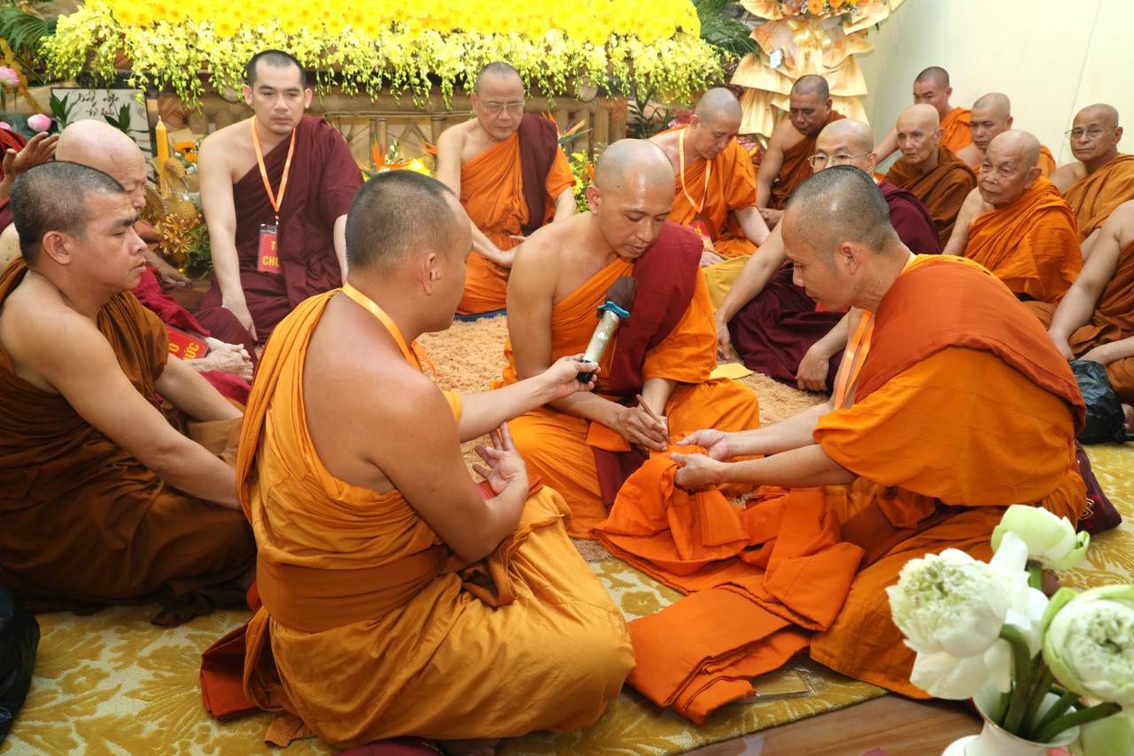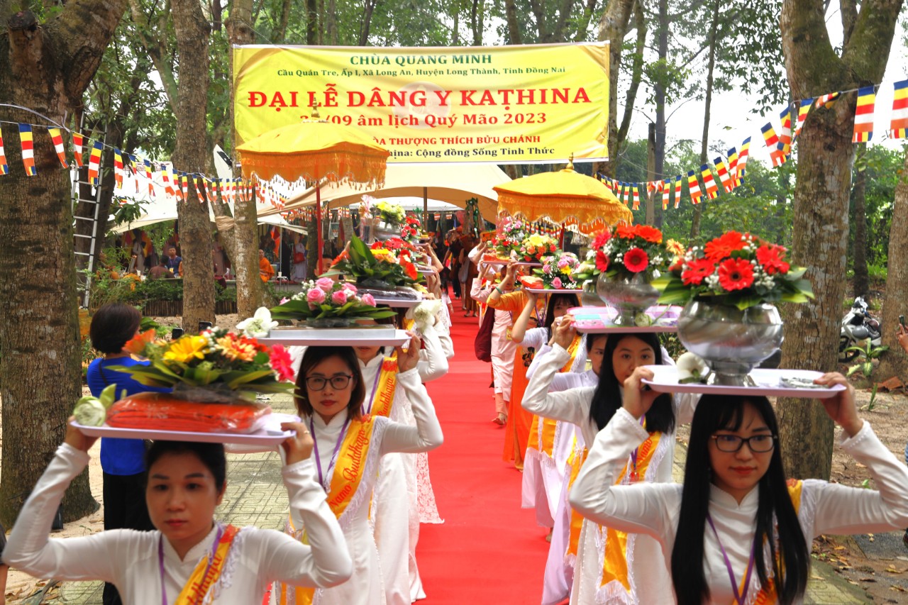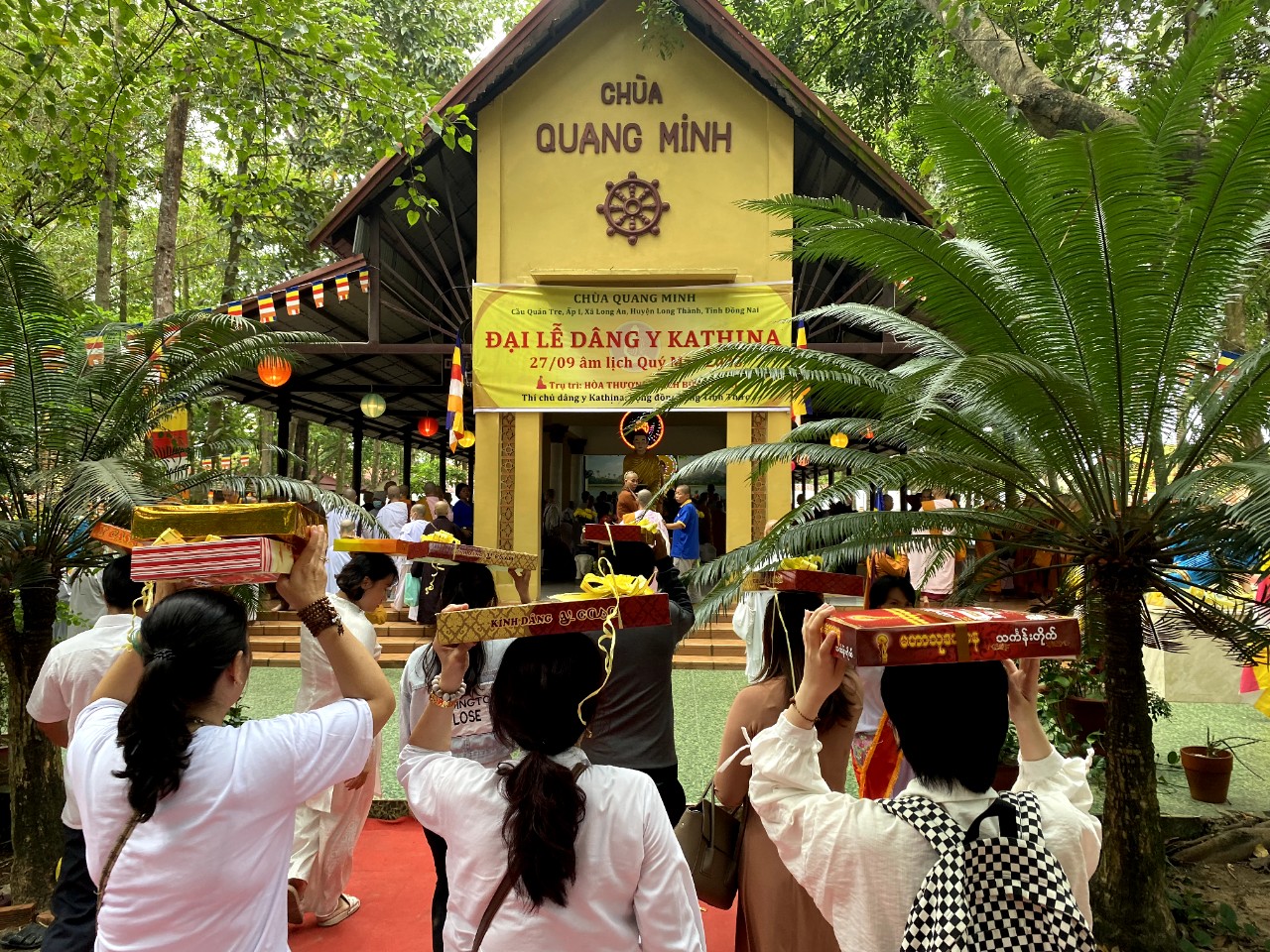 Kết thúc 3 vòng diễu Phật, các vị Tu nữ, Phật tử trang nghiêm thực hiện nghi thức tác bạch cúng dường, dâng y đến chư Tăng sau ba tháng an cư mùa mưa theo truyền thống Nam tông và chư Tôn đức Tăng cử hành tuyên ngôn Tăng sự và thọ y.