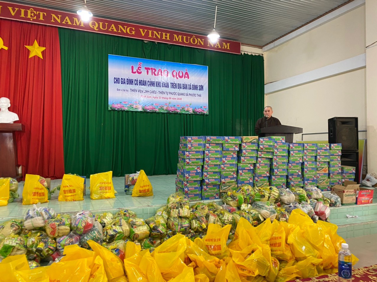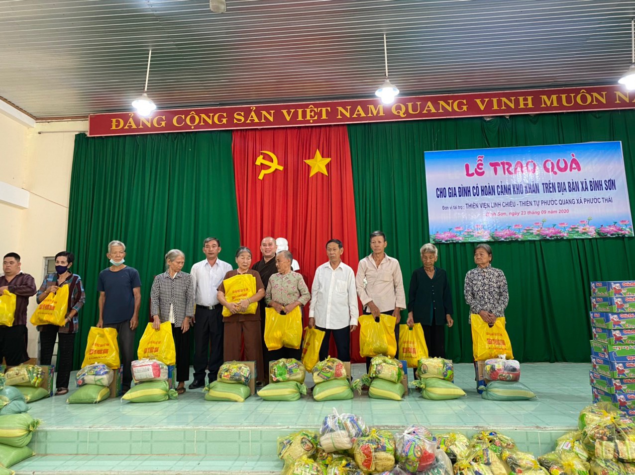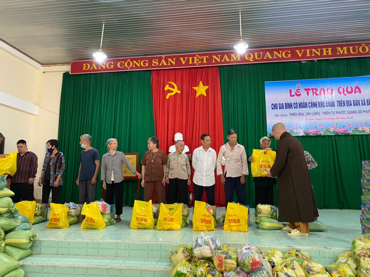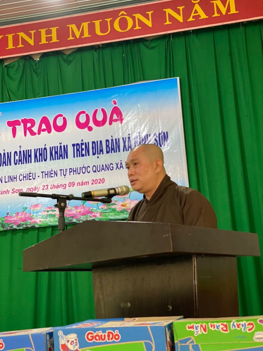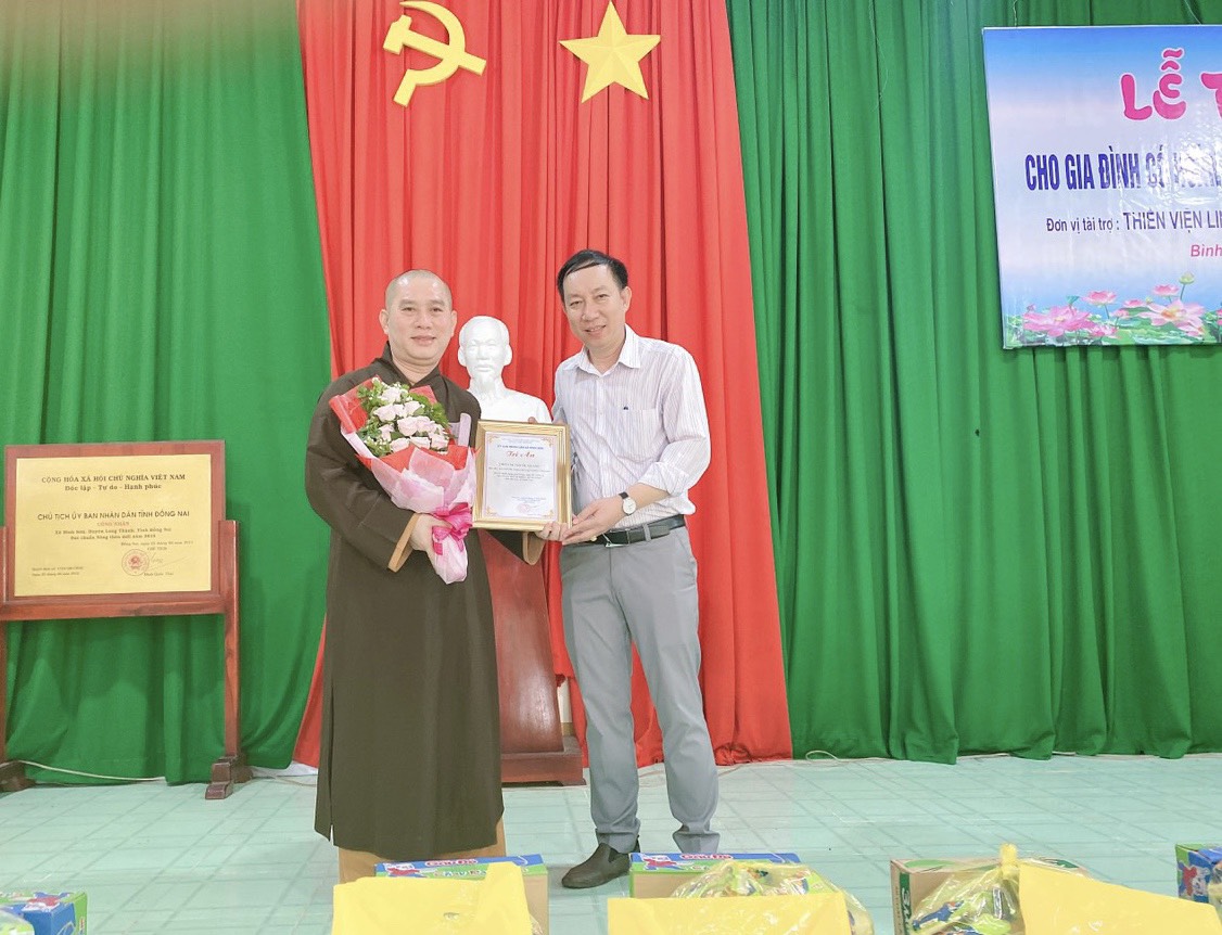 Buổi thăm và tặng quà có sự tham dự của Đại Đức Thích Nguyên Thông – Phó trưởng ban Từ thiện xã hội GHPGVN tỉnh Đồng Nai, Trưởng ban Từ thiện xã hội GHPGVN huyện Long Thành, Trụ trì Thiền tự Phước Quang (xã Phước Thái, huyện Long Thành).