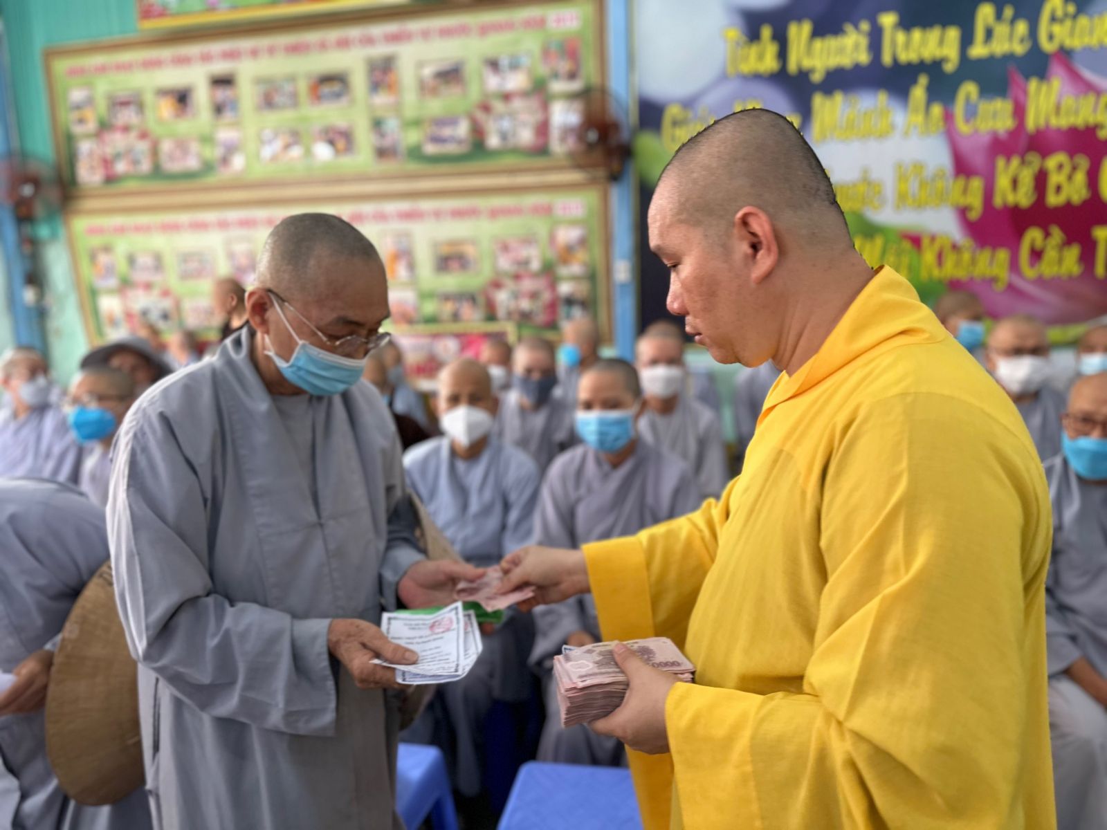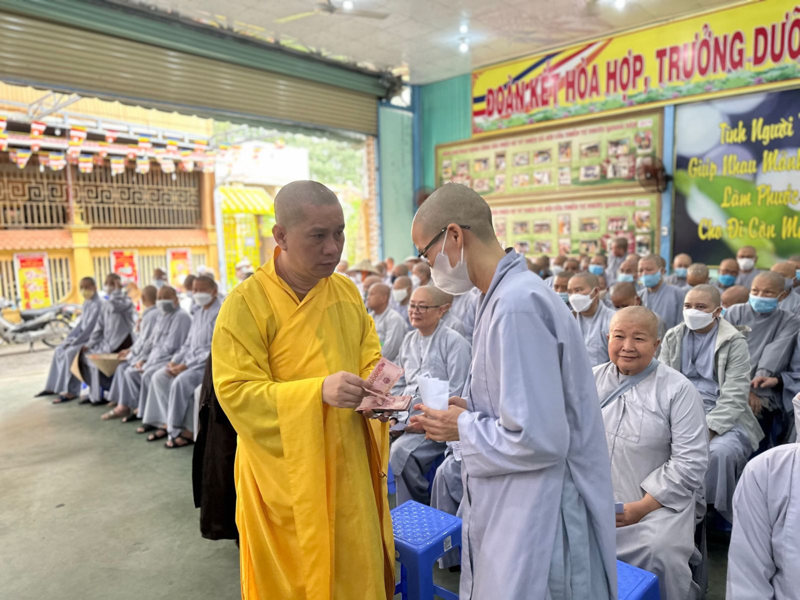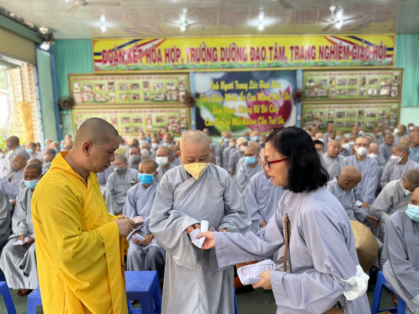 Được biết, ĐĐ. Thích Nguyên Thông – Phó trưởng Phân ban quản lý các cơ sở Phật giáo ban Từ thiện Xã hội Trung ương, Phó trưởng Ban Trị sự kiêm Chánh thư ký Ban Trị sự GHPGVN huyện Long Thành, trụ trì Thiền tự Phước Quang – xã Phước Thái, Long Thành trước đây đã kêu gọi quý mạnh thường quân ủng hộ rất nhiều phần quà đến bà con khó khăn trong mùa Phật đản. Nay Đại đức đã vận động thêm quý Phật tử tại Tp. Hồ Chí Minh cúng dường cho Tăng Ni ngoại viện Thường Chiếu và tại Núi Dinh với 750 Phần quà lễ phẩm cúng dường. với tổng kinh phí 300 triệu đồng.