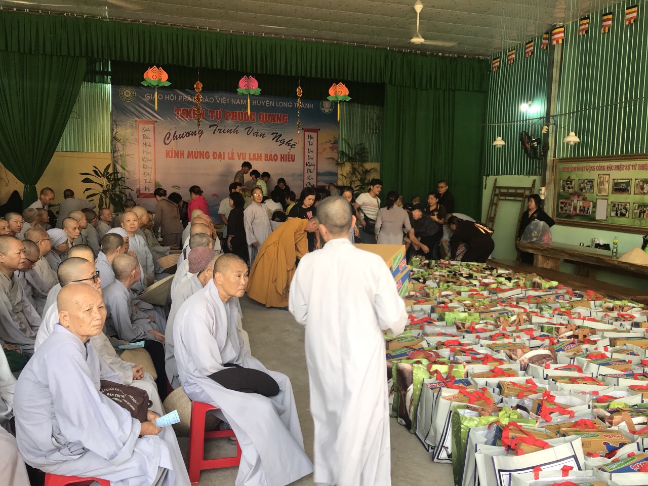 Vận động và hướng dẫn cho đoàn Phật tử Thành phố Hồ Chí Minh về tại Thiền tự Phước Quang xã Phước Thái tổ chức cúng dường 300 phần quà mùa Vu Lan báo hiếu cho quý sư Cô khu vực am thất khu ngoại viện Thường Chiếu ấp 1C, xã Phước Thái, huyện Long Thành, Đồng Nai.