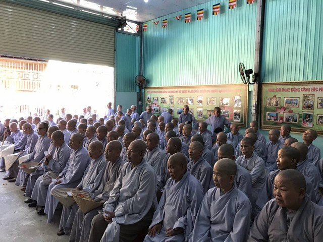 Vận động và hướng dẫn cho đoàn Phật tử Thành phố Hồ Chí Minh, và Phật tử huyện Trà Ôn, tỉnh Vĩnh Long về tại Thiền tự Phước Quang tổ chức cúng dường cho 600 Chư tôn đức Ni khu vực ngoại viện Thiền Viện Thường Chiếu ấp 1C, xã Phước Thái, huyện Long Thành, tỉnh Đồng Nai.