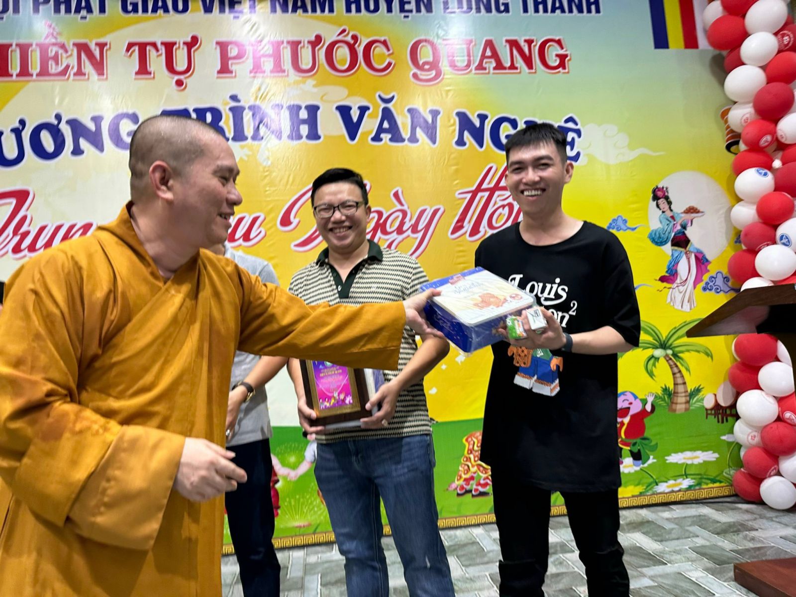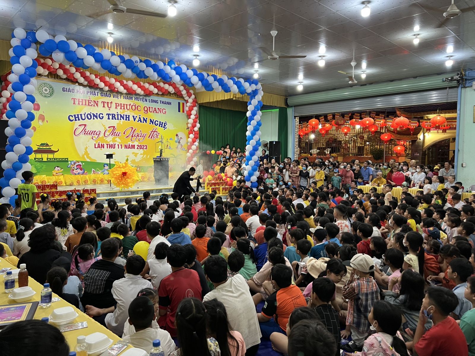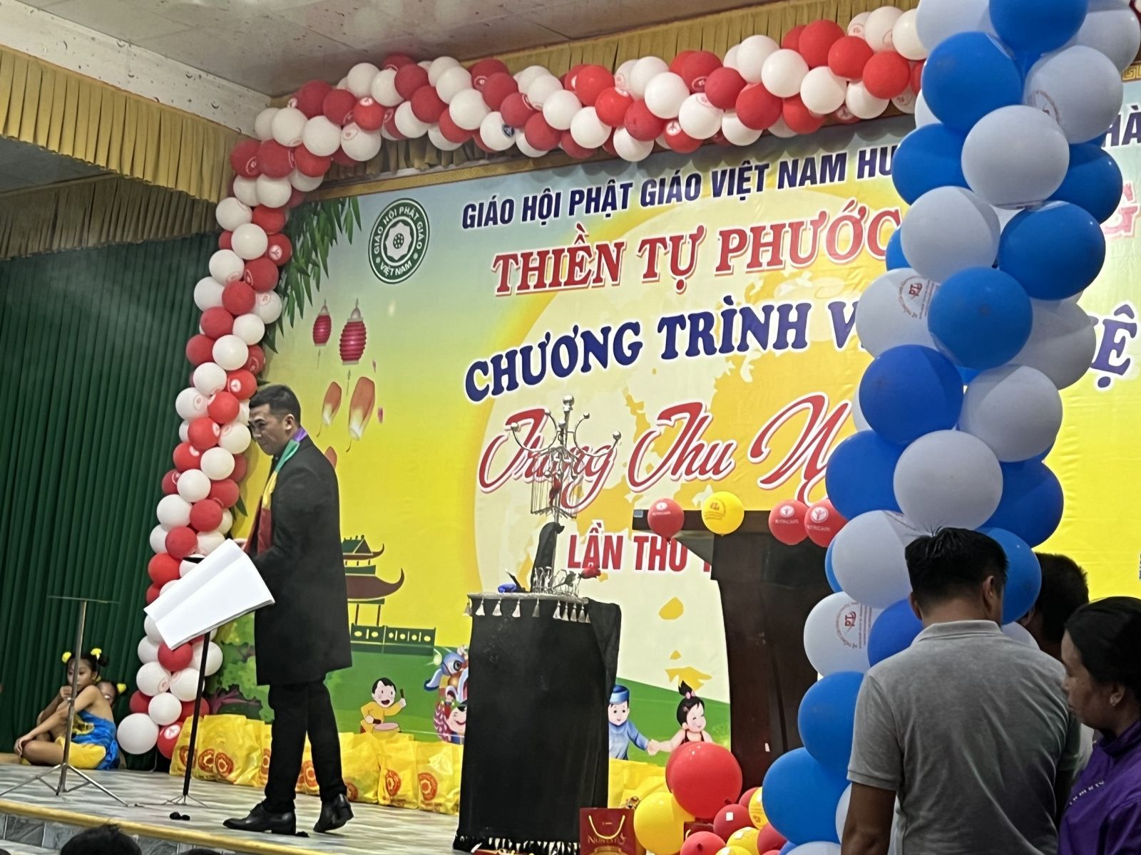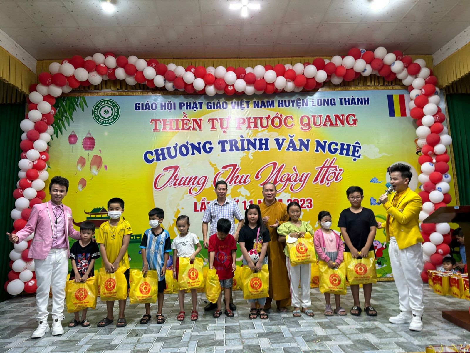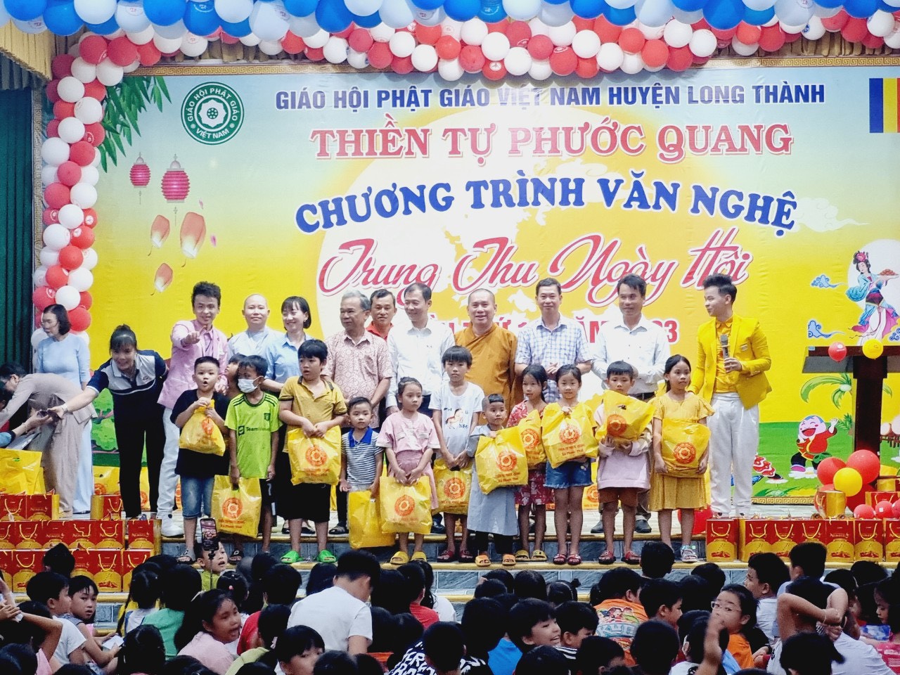 Qua lời phát biểu của ĐĐ. Thích Nguyên Thông – Trưởng ban Tổ chức, dịp trung thu năm nay mang lại cho các em thiếu nhi một sân chơi bổ ích và ý nghĩa, kèm theo một số tiết mục góp vui tạo nên tiếng cười và sự hào hứng cho các em như: Ca nhạc, ảo thuật, múa lân, đố vui trúng thưởng, giao lưu cùng các em học sinh của 2 trường tiểu học xã Tân Hiệp và xã Phước Thái. Với tâm nguyện tổ chức vui chơi và phát quà cho các em hỗ trợ tinh thần cho các em chuẩn bị bước vào năm học mới, chúc cho các em gạt hái được nhiều kết quả tốt đẹp trong tương lai.