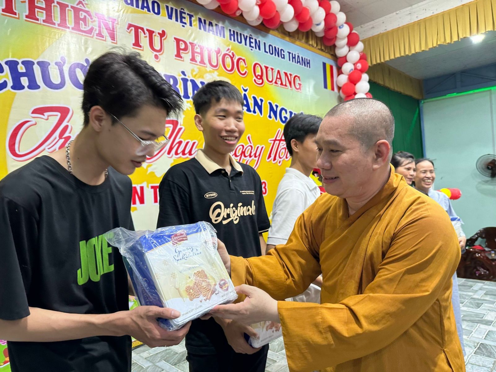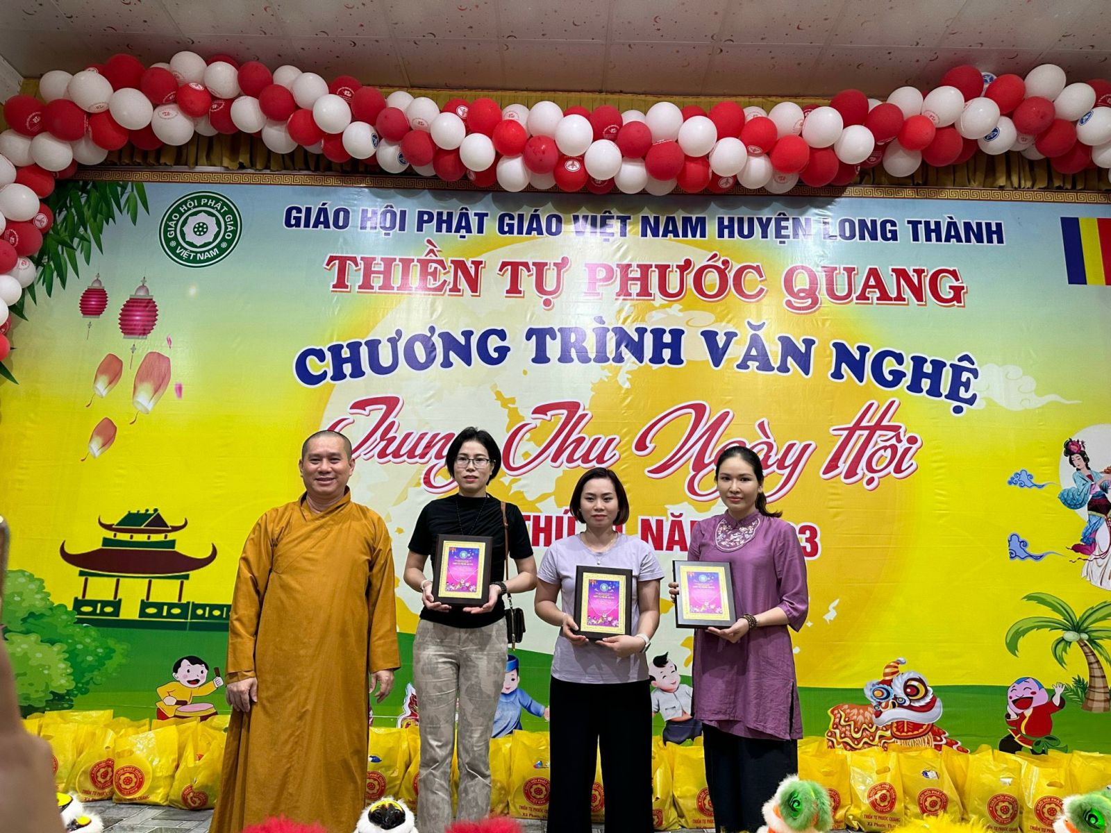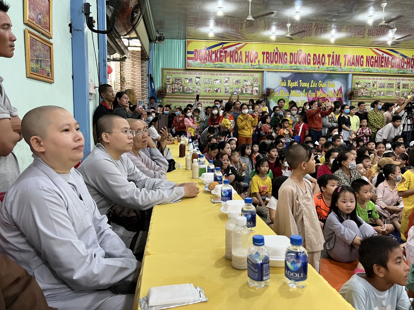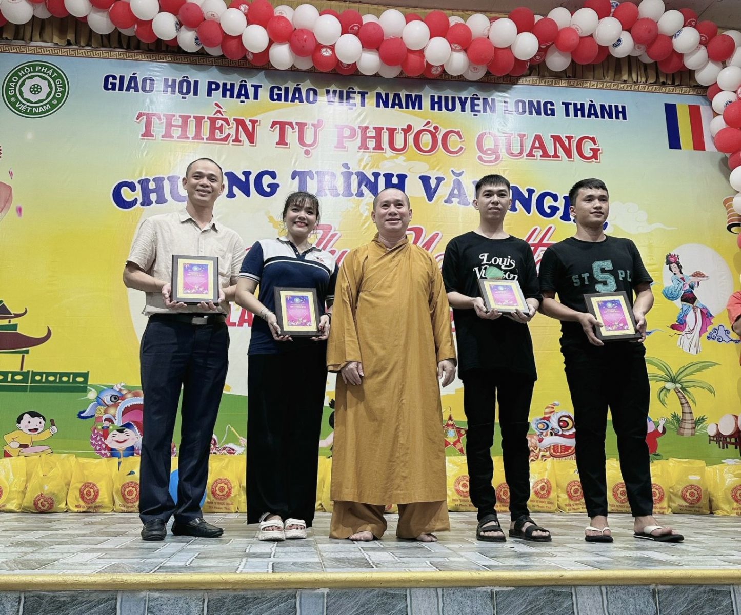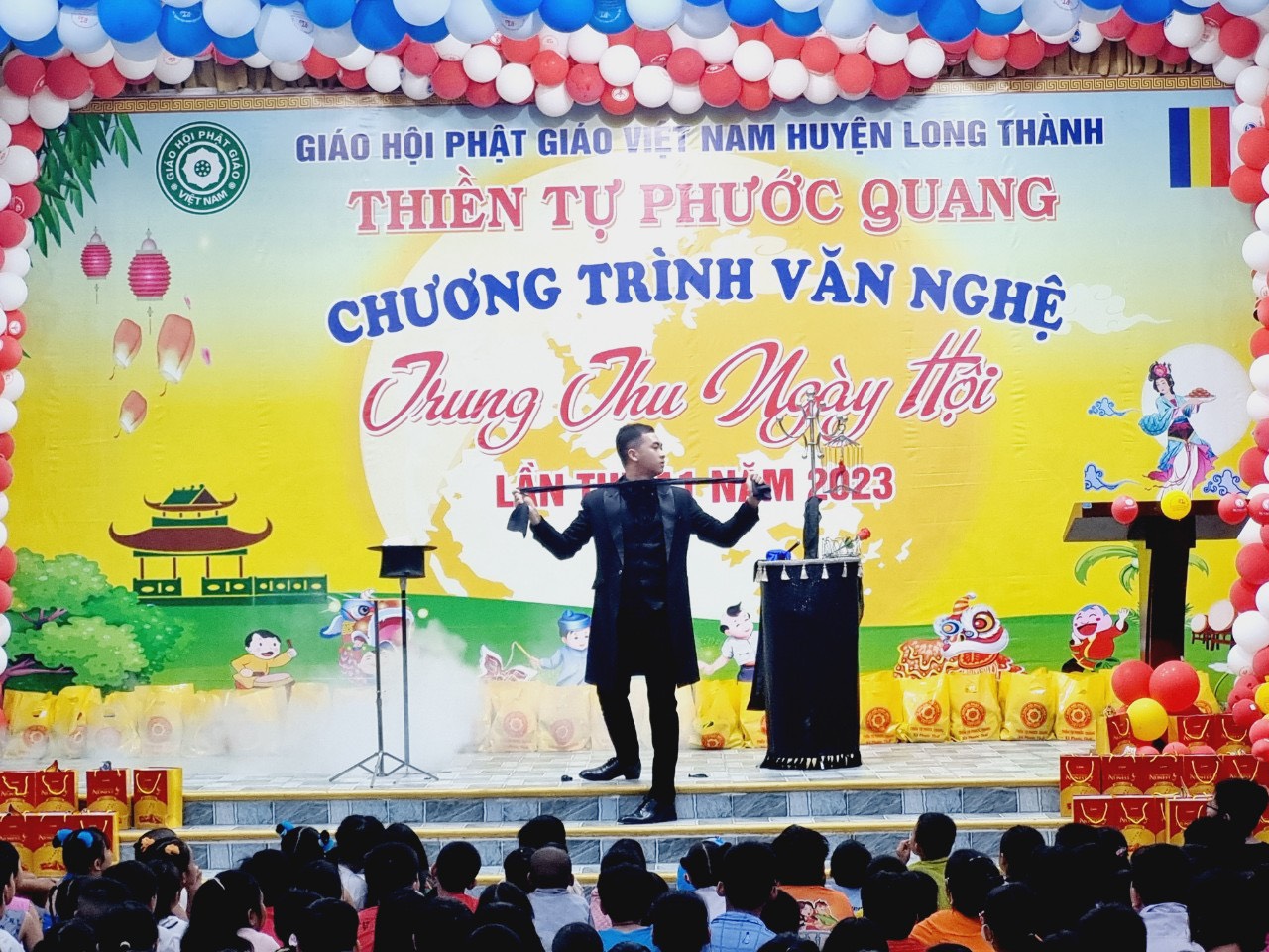 Qua lời phát biểu của ĐĐ. Thích Nguyên Thông – Trưởng ban Tổ chức, dịp trung thu năm nay mang lại cho các em thiếu nhi một sân chơi bổ ích và ý nghĩa, kèm theo một số tiết mục góp vui tạo nên tiếng cười và sự hào hứng cho các em như: Ca nhạc, ảo thuật, múa lân, đố vui trúng thưởng, giao lưu cùng các em học sinh của 2 trường tiểu học xã Tân Hiệp và xã Phước Thái. Với tâm nguyện tổ chức vui chơi và phát quà cho các em hỗ trợ tinh thần cho các em chuẩn bị bước vào năm học mới, chúc cho các em gạt hái được nhiều kết quả tốt đẹp trong tương lai.