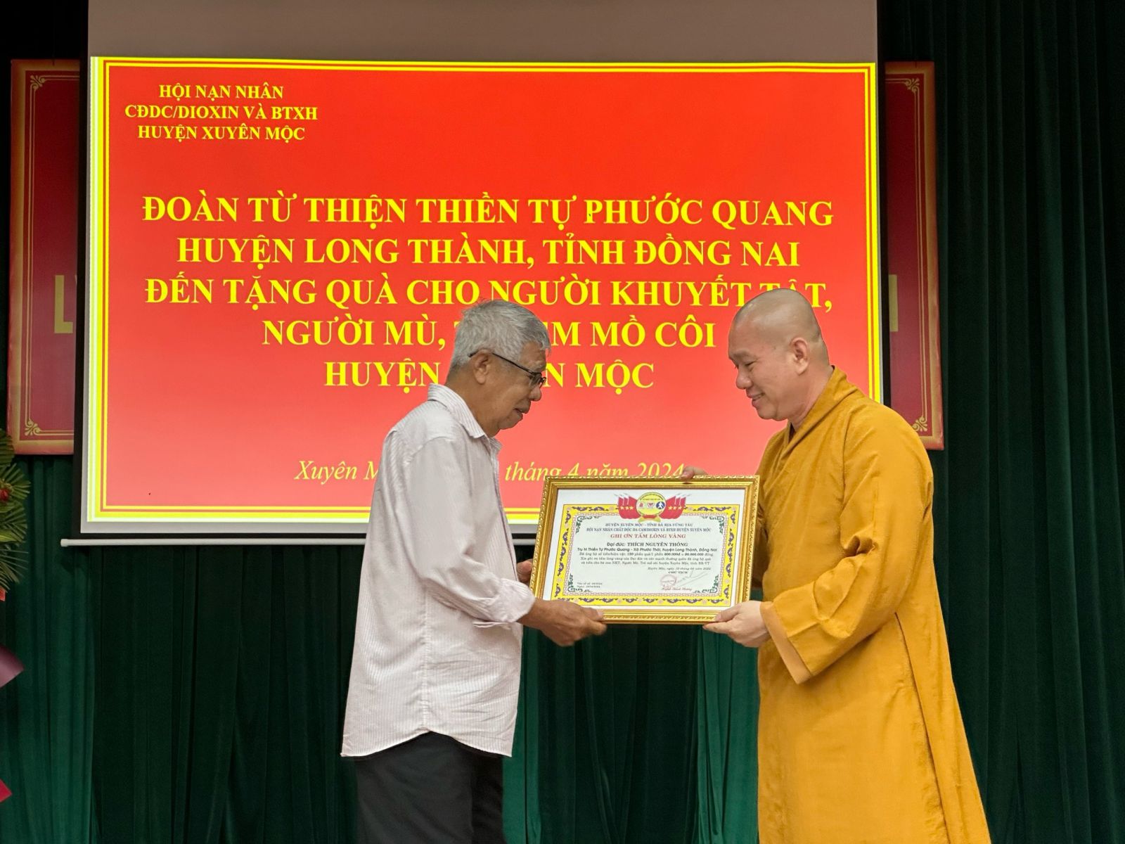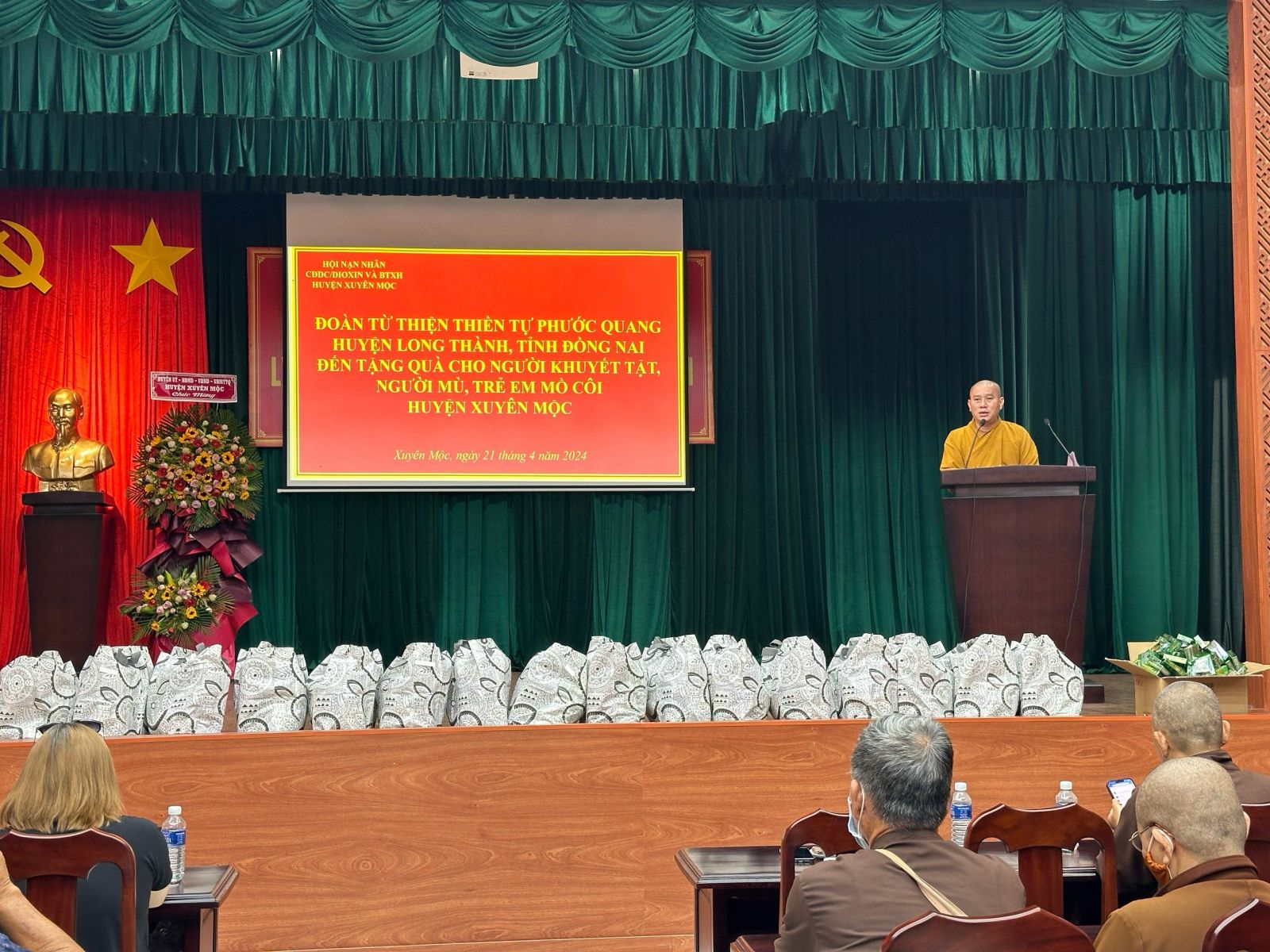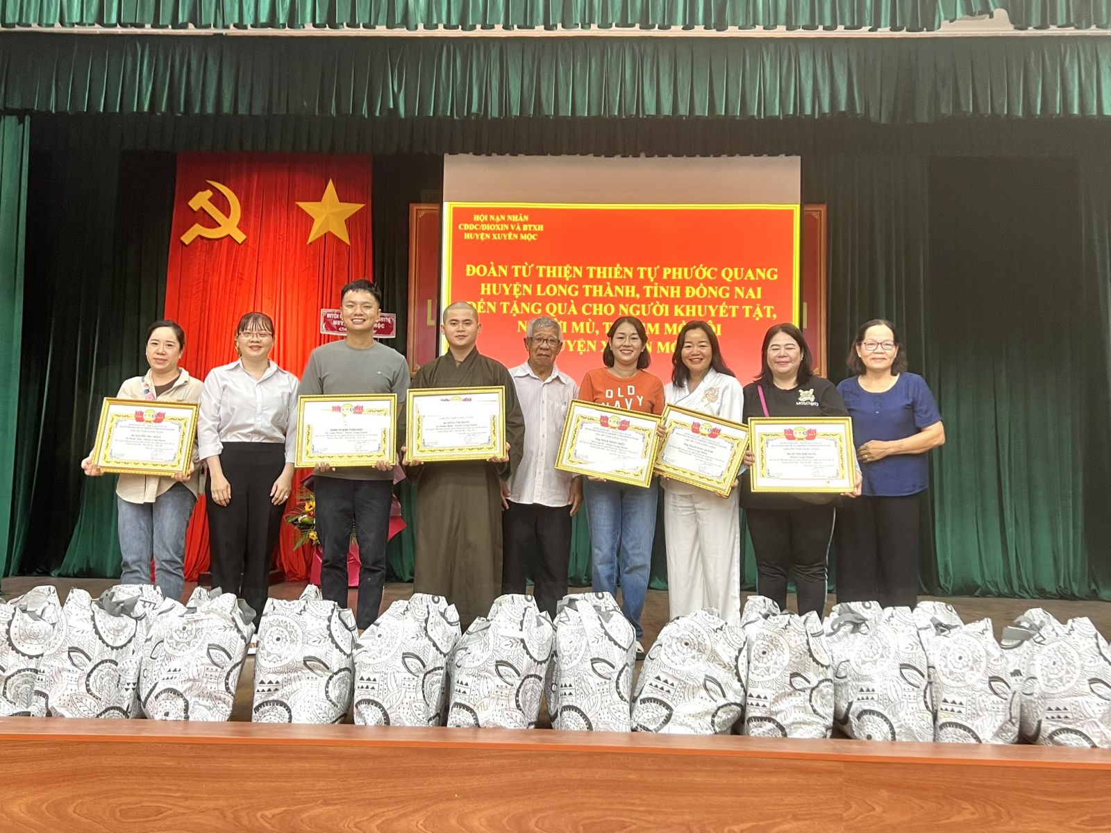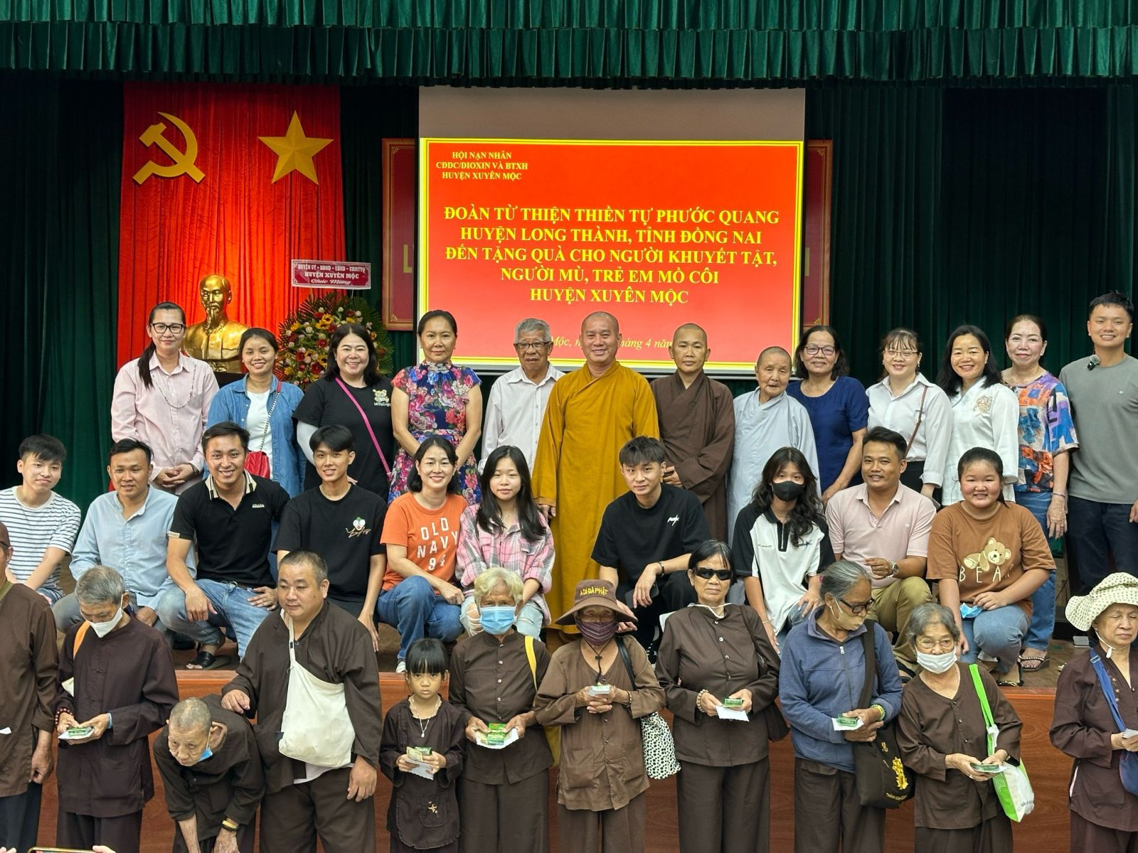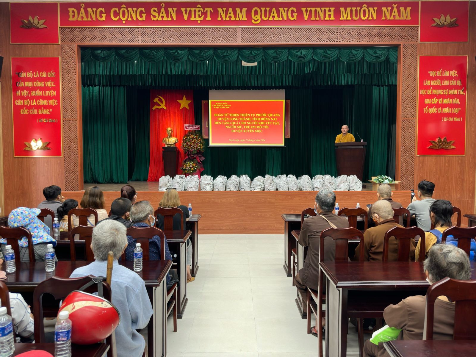 Đoàn thiện nguyện do ĐĐ. Thích Nguyên Thông – Phó Trưởng phân ban quản lý các cơ sở bảo trợ Phật giáo ban Từ thiện xã hội TƯ GHPGVN, Phó Trưởng ban Từ thiện xã hội GHPGVN tỉnh Đồng Nai, Phó ban kiêm Chánh Thư ký Ban Trị sự GHPGVN huyện Long Thành, Trụ trì Thiền tự Phước Quang – xã Phước Thái; ĐĐ. Thích Đạt ma Toàn Nguyện – Phó Chánh văn phòng Ban Trị sự GHPGVN huyện Long Thành; ông Nguyễn Tấn Lâm – Phó trưởng phòng kinh tế huyện Long Thành; bà Đồng Thị Hạnh – Phó Chủ tịch xã Phước Bình; ông Phạm Minh Triết – Phó Công an xã Phước Bình; Cty cổ phần dinh dưỡng y học quốc tế Framil – Tp. Hồ Chí Minh; bà Lê Thị Kim Ngân – huyện Long Thành; bà Trịnh Thị Ngọc Hiền – xã Long Đức; cùng các Mạnh thường quân đi cùng đoàn.