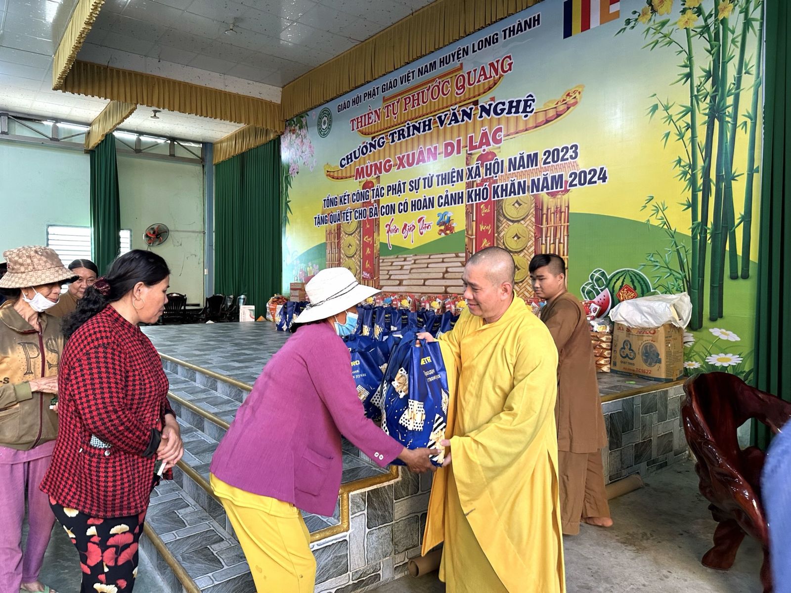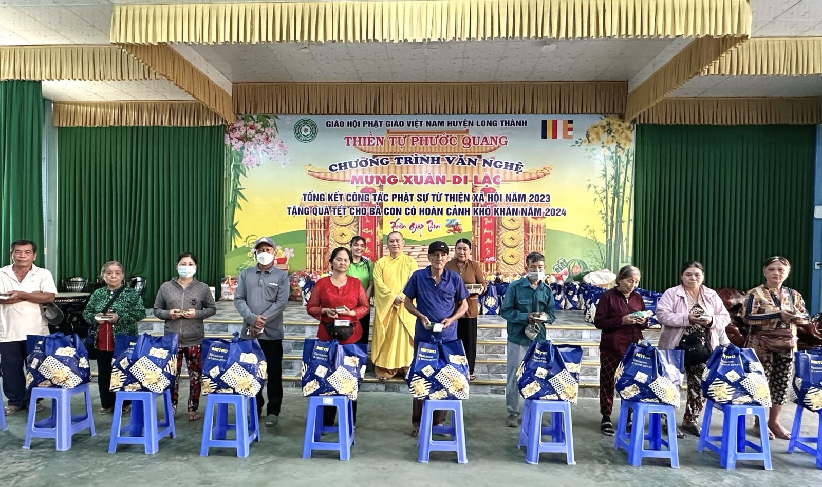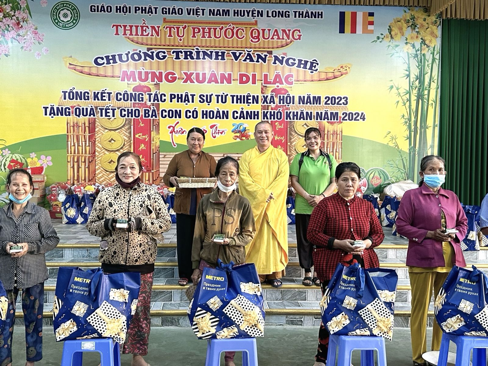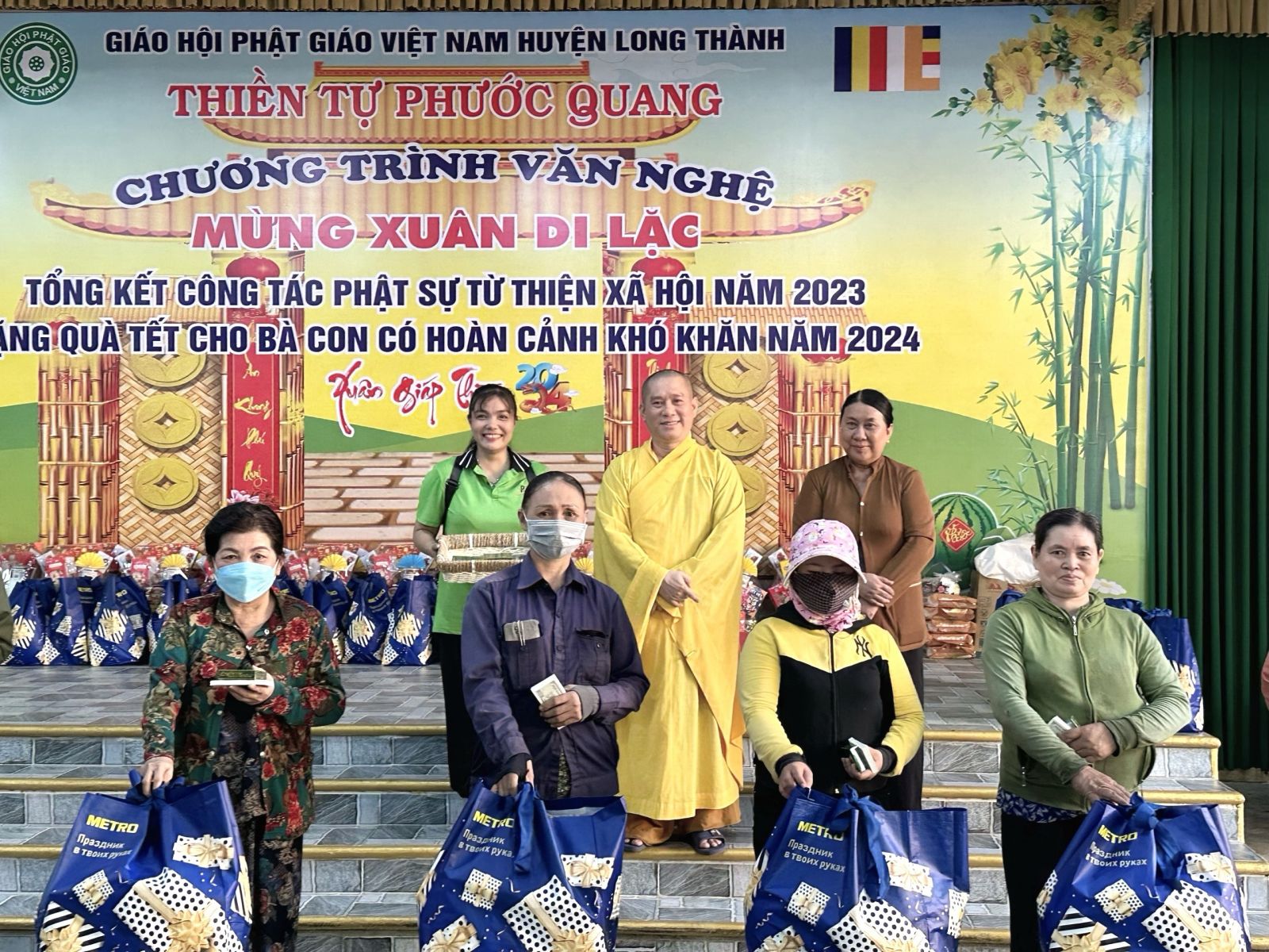 Thực hiện chương trình Đón xuân An lạc, ĐĐ. Thích Nguyên Thông – Phó trưởng Phân ban quản lý các cơ sở bảo trợ Phật giáo ban Từ thiện xã hội TƯ, Phó Trưởng ban Thường trực ban Từ thiện xã hội GHPGVN tỉnh Đồng Nai, Phó ban kiêm Chánh Thư ký Ban Trị sự GHPGVN huyện Long Thành, Trụ trì Thiền tự Phước Quang xã Phước Thái làm Trưởng đoàn; cùng quý Phật tử, mạnh thường quân đã đến tặng quà cho bà con khó khăn, người khuyết tật, người già neo đơn, người mua bán ve chai, tài xế xe ôm, và công nhân ở trọ có được một mùa xuân ấm no hạnh phúc. với 200 phần quà, tổng trị giá hơn 100 triệu đồng.