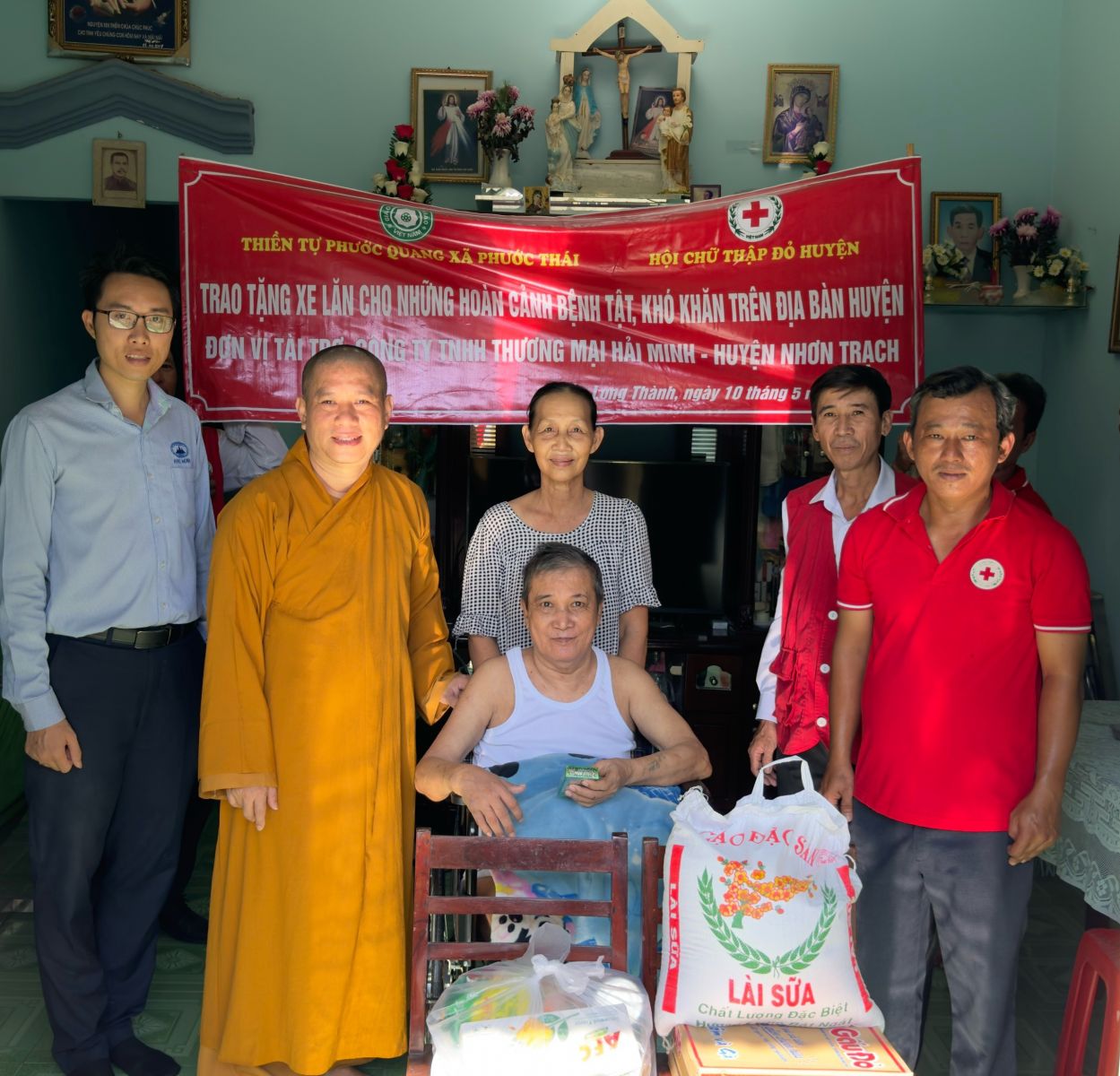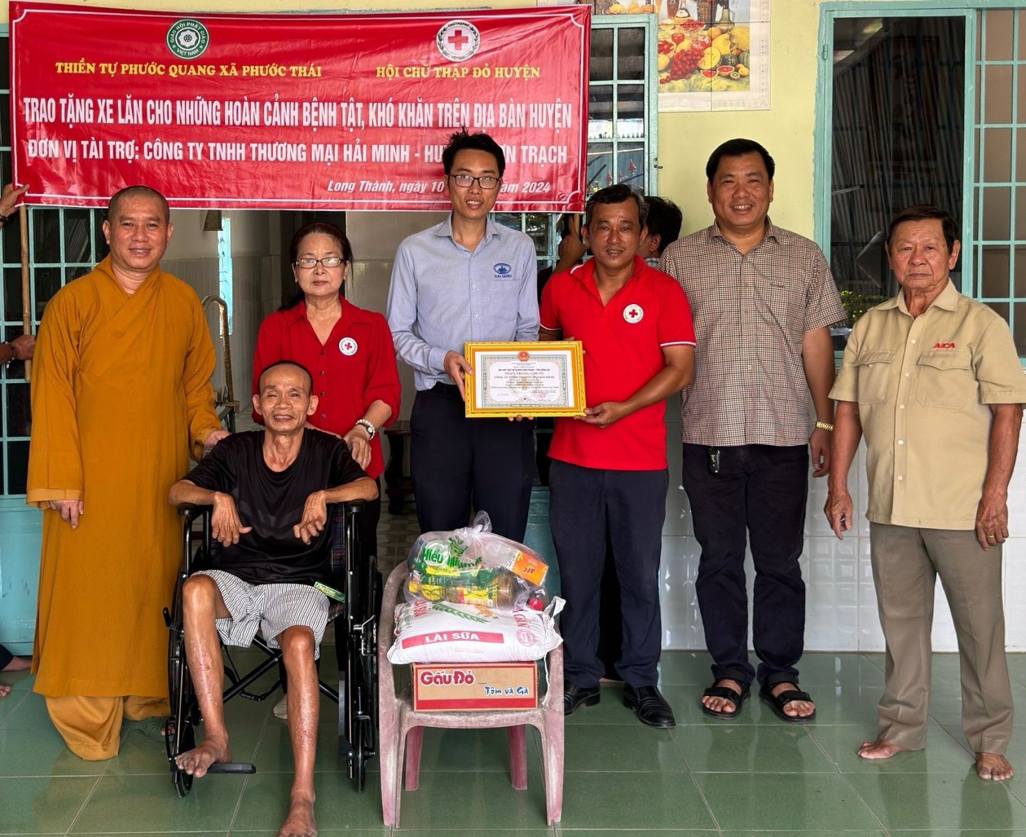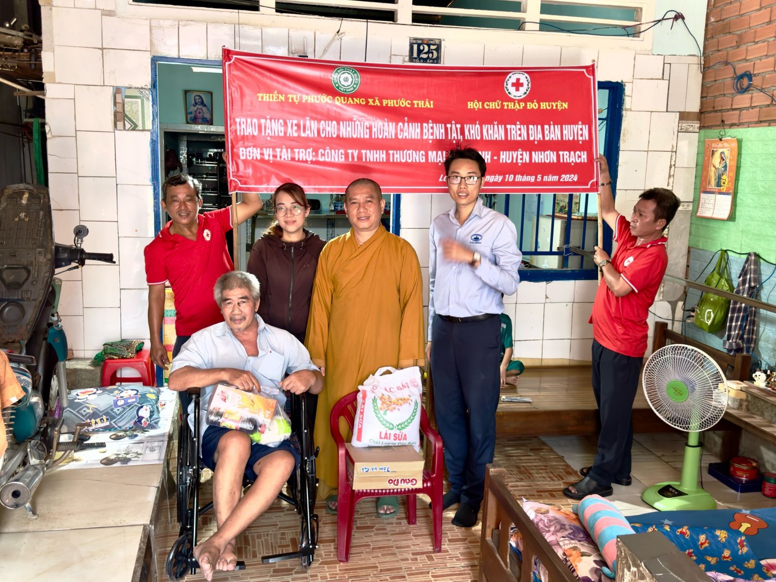 Thực hiện chương trình ý nghĩa hướng về ngày Đại lễ kỷ niệm Đức Phật đản sanh PL.2568 – DL.2024, vào ngày 13/5/2024 (nhằm ngày 06/4/Giáp Thìn) đoàn từ thiện Thiền tự Phước Quang do ĐĐ. Thích Nguyên Thông – Phó Trưởng ban quản lý các cơ sở bảo trợ Phật giáo ban Từ thiện xã hội TƯ, Phó Trưởng ban Thường trực Ban Từ thiện Xã hội GHPGVN tỉnh Đồng Nai, Phó ban kiêm Chánh Thư ký Ban Trị sự GHPGVN huyện Long Thành đã đến thăm và trao tặng 10 chiếc xe lăn và 10 phần quà cho bà con bệnh tai biến, khuyết tật có hoàn cảnh khó khăn tại 4 xã Phước Thái, xã Phước Bình, xã Long An, xã Lộc An trên địa bàn huyện Long Thành. Với tổng trị giá 25 triệu đồng.