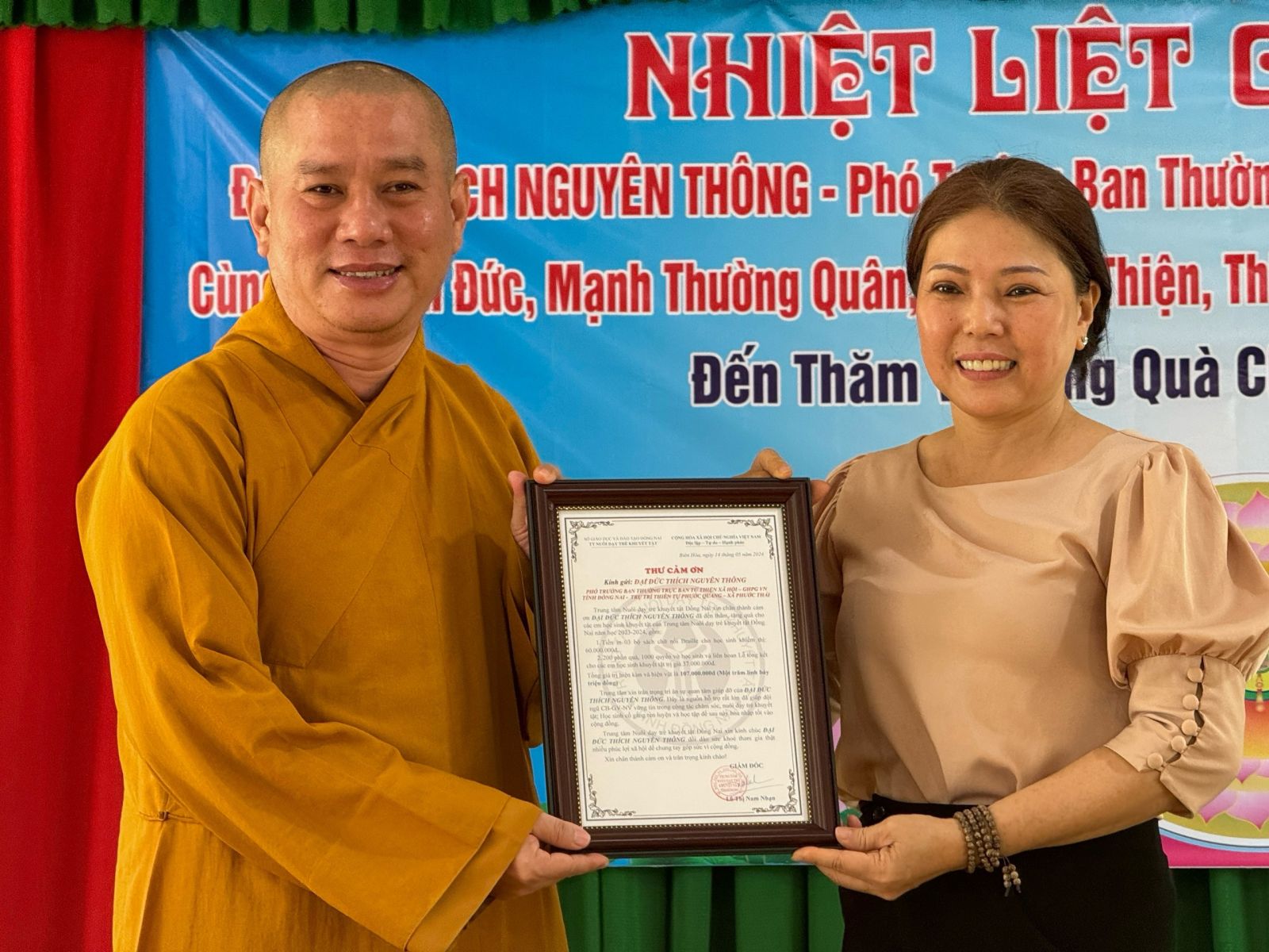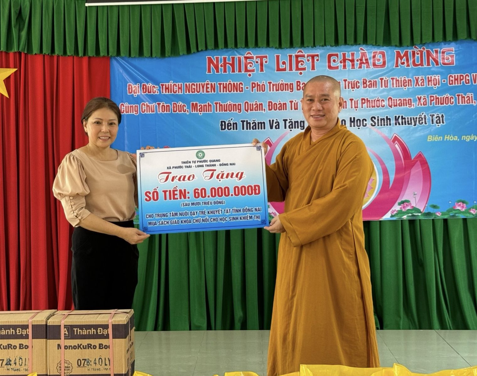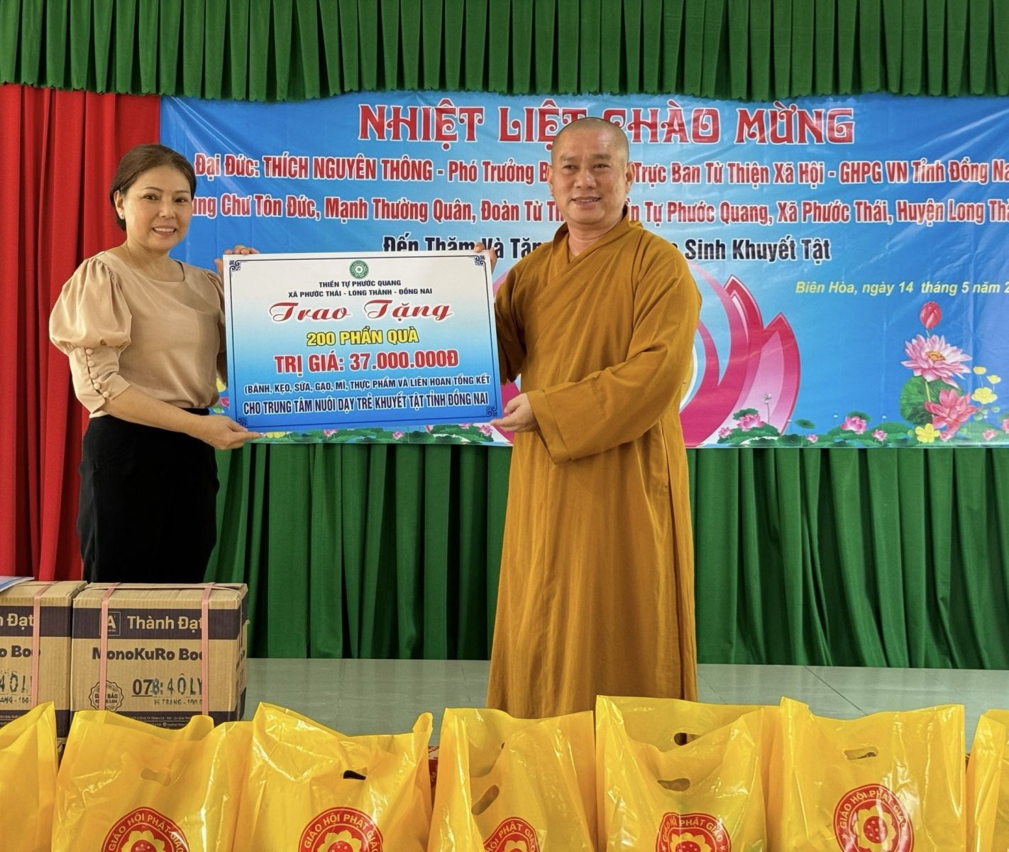 Thực hiện chương trình ý nghĩa hướng về ngày Đại lễ kỷ niệm Đức Phật đản sanh PL.2568 – DL.2024, vào ngày 13/5/2024 (nhằm ngày 06/4/Giáp Thìn) đoàn từ thiện Thiền tự Phước Quang do ĐĐ. Thích Nguyên Thông – Phó Trưởng ban quản lý các cơ sở bảo trợ Phật giáo ban Từ thiện xã hội TƯ, Phó Trưởng ban Thường trực Ban Từ thiện Xã hội GHPGVN tỉnh Đồng Nai, Phó ban kiêm Chánh Thư ký Ban Trị sự GHPGVN huyện Long Thành đã đến thăm và trao tặng 10 chiếc xe lăn và 10 phần quà cho bà con bệnh tai biến, khuyết tật có hoàn cảnh khó khăn tại 4 xã Phước Thái, xã Phước Bình, xã Long An, xã Lộc An trên địa bàn huyện Long Thành. Với tổng trị giá 25 triệu đồng.