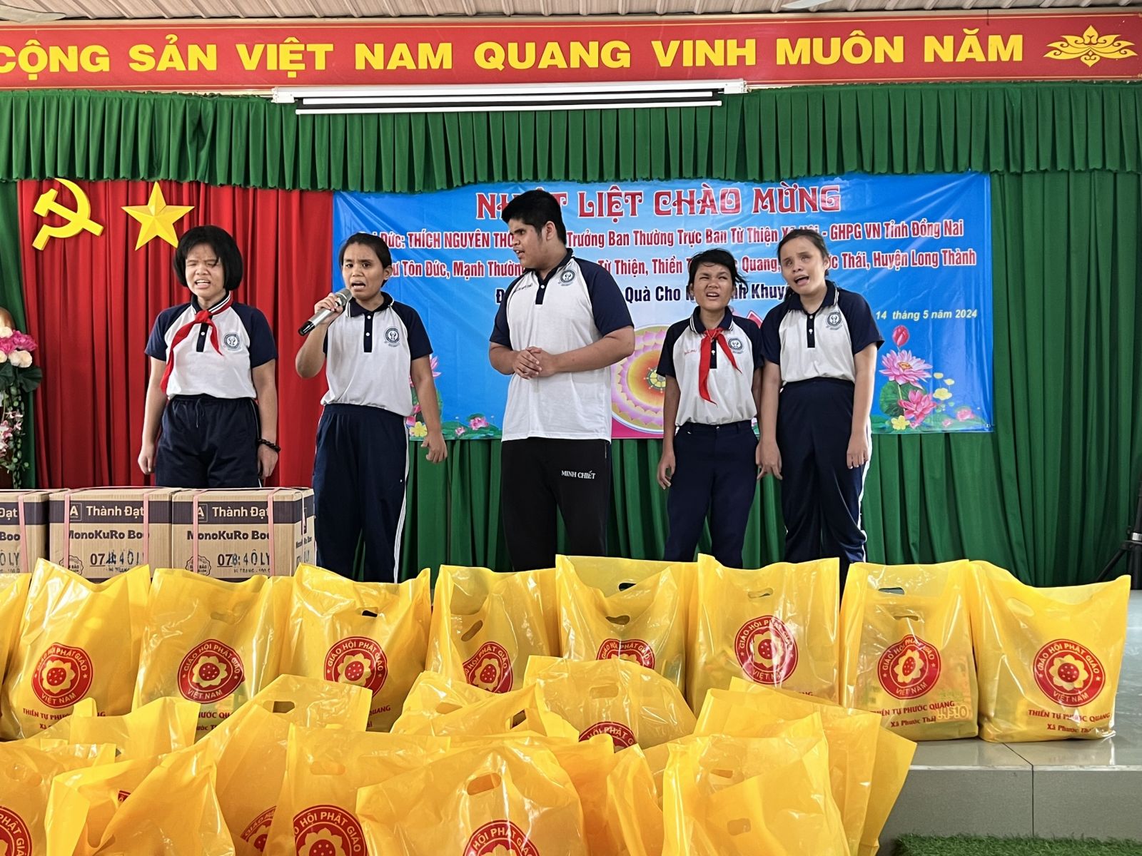 Tiếp đó, vào ngày 14/5/2024 (nhằm ngày 07/4/Giáp Thìn) đoàn tiếp tục đến thăm và trao tặng 200 phần quà tại Trung tâm nuôi dạy trẻ khuyết tật tỉnh Đồng Nai, tổng 200 phần quà trị giá 37 triệu đồng, 03 bộ sách giáo khoa chữ nổi cho trẻ em khiếm thị trị giá 60 triệu đồng và 1000 quyển tập trắng trị giá 10 triệu đồng, cùng một số nhu yếu phẩm cần thiết. Tổng giá trị đợt 2 là 115 triệu đồng.