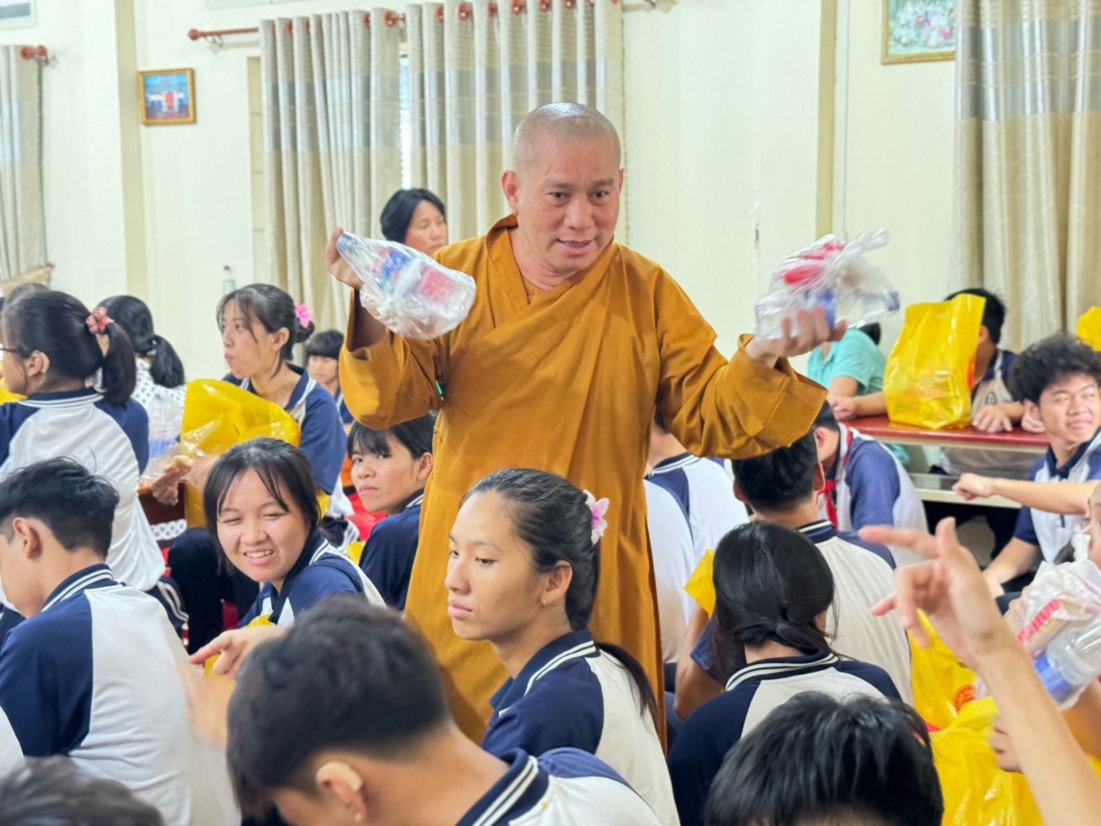 Với mục đích ai cũng được an vui và hạnh phúc, ĐĐ. Thích Nguyên Thông cùng với quý mạnh thường quân chia sẽ niềm khó khăn của bà con hướng về ngày Phật đản sanh.