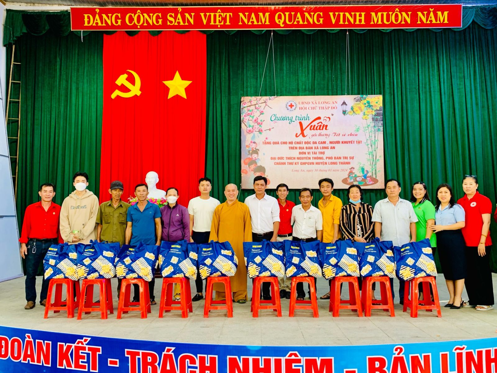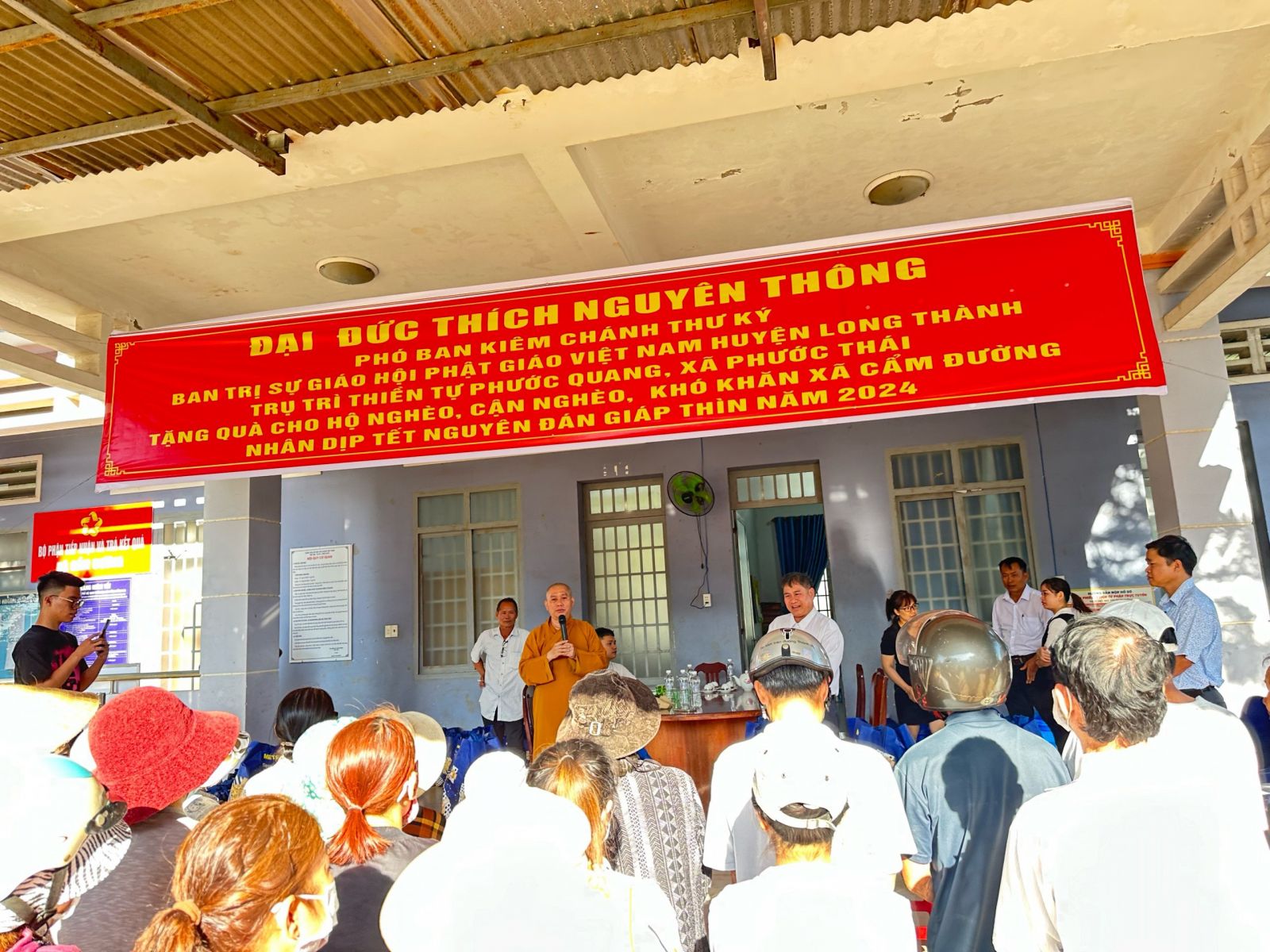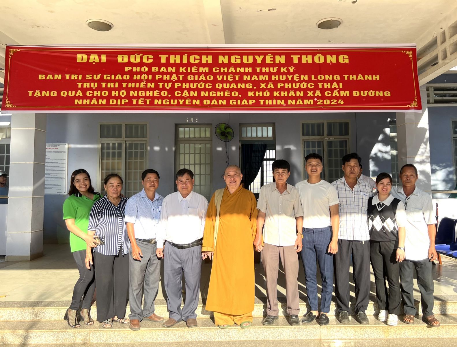 Đoàn Thiện nguyện do ĐĐ. Thích Nguyên Thông – Phó trưởng Phân ban quản lý các cơ sở bảo trợ Phật giáo ban Từ thiện xã hội TƯ, Phó Trưởng ban Thường trực ban Từ thiện xã hội GHPGVN tỉnh Đồng Nai, Phó ban kiêm Chánh Thư ký Ban Trị sự GHPGVN huyện Long Thành, Trụ trì Thiền tự Phước Quang xã Phước Thái làm Trưởng đoàn; cùng quý Phật tử, mạnh thường quân đi cùng đoàn.