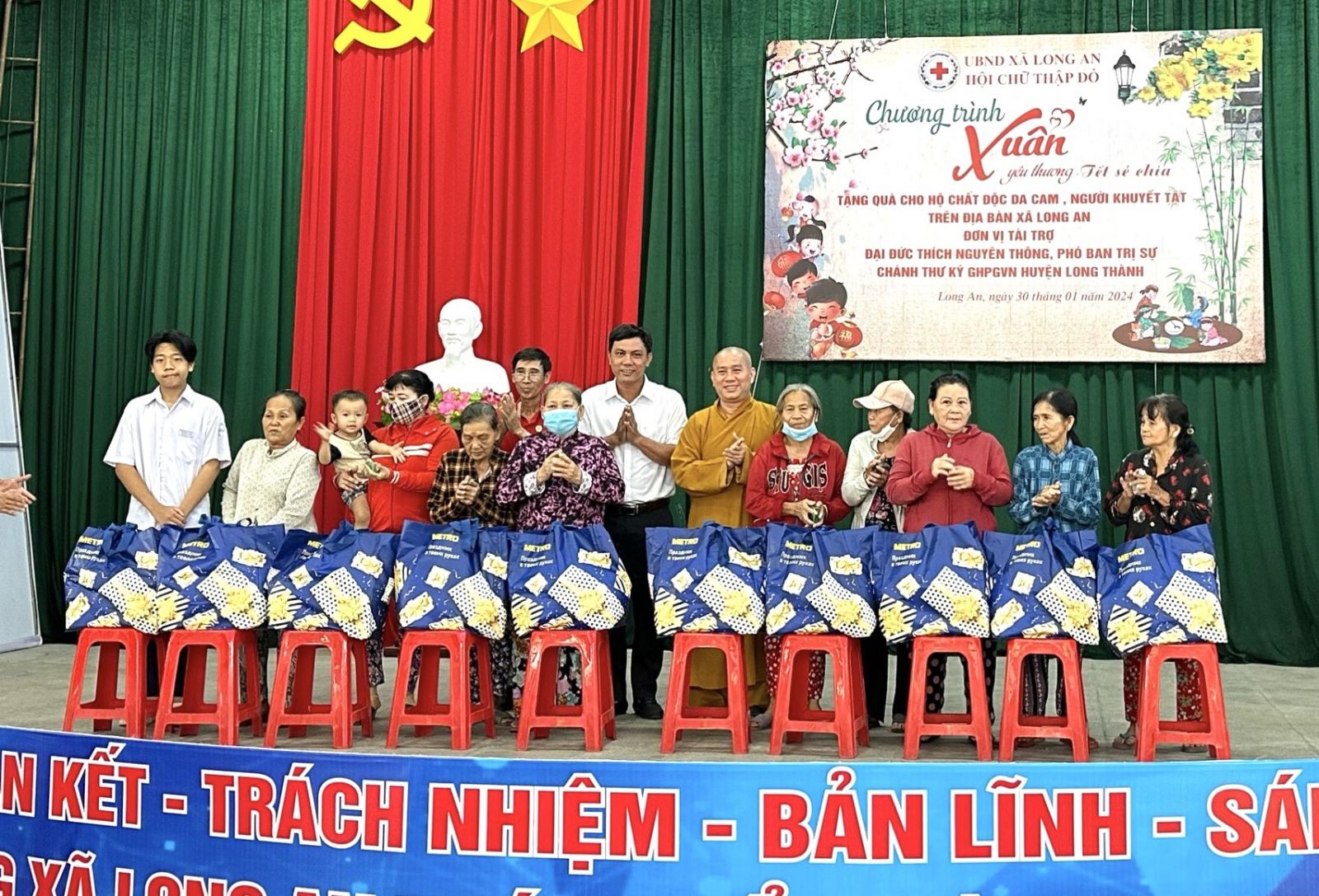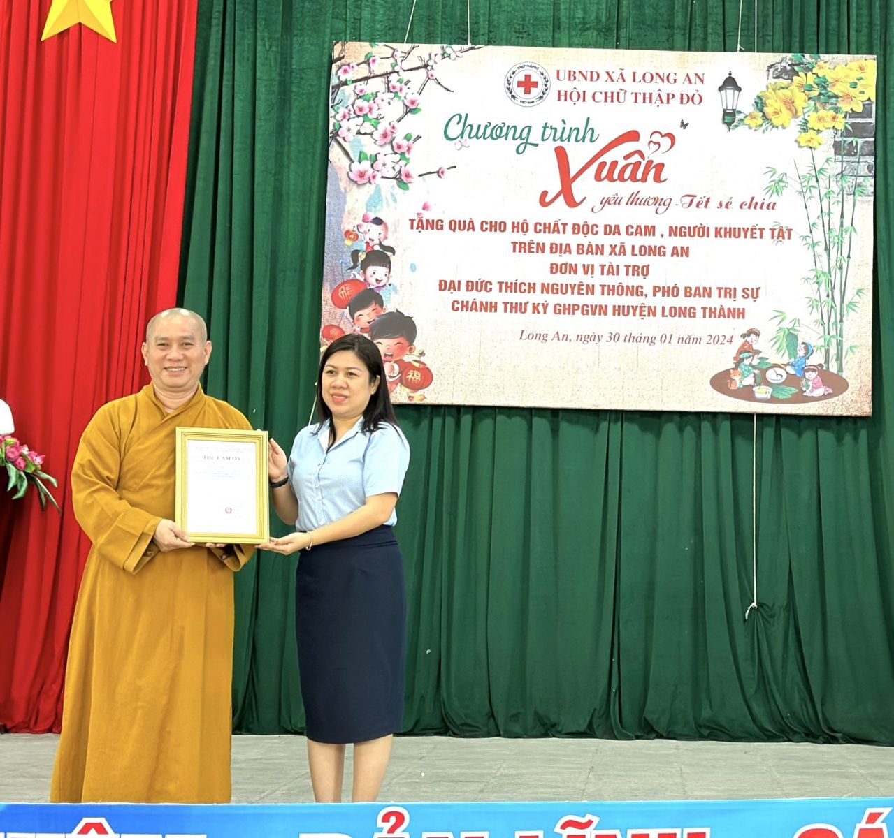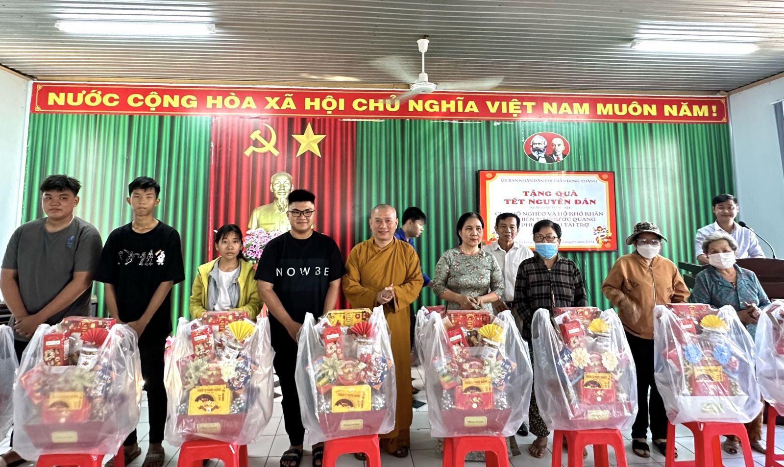 Đoàn Thiện nguyện do ĐĐ. Thích Nguyên Thông – Phó trưởng Phân ban quản lý các cơ sở bảo trợ Phật giáo ban Từ thiện xã hội TƯ, Phó Trưởng ban Thường trực ban Từ thiện xã hội GHPGVN tỉnh Đồng Nai, Phó ban kiêm Chánh Thư ký Ban Trị sự GHPGVN huyện Long Thành, Trụ trì Thiền tự Phước Quang xã Phước Thái làm Trưởng đoàn; cùng quý Phật tử, mạnh thường quân đi cùng đoàn.