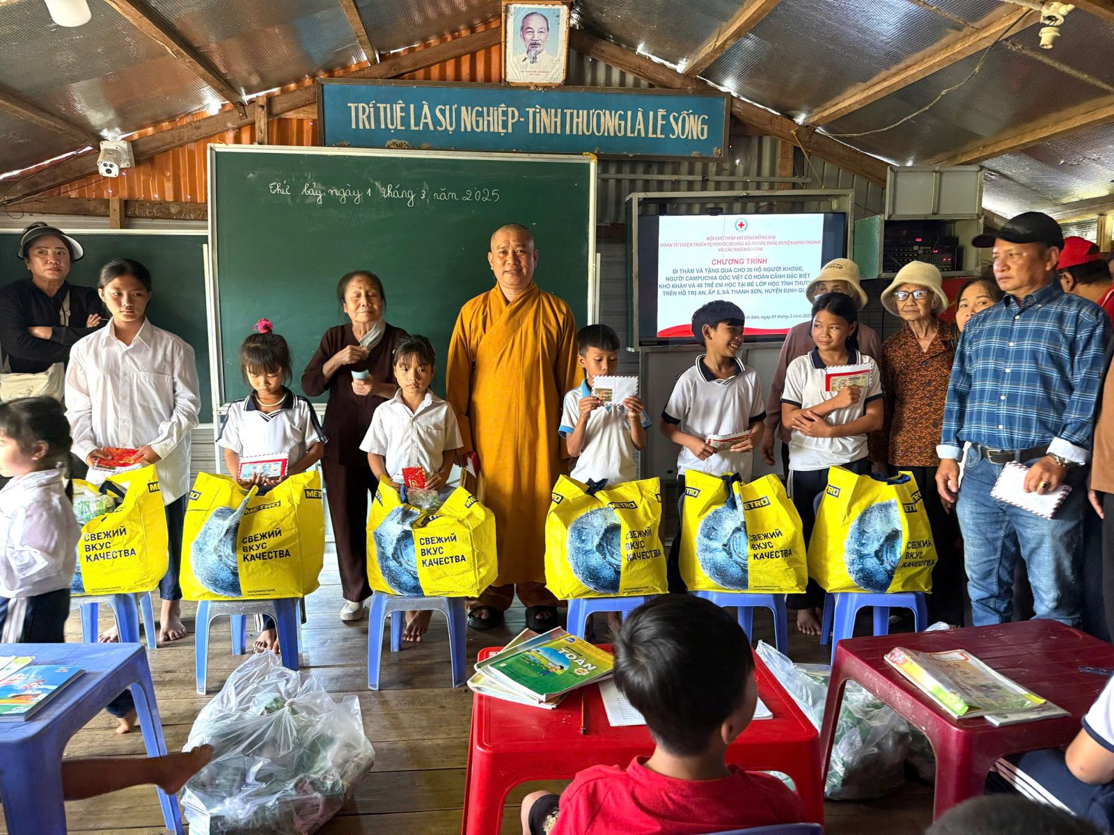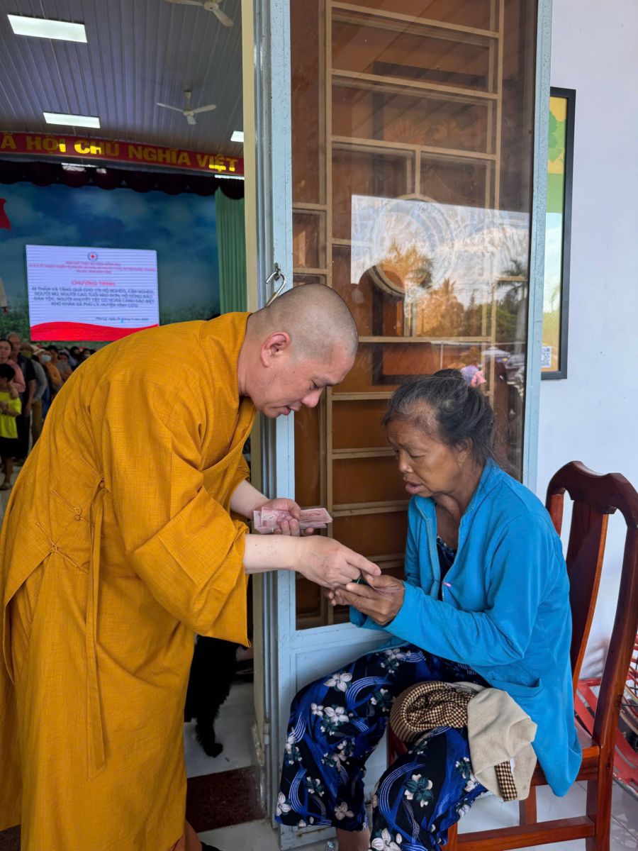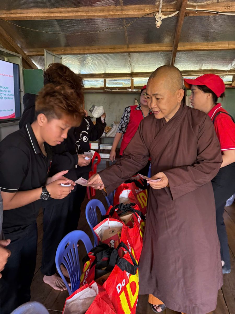 Đoàn đến thăm do ĐĐ. Thích Nguyên Thông – Phó Trưởng ban Thường trực ban Từ thiện xã hội Phật giáo tỉnh Đồng Nai, Phó ban kiêm Chánh Thư ký Ban Trị sự GHPGVN huyện Long Thành, Trụ trì Thiền tự Phước Quang, xã Phước Thái, huyện Long Thành; cùng các mạnh thường quân xa gần.