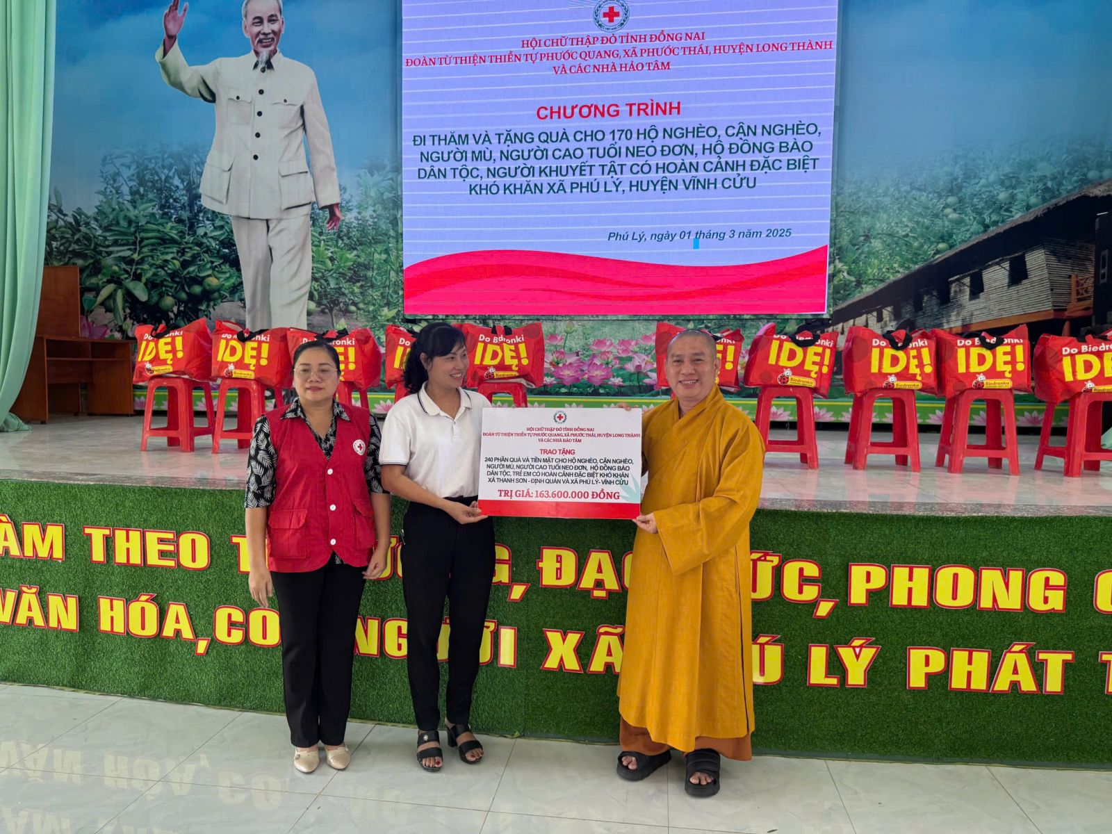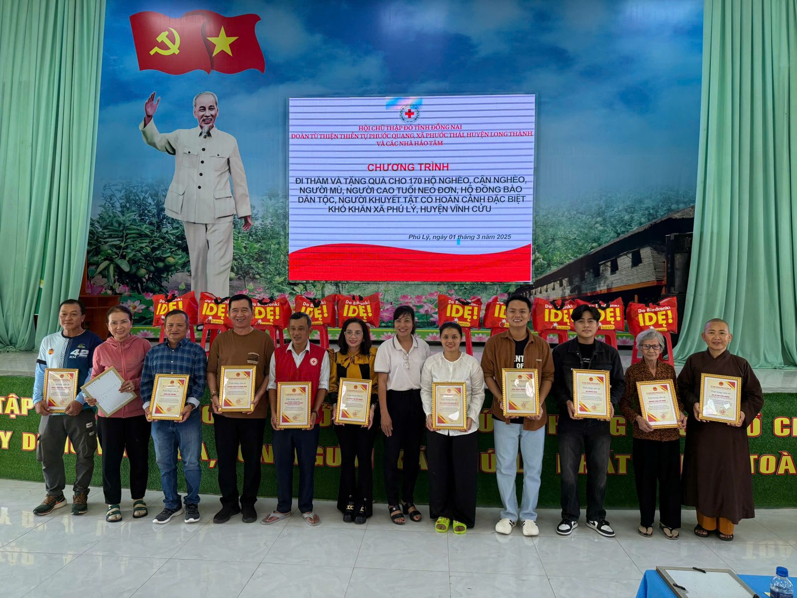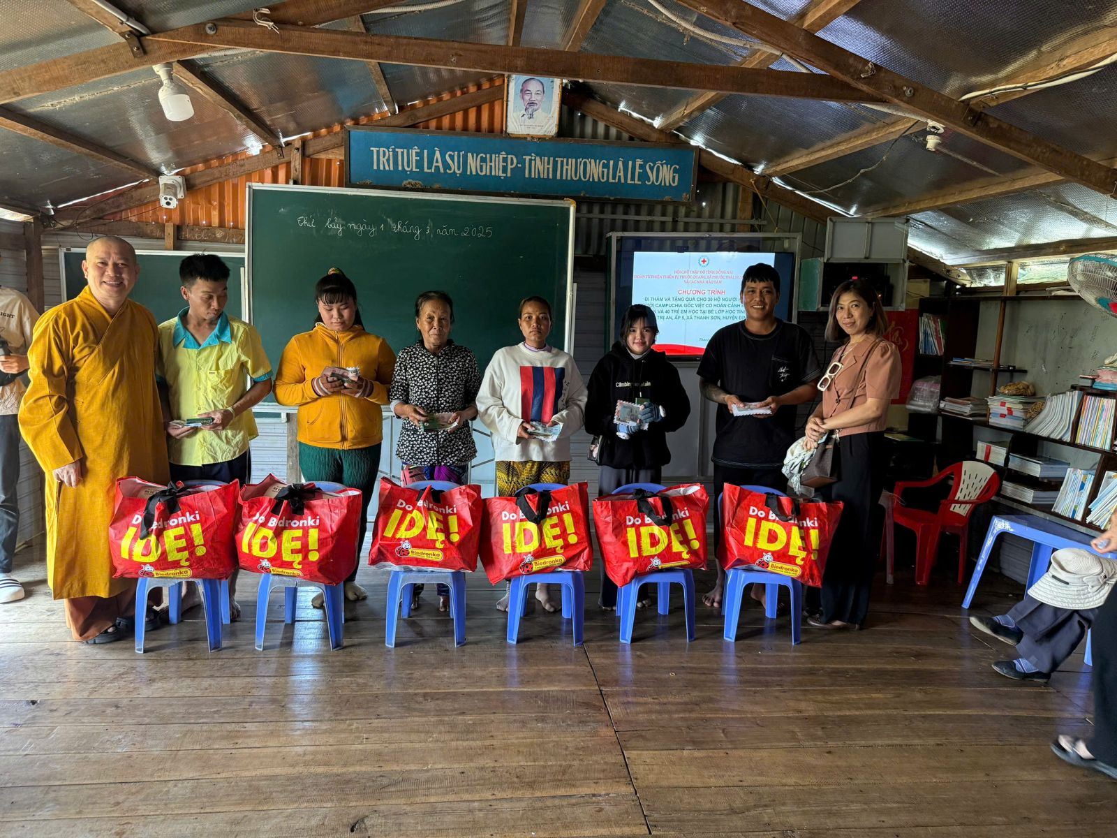 Đoàn đến thăm do ĐĐ. Thích Nguyên Thông – Phó Trưởng ban Thường trực ban Từ thiện xã hội Phật giáo tỉnh Đồng Nai, Phó ban kiêm Chánh Thư ký Ban Trị sự GHPGVN huyện Long Thành, Trụ trì Thiền tự Phước Quang, xã Phước Thái, huyện Long Thành; cùng các mạnh thường quân xa gần.