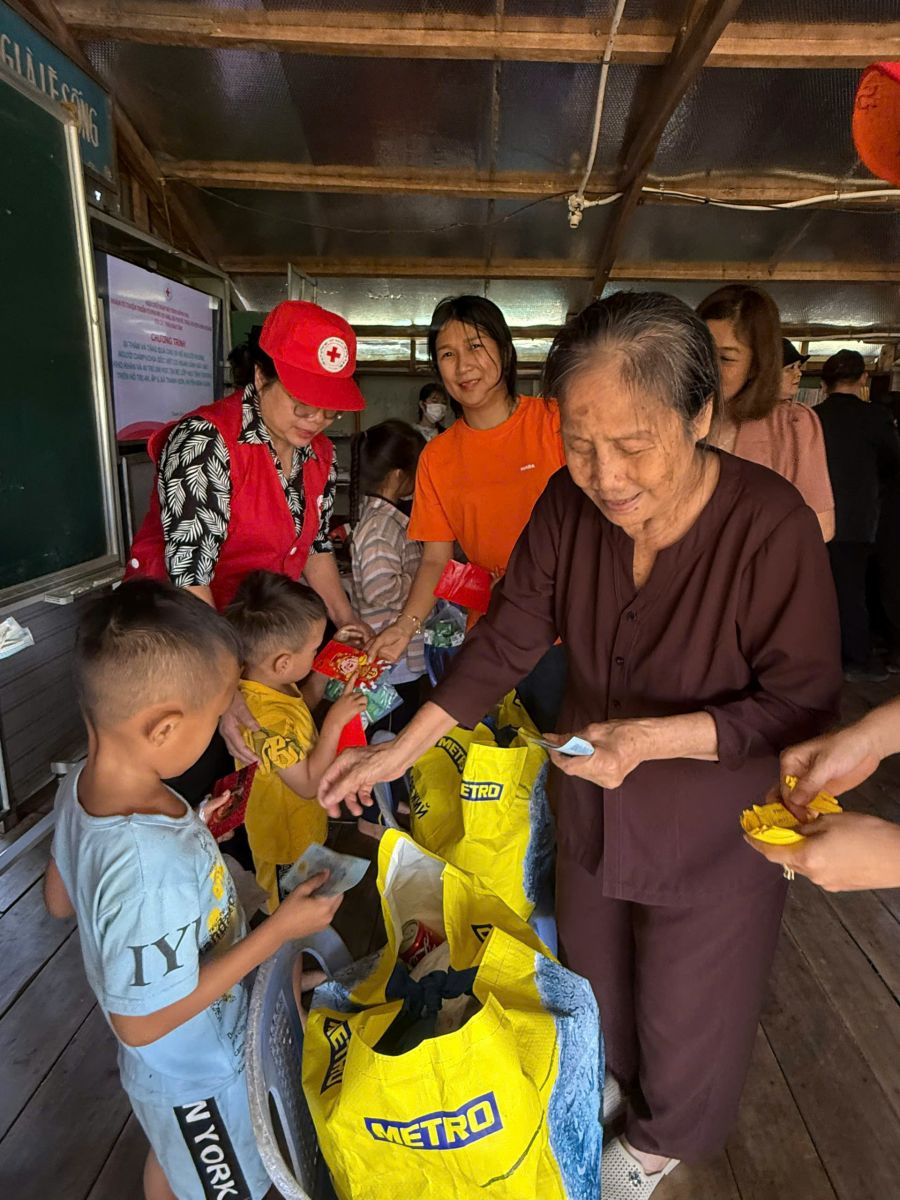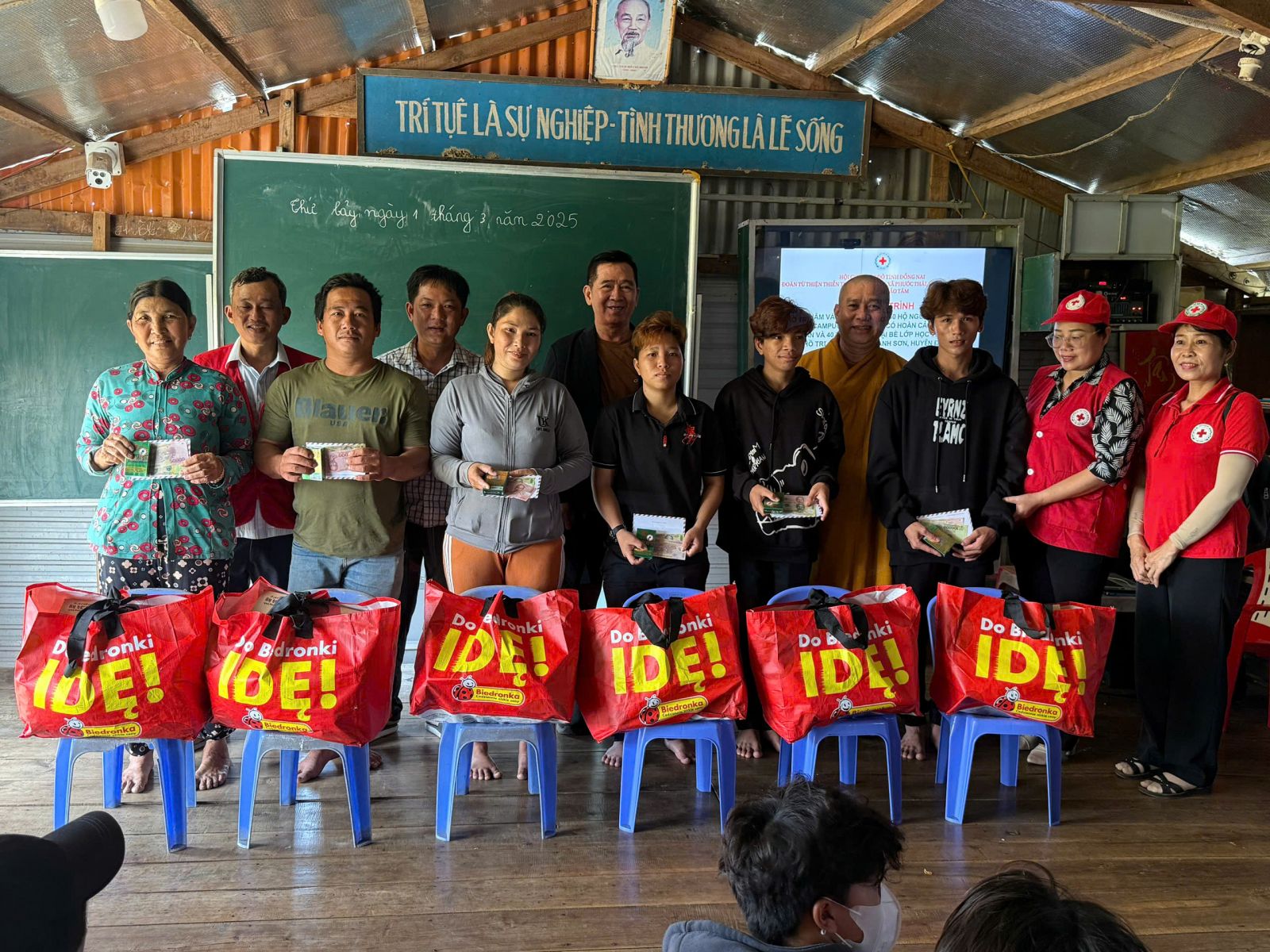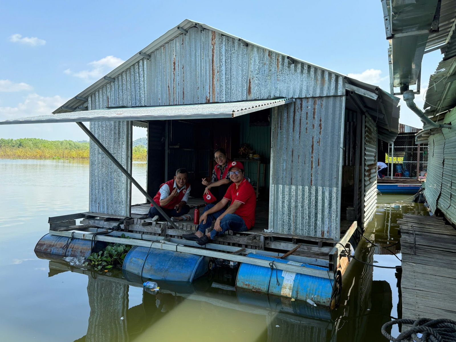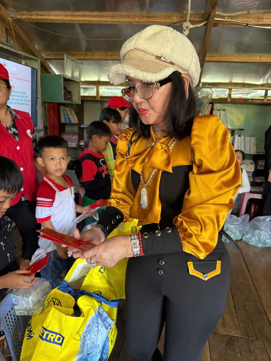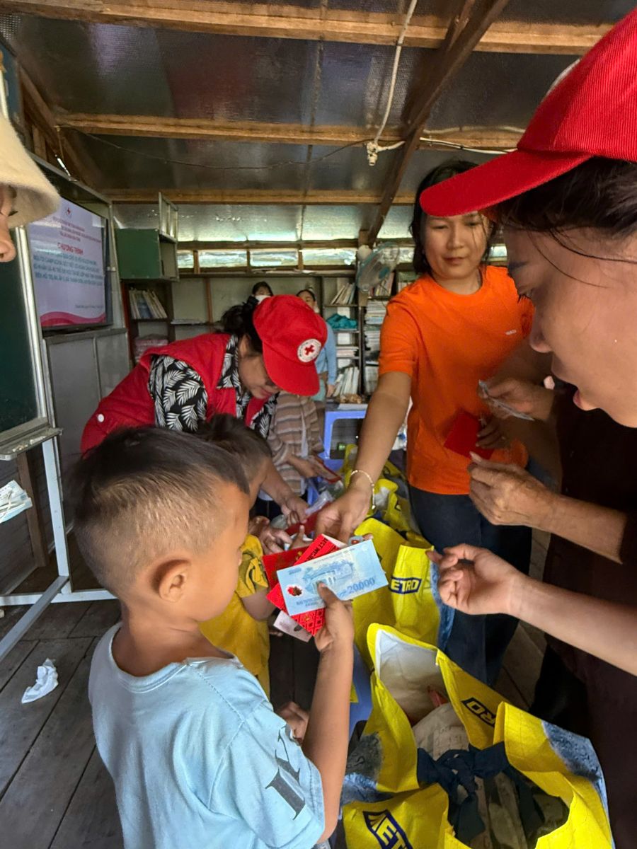 Thông qua Hội chữ Thập đỏ tỉnh Đồng Nai, đoàn đã đến thăm và trao tặng quà cho trẻ em và trợ giúp hộ dân nghèo, cận nghèo, đồng bào, Khơ me, người Campuchia gốc Việt có hoàn cảnh đặc biệt khó khăn đang cư ngụ tại làng bè khu vực ấp 5, xã Thanh Sơn, huyện Định Quán và Bè lớp học tình thương trên hồ Trị An.