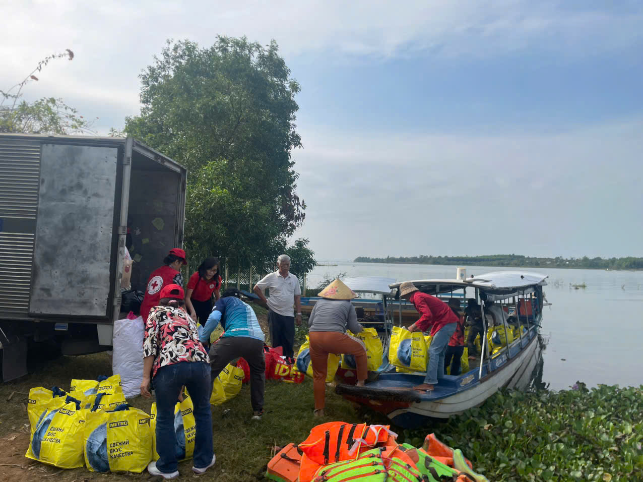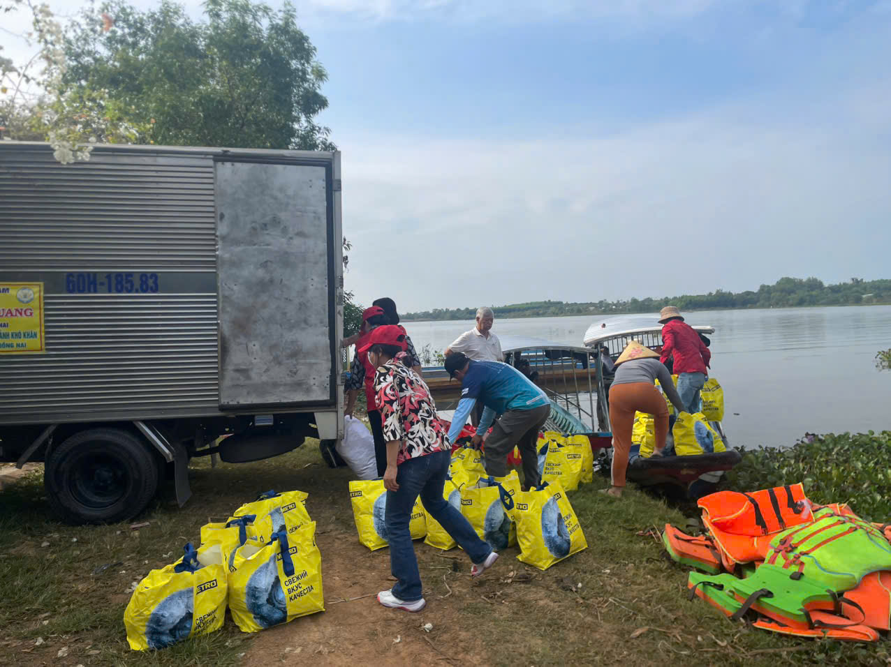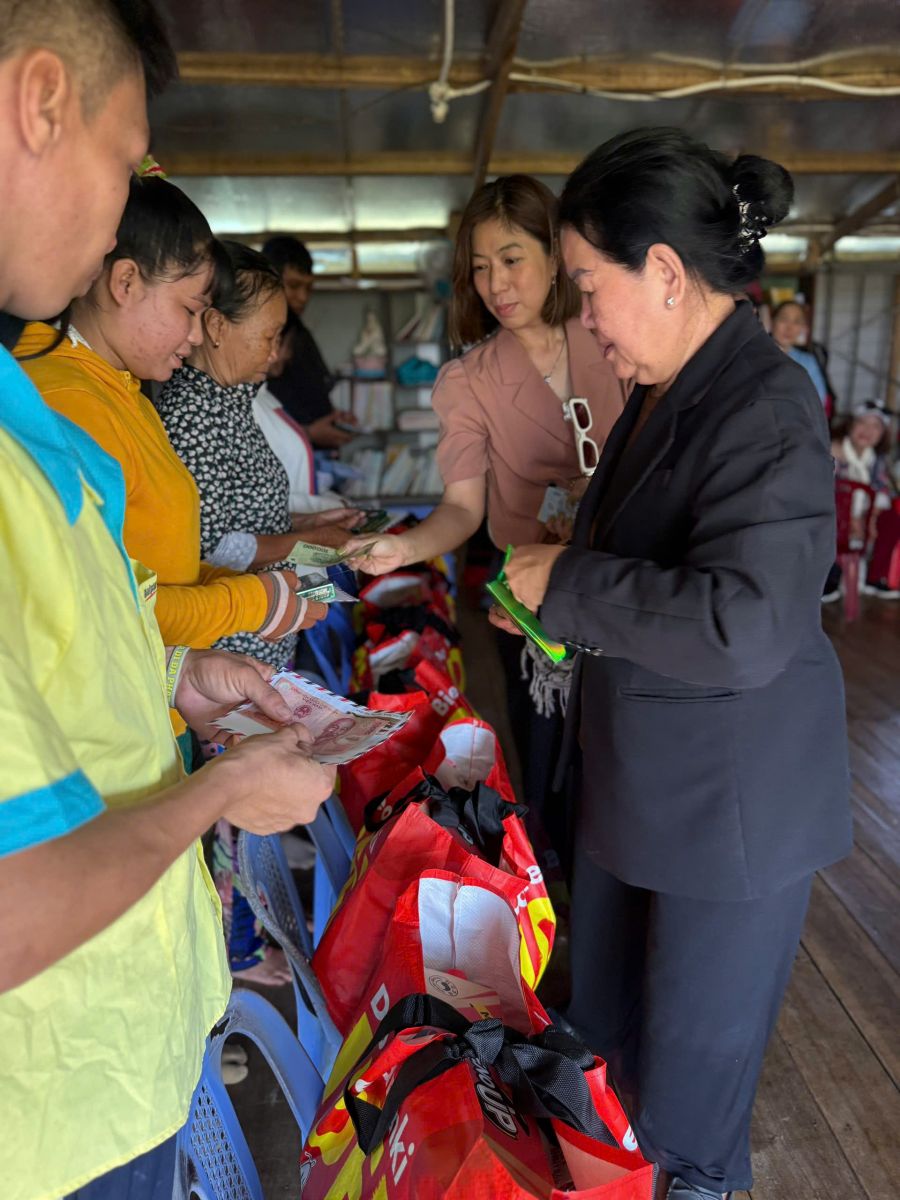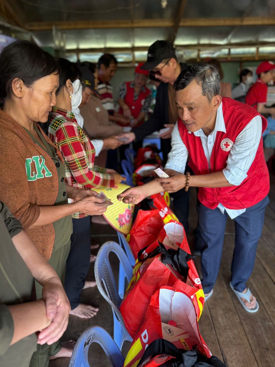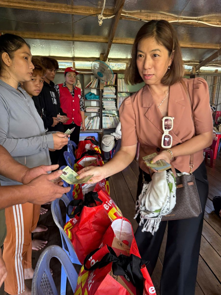 Thông qua Hội chữ Thập đỏ tỉnh Đồng Nai, đoàn đã đến thăm và trao tặng quà cho trẻ em và trợ giúp hộ dân nghèo, cận nghèo, đồng bào, Khơ me, người Campuchia gốc Việt có hoàn cảnh đặc biệt khó khăn đang cư ngụ tại làng bè khu vực ấp 5, xã Thanh Sơn, huyện Định Quán và Bè lớp học tình thương trên hồ Trị An.