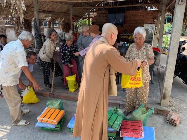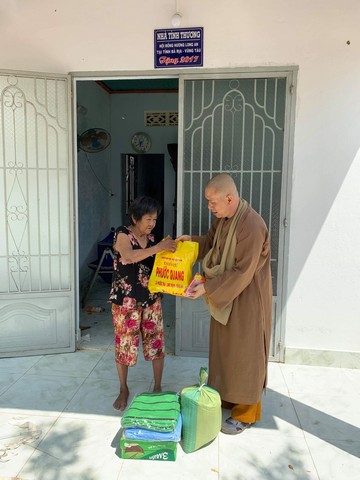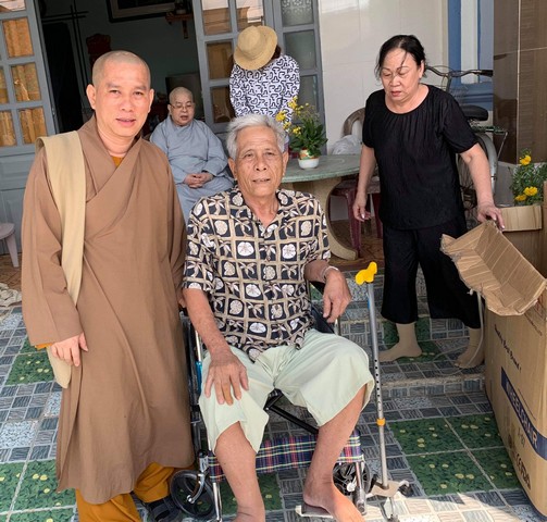 Phát tâm tổ chức đi thăm và tặng quà cho 10 cụ già neo đơn Phường Mỹ Xuân, Thị xã Phú Mỹ, tỉnh Bà Rịa vũng Tàu, mỗi phần quà trị giá 1.400.000đ gồm: 10 kg gạo, 1 thùng mì, 1 kg đường, 1 họp sữa, 1 chai nước tương, 1 cái mền, 1 cái mùng, 1 bịch bún, 1 lít dầu ăn, và bao thư tiền mặt 1.000.000đ, 10 phần x 1.400.000đ = 14.000.000đ.