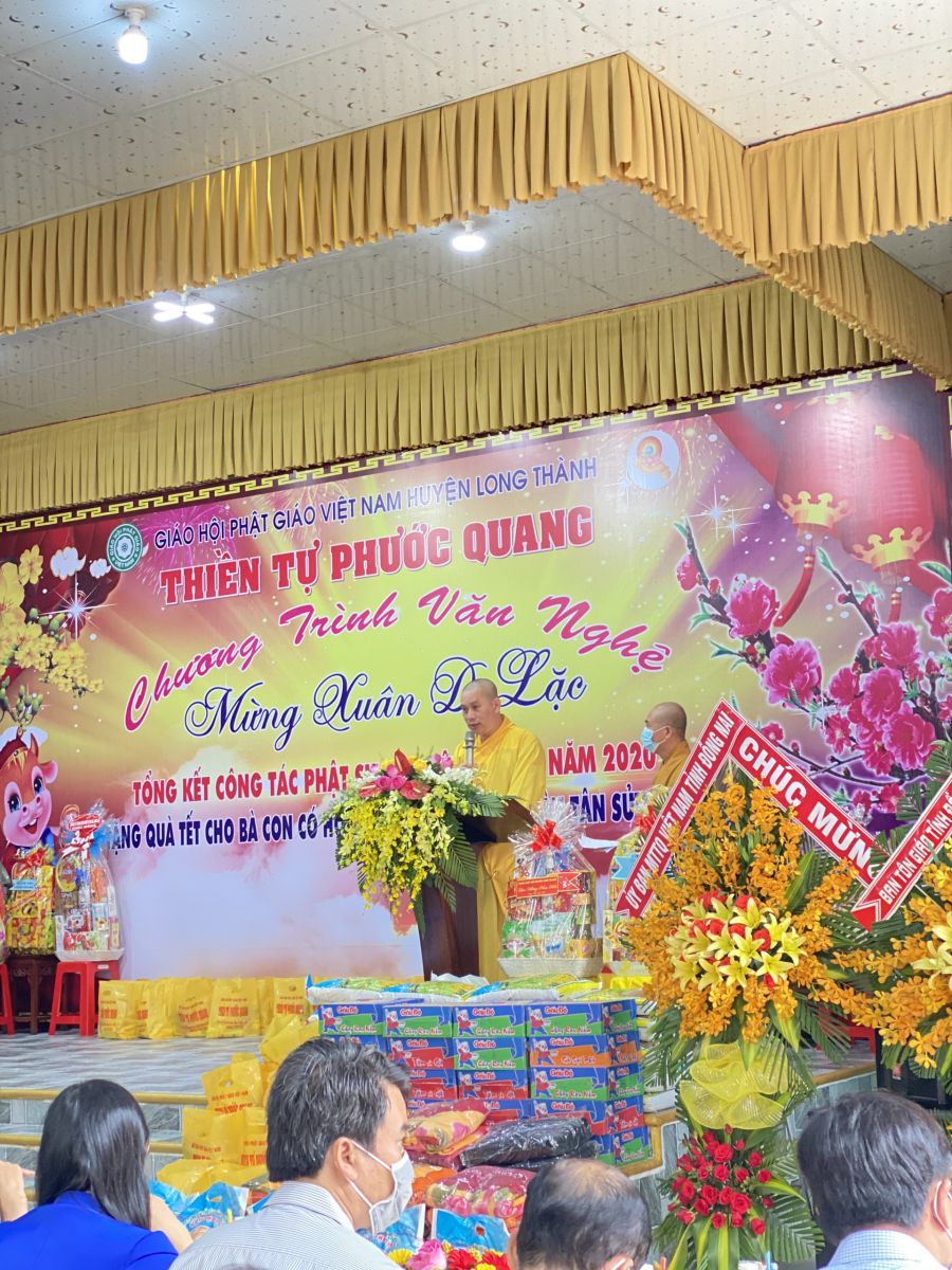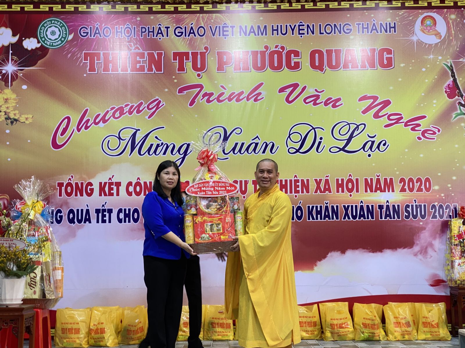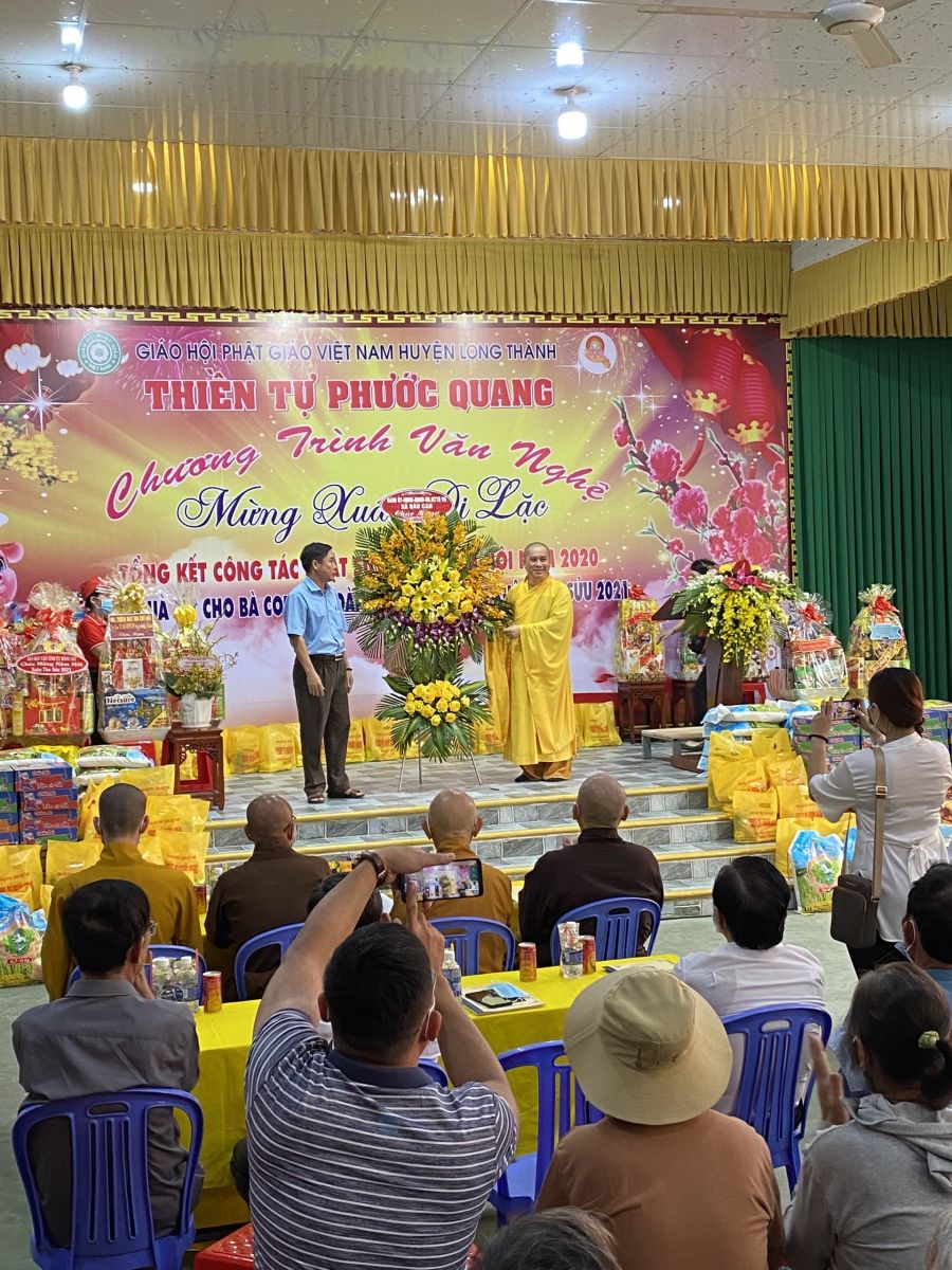 Đạt được những thành quả trên là cũng nhờ tất cả quý phật tử, mạnh thường quân từ các nơi đóng góp hùn phước. Trong buổi lễ tổng kết cũng đã tặng 600 phần quà Tết Xuân Tân Sửu trị giá trên 300.000.000 đồng cho bà con nghèo và nạn nhân bị ảnh hưởng chất độc da cam trên địa bàn, người cao tuổi thuộc 8 xã trong huyện Long thành.