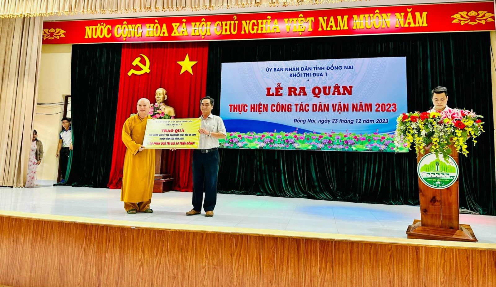 Đoàn đã đến dự lễ ra quân thực hiện công tác dân vận năm 2023 tại huyện Vĩnh Cửu, đồng thời thăm và tặng quà cho bà con khó khăn, khuyết tật và ảnh hưởng chất độc da cam dioxin tại huyện Vĩnh Cửu với tổng 100 phần quà trị giá 60 triệu đồng. Mỗi phần quà bao gồm 1 bao thư 100 ngàn tiền mặt và các nhu yếu phẩm cần thiết.
