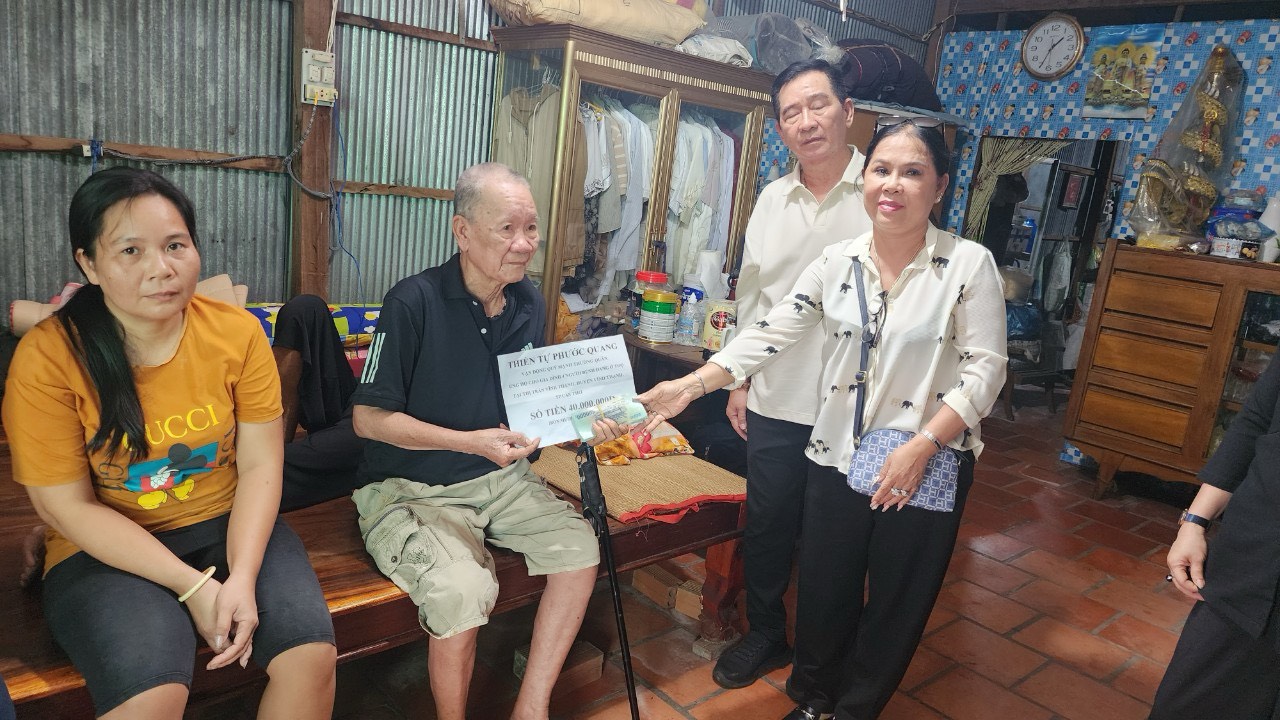 Tiếp đó, đoàn đàn vận động bà con phát tâm đến thăm và trao tặng 40 triệu đồng cho gia đình bà Phạm Thị Vân, 72 tuổi đang bị ung thư máu, Chồng 74 tuổi bị tai biến và con gái bị tâm thần, con trai bị tai biến hiện đang ở trọ tại huyện Vĩnh Thanh, Tp. Cần Thơ.
