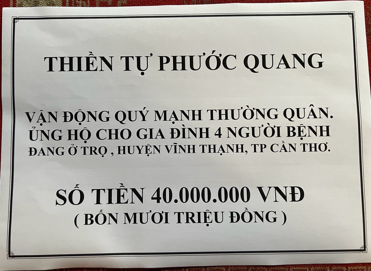 Được biết, tổng cho chuyến thiện nguyện lần này là 100 triệu đồng cho 2 đợt của Thiền tự Phước Quang.