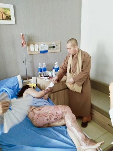 Chiều cùng ngày đi thăm và tặng cho 1 trường hợp bị bỏng nước sôi đang điều trị tại bệnh viện Đồng Nai số tiền 12.000.000đ