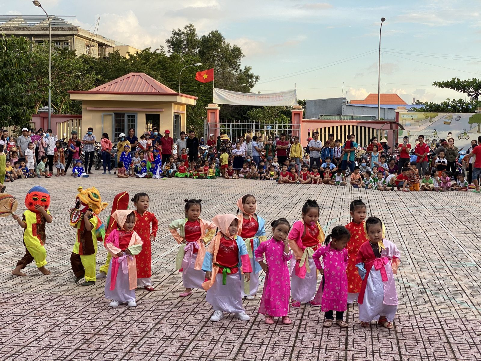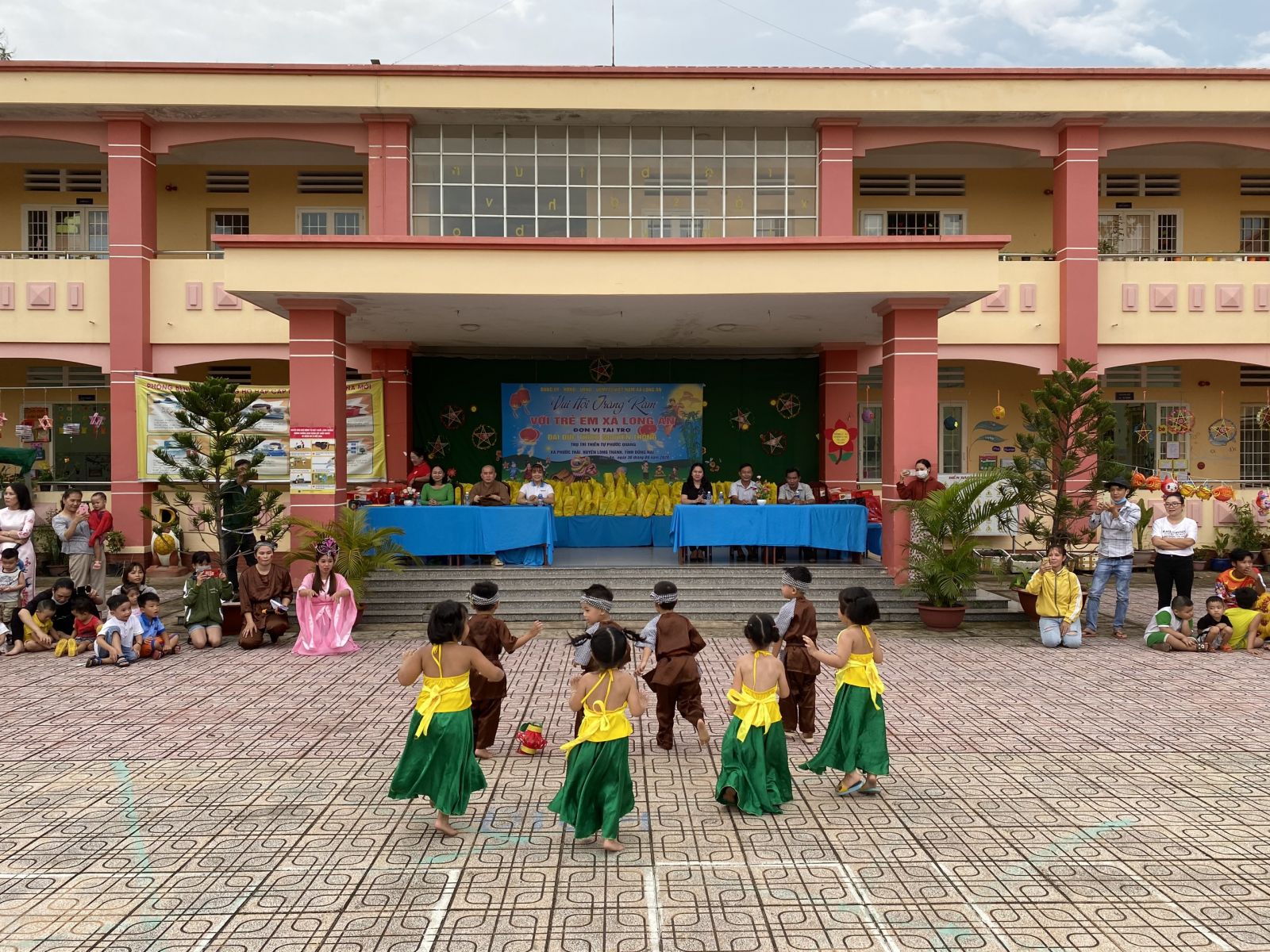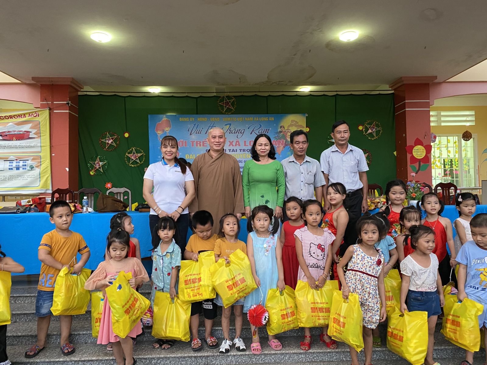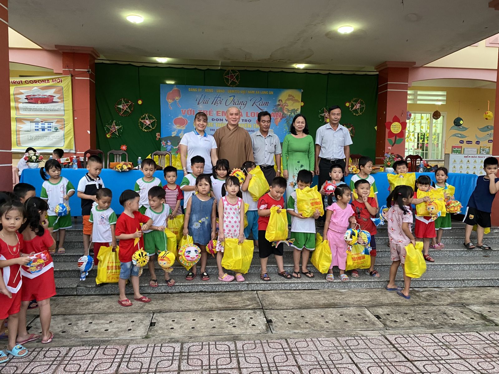 Phụ huynh và các em nhỏ đã được đón xem màn biểu diễn văn nghệ múa Lân thật thu hút và hấp dẫn, có chú Cuội chị Hằng Nga và các tiết mục múa hát đến từ các cháu thiếu nhi điểm Trường Mầm non xã Long An.