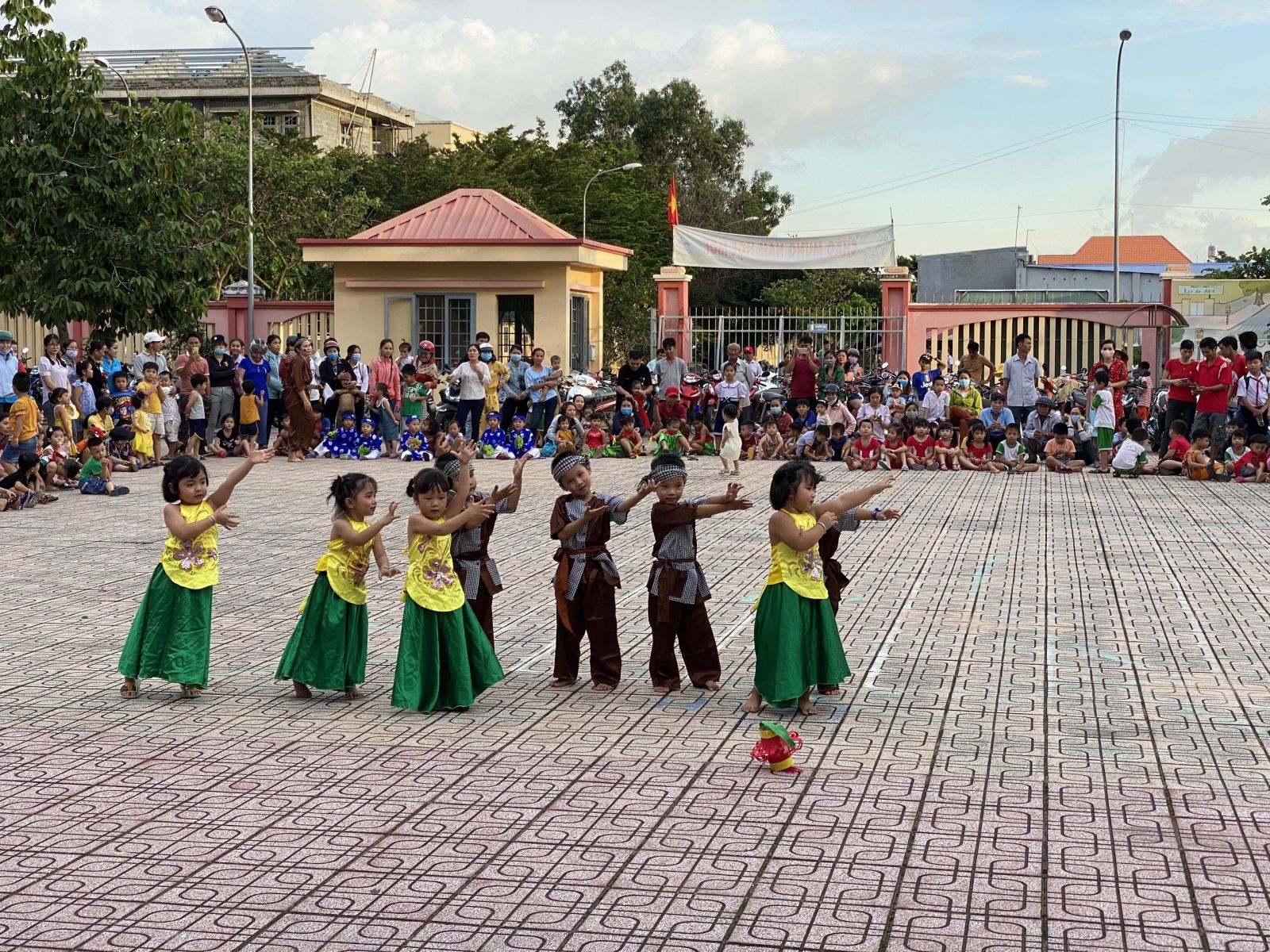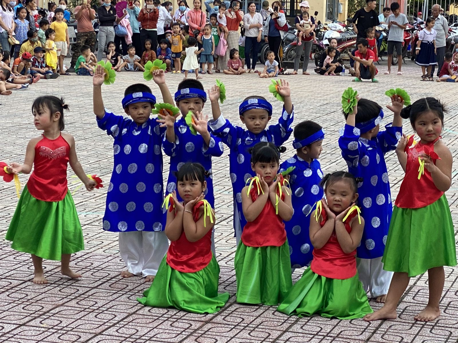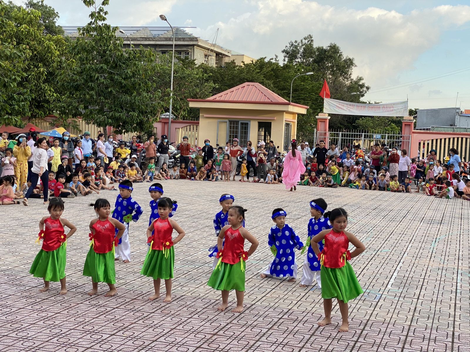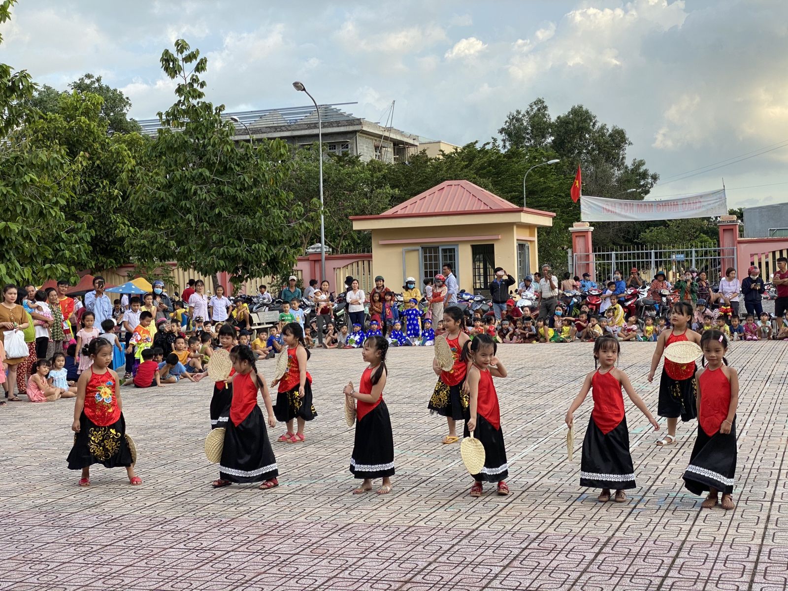 Phụ huynh và các em nhỏ đã được đón xem màn biểu diễn văn nghệ múa Lân thật thu hút và hấp dẫn, có chú Cuội chị Hằng Nga và các tiết mục múa hát đến từ các cháu thiếu nhi điểm Trường Mầm non xã Long An.