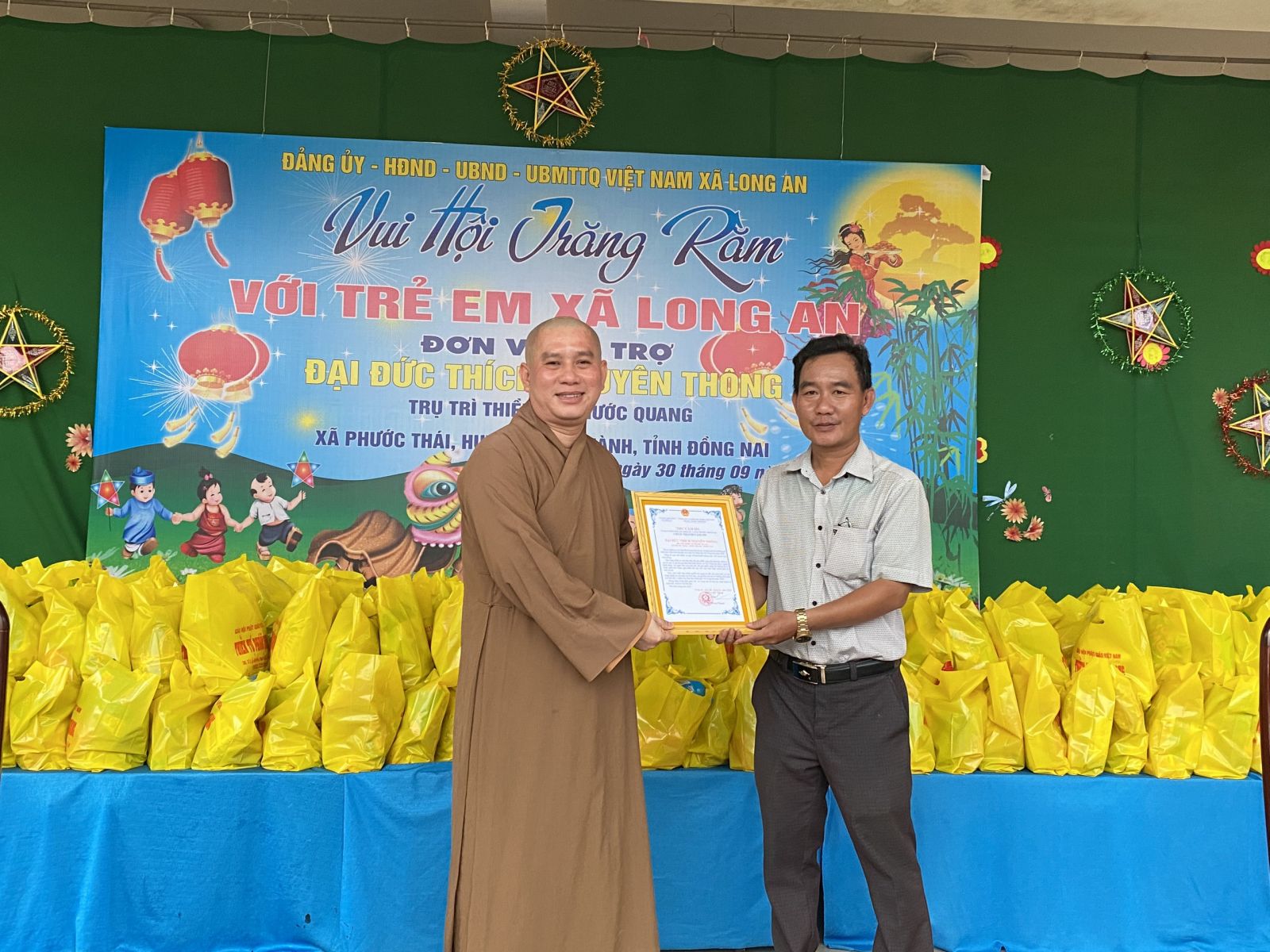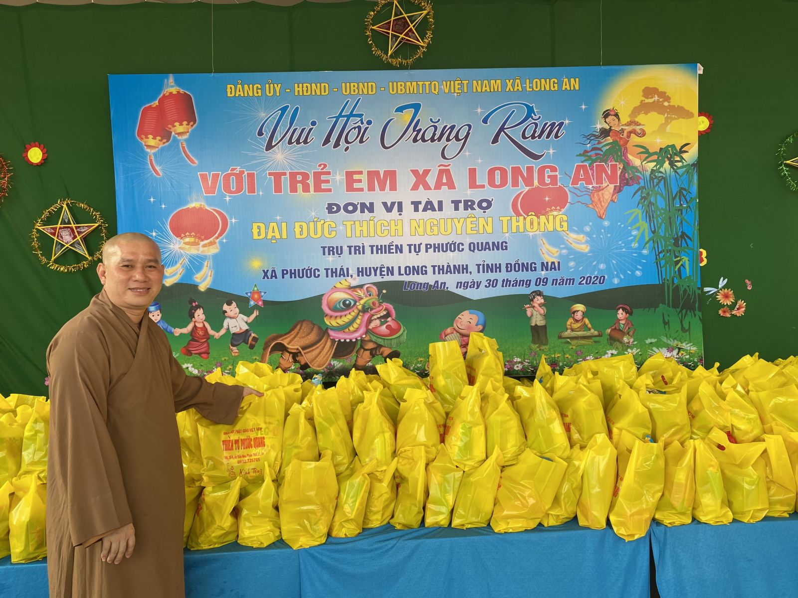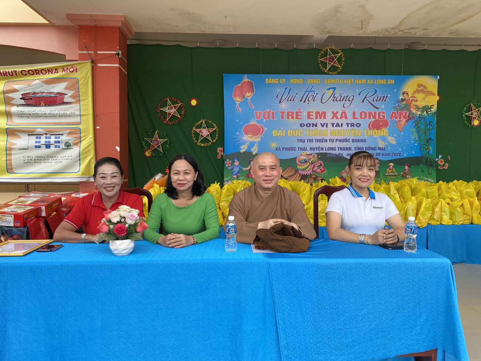 Chương trình “Vui hội Trăng Rằm” diễn ra dưới sự chứng minh, chủ trì của Đại Đức Thích Nguyên Thông – Phó trưởng ban Từ thiện xã hội GHPGVN tỉnh Đồng Nai, Trưởng ban Từ thiện xã hội GHPGVN huyện Long Thành, Trụ trì Thiền tự Phước Quang (xã Phước Thái, huyện Long Thành, tỉnh Đồng Nai).
