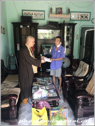 Trường hợp thứ hai do các phật tử cho biết anh Vinh 39 tuổi khu Liên Kim Sơn, Thị trấn Long Thành hiện tại anh bị ung thư vòng họng, vợ bị bệnh tim anh chị có 2 người con, người con trai 17 tuổi đi làm phụ hồ nuôi sống gia đình, người con gái đang đi học, gia đình anh thuộc hộ nghèo được nhà nước xây cho anh 1 căn nhà tình thương, kinh tế gia đình anh đến nay cũng dần kiệt quệ, thầy tổ chức đến thăm và tặng cho anh 8.000.000đ và một số quà trị giá: 500.000đ.