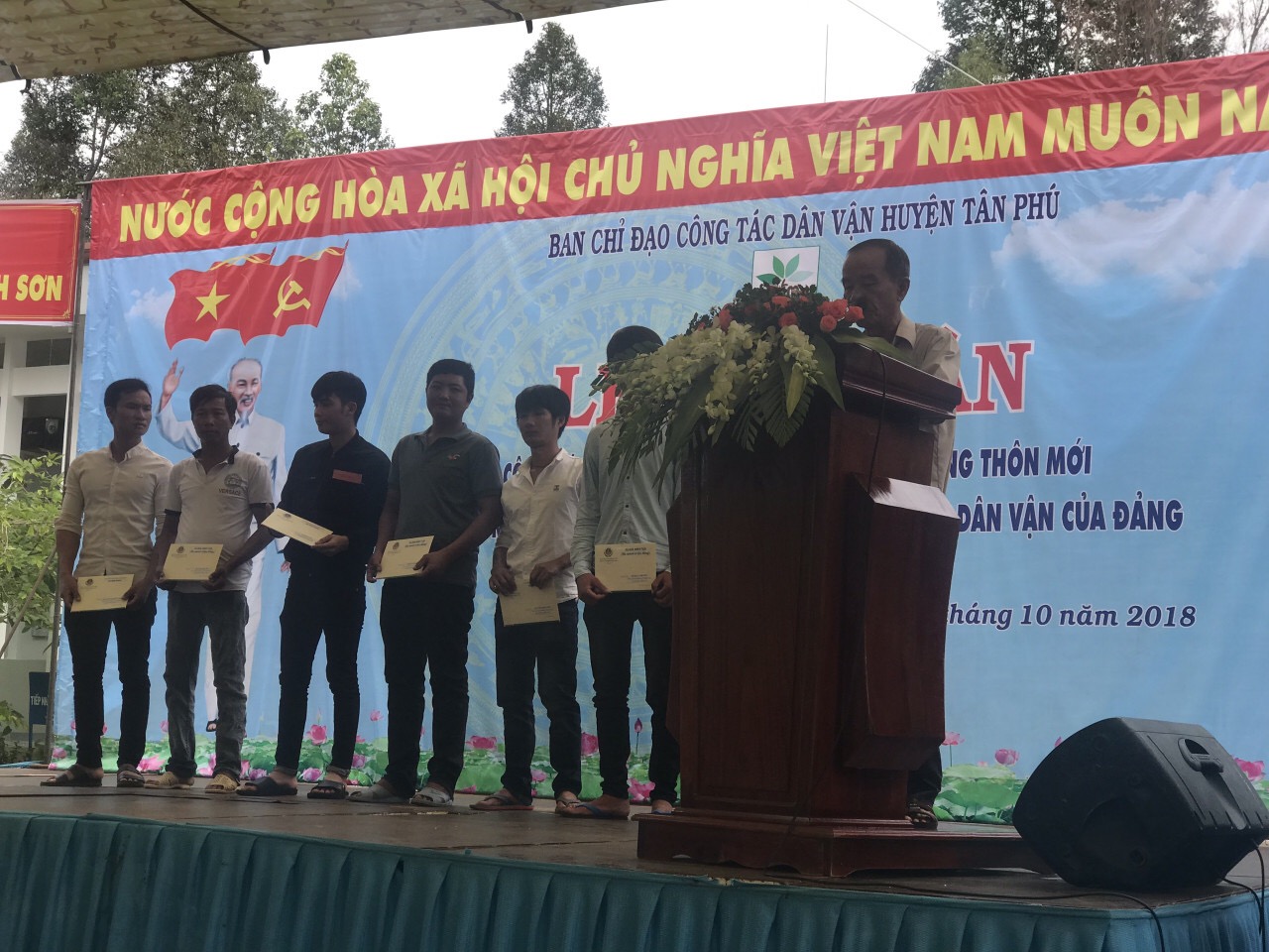 Nhân ngày Lễ ra quân Công tác dân vận xã Thanh Sơn, huyện Tân Phú, tỉnh Đồng Nai thầy phối hợp với Ban dân vận tỉnh Đồng Nai ủng hộ 50.000.000đ xây dựng 01 căn nhà nhân ái cho hộ nghèo đặc biệt của xã Thanh Sơn, cũng là hộ khó khăn về nhà ở,