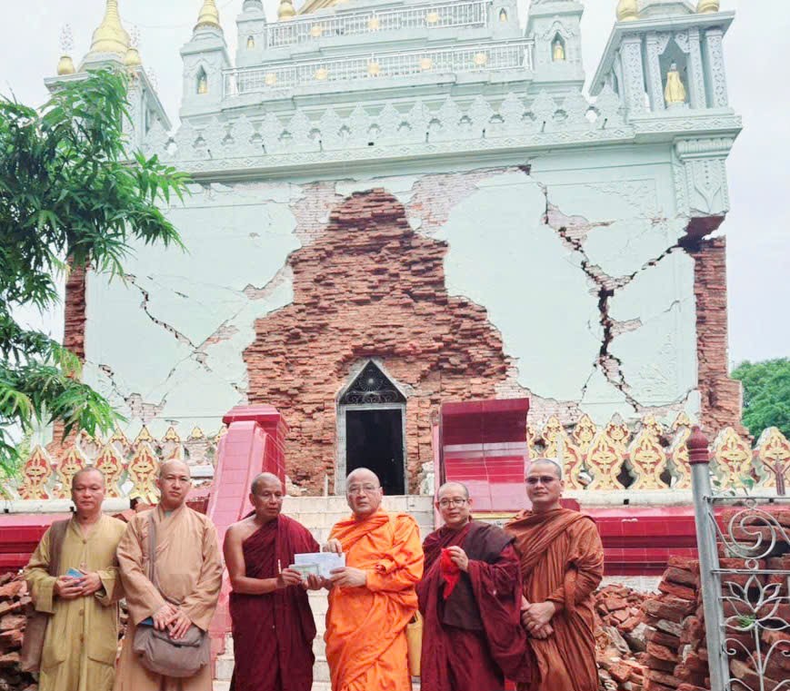Tại Myanmar nói riêng trận động đất đã làm sập đổ gây thiệt hại hơn 100 ngôi chùa. Đây là một thiệt hại rất lớn đối với Phật giáo Myanmar, rất nhiều chư Tăng và Phật tử địa phương đã cất tạm nhà lá để tiếp tục tu học.