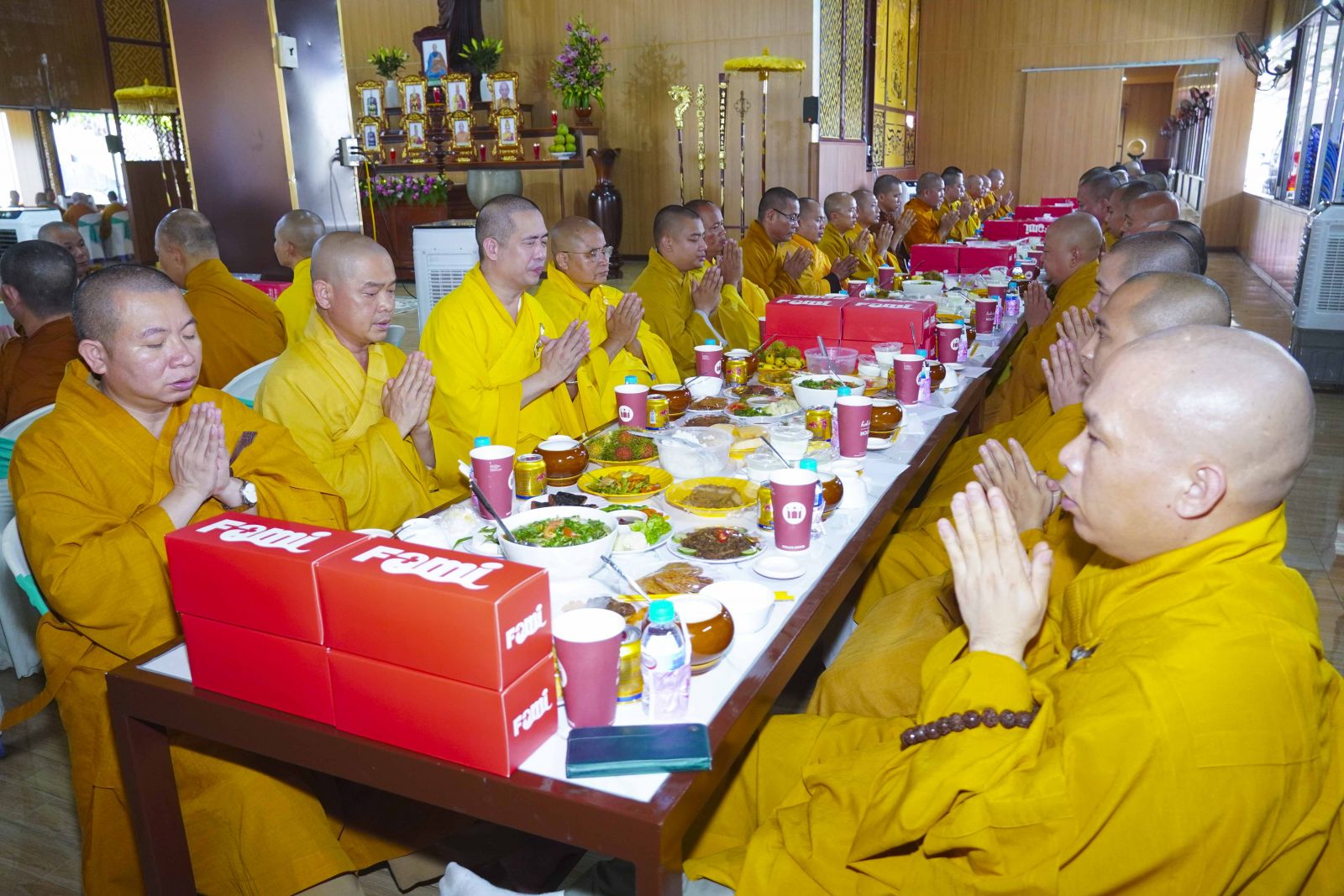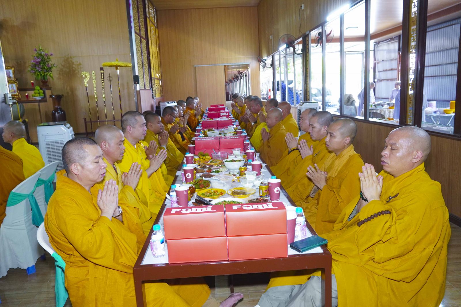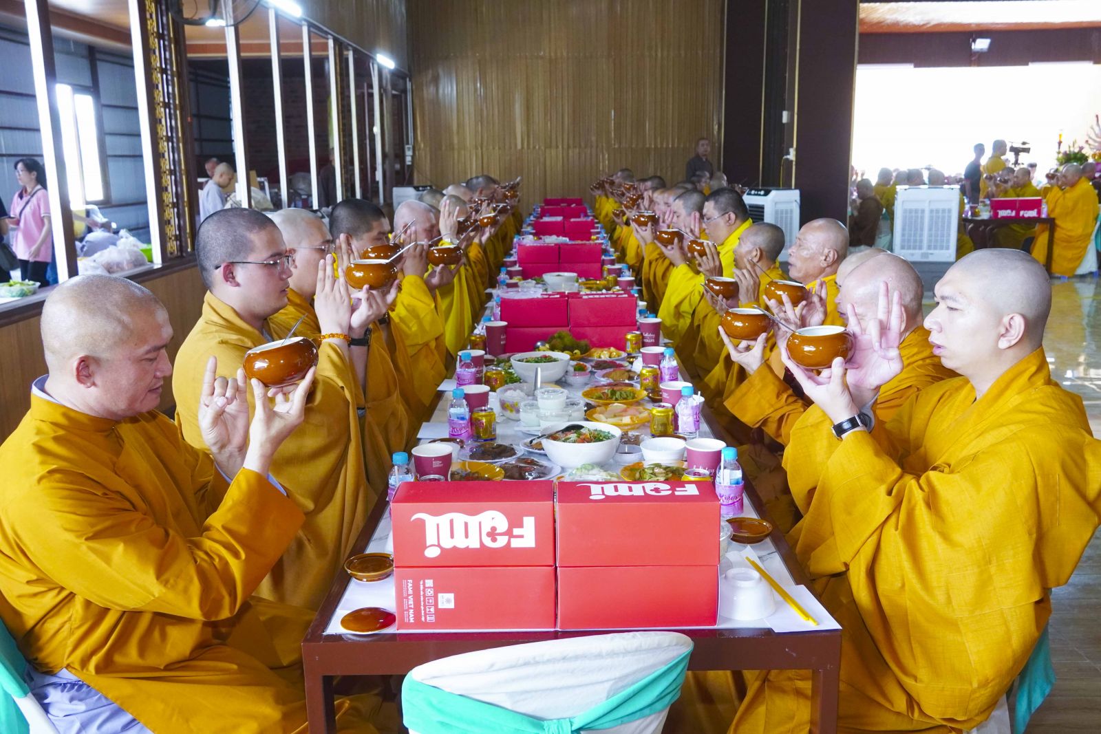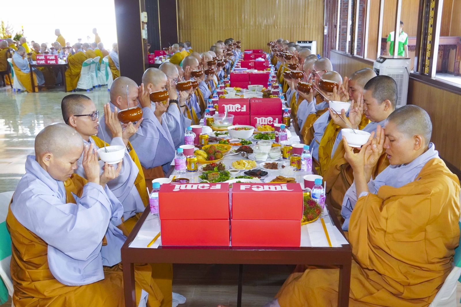 Chư Tôn đức Tăng Ni tham dự khóa Huân tu đã trang nghiêm thọ trai đúng theo nghi thức Quá đường.