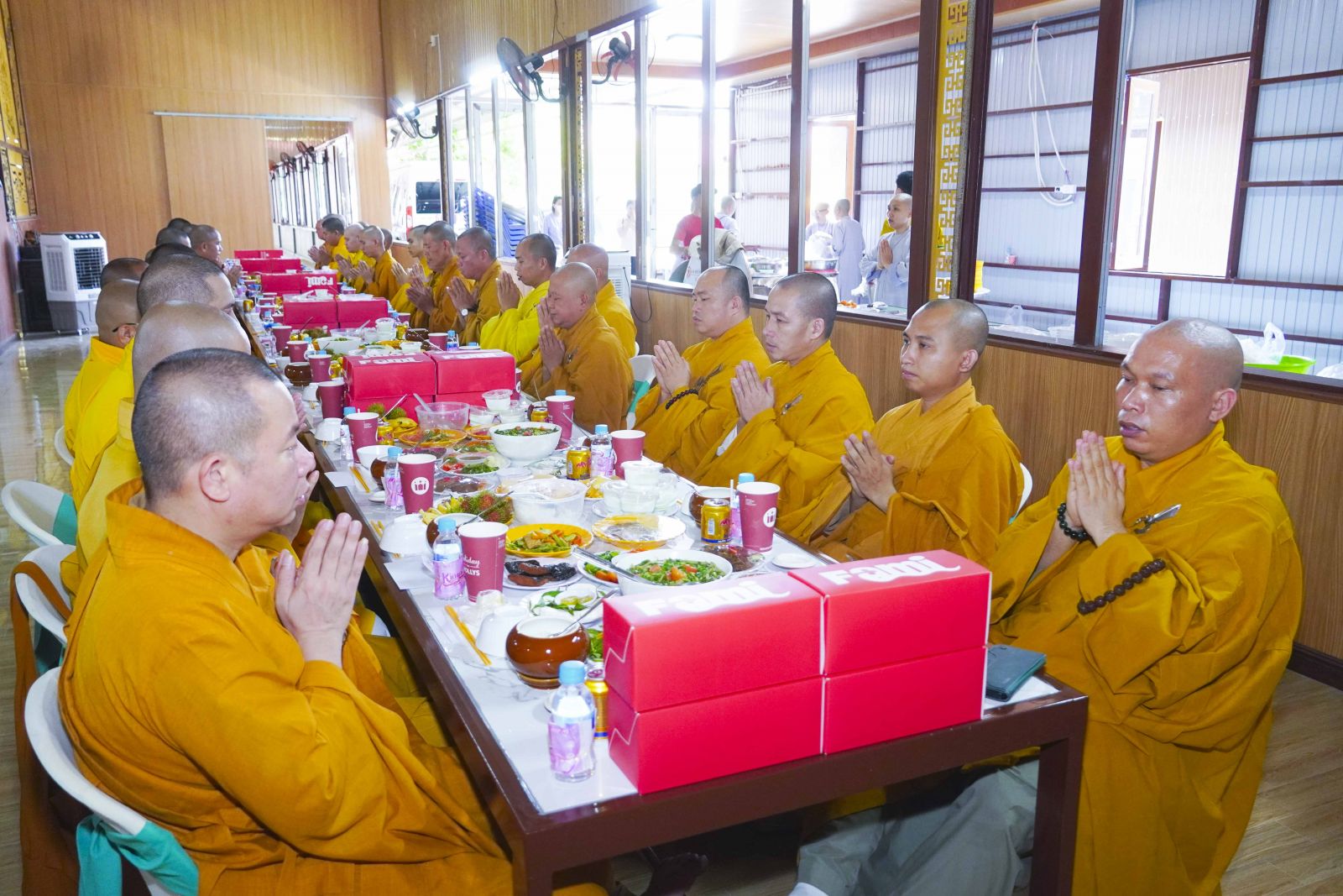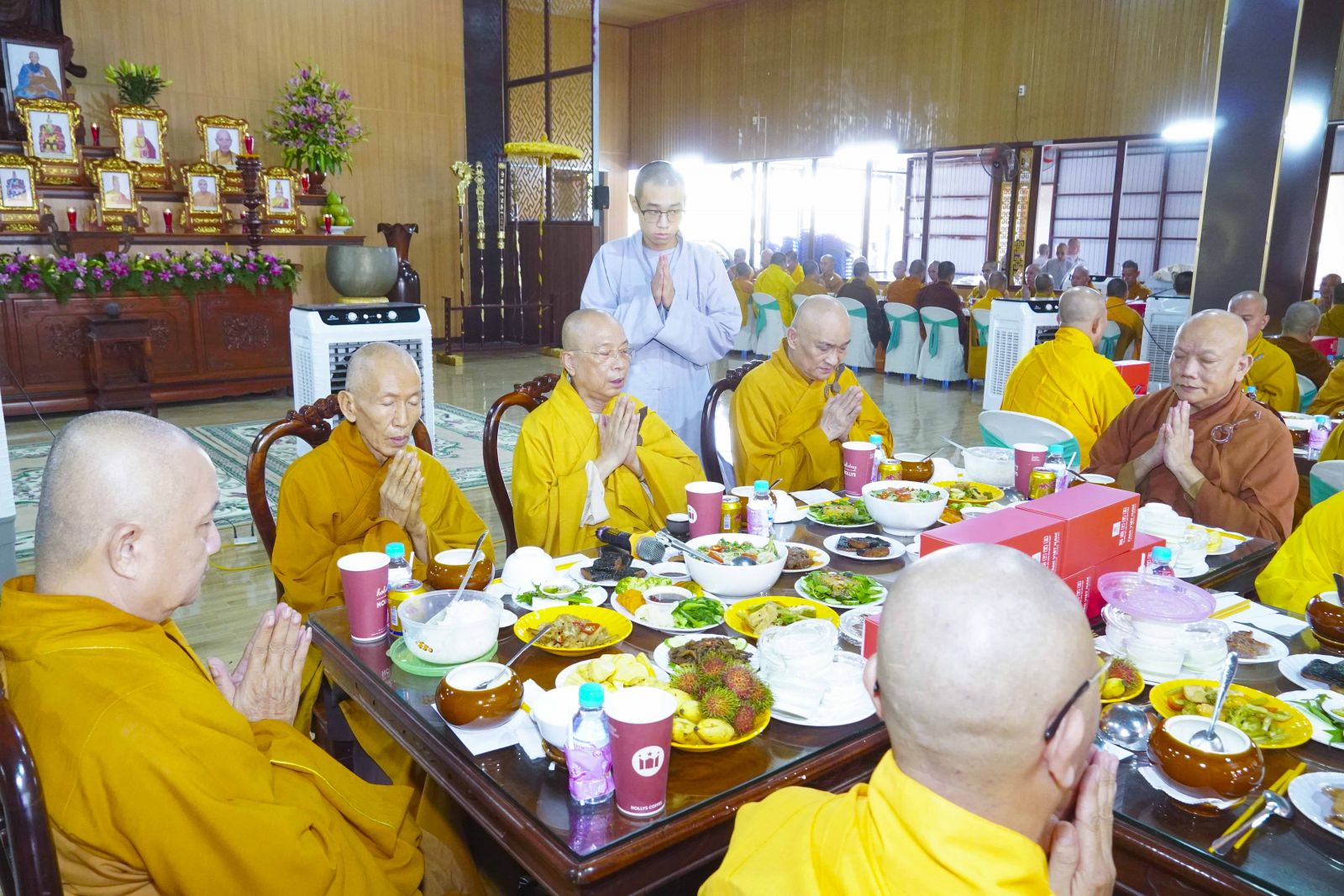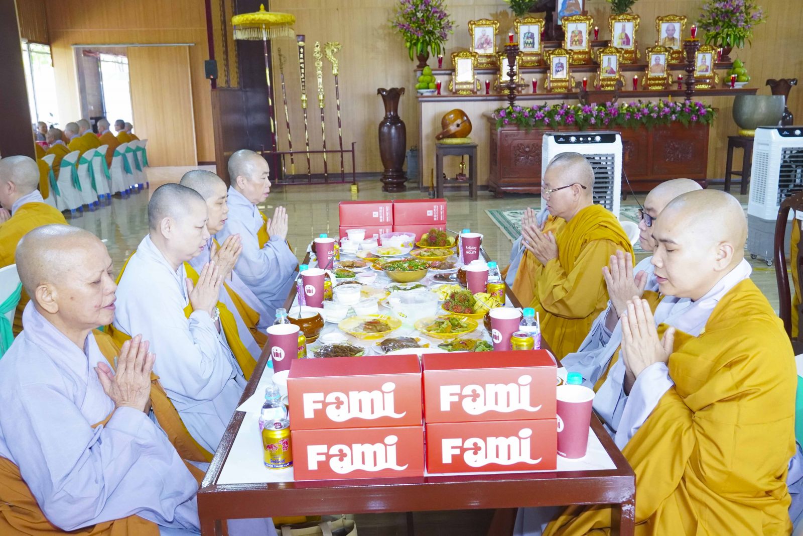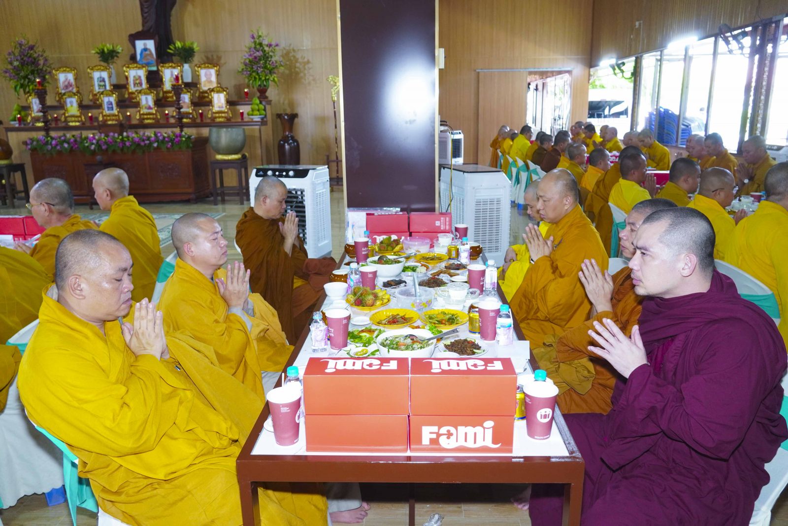 Chư Tôn đức Tăng Ni tham dự khóa Huân tu đã trang nghiêm thọ trai đúng theo nghi thức Quá đường.