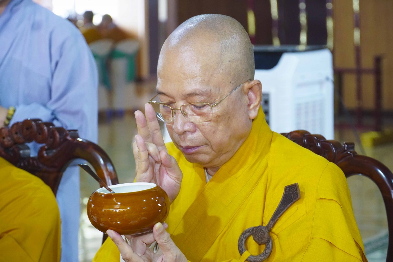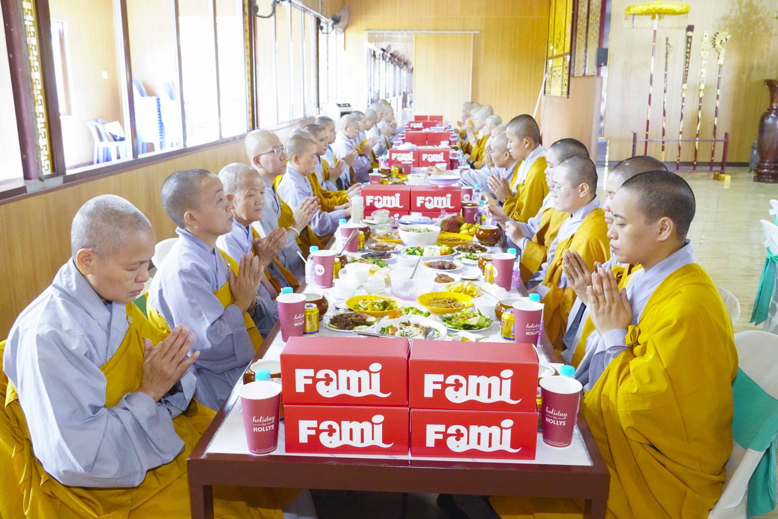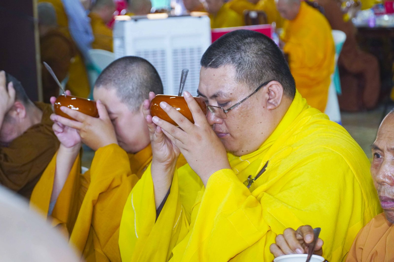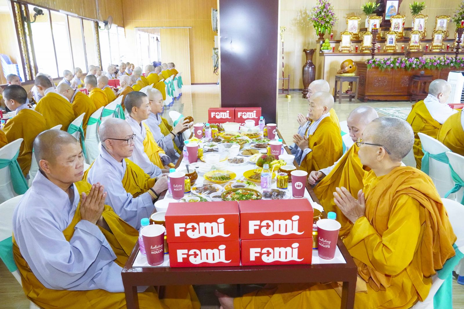 Chư Tôn đức Tăng Ni tham dự khóa Huân tu đã trang nghiêm thọ trai đúng theo nghi thức Quá đường.