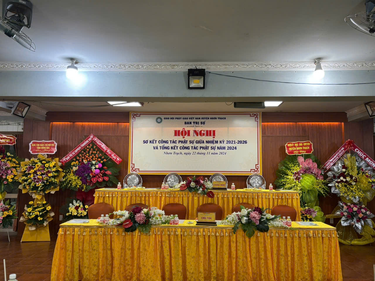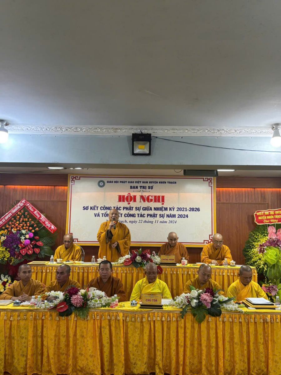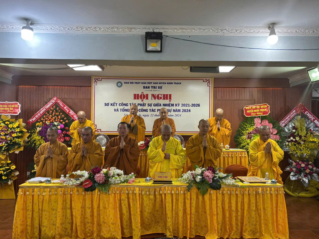 Hội nghị dưới sự chủ trì của Thượng tọa Thích Thiện Pháp - Phó trưởng Ban Trị sự tỉnh, Trưởng Ban Trị sự GHPGVN huyện Nhơn Trạch; Thượng tọa Thích Thông Nhàn – Cố vấn BTS GHPGVN huyện Nhơn Trạch; Đại đức Thích Chơn Khương – Phó Trưởng Ban Thường Trực GHPGVN huyện Nhơn Trạch; Thượng tọa Thích Đạo Viên – Phó Ban, Trưởng Ban Hoằng Pháp GHPGVN huyện Nhơn Trạch; Thượng tọa Thích Thiện Phát – Phó Ban, Trưởng Ban Kiểm Soát GHPGVN huyện Nhơn Trạch cùng chư Tôn Đức trong Ban Trị sự và 70 đại biểu là thành viên Ban Trị sự GHPGVN huyện.
