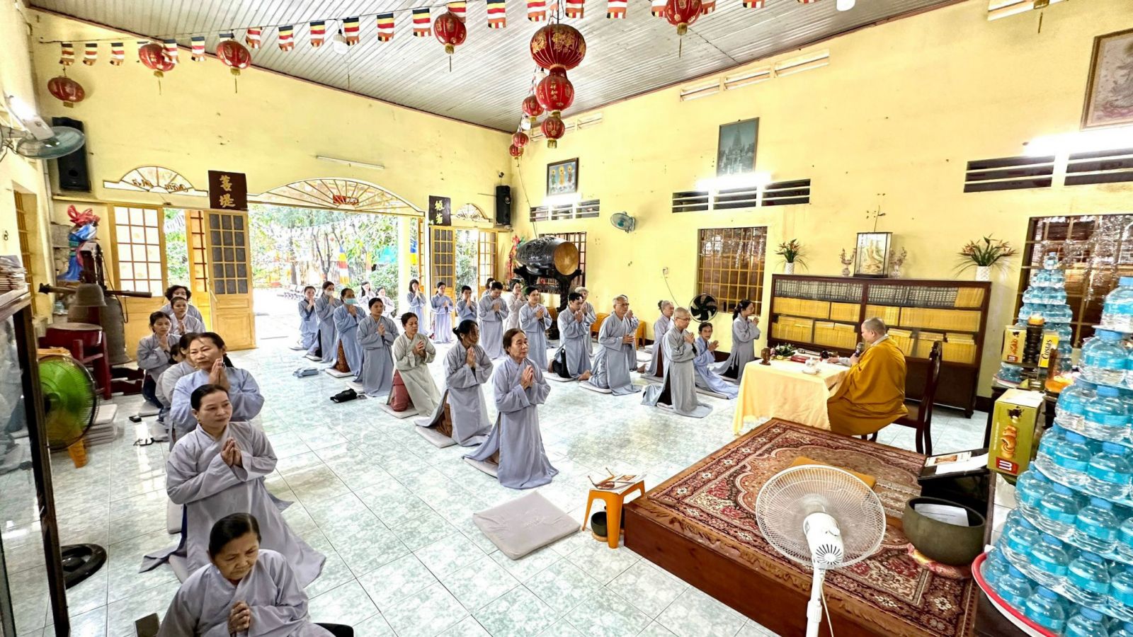 Khóa tu dưới sự hướng dẫn của Ni sư Thích Nữ Huệ Hiếu, Ủy viên thường trực Ban Hoằng pháp tỉnh Đồng Nai, trụ trì Chùa Long Hoa, trưởng ban tổ chức, cùng chư Ni chúng và hơn 50 Phật tử tham dự.