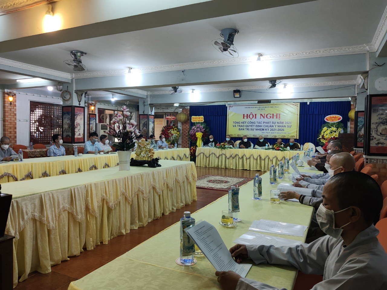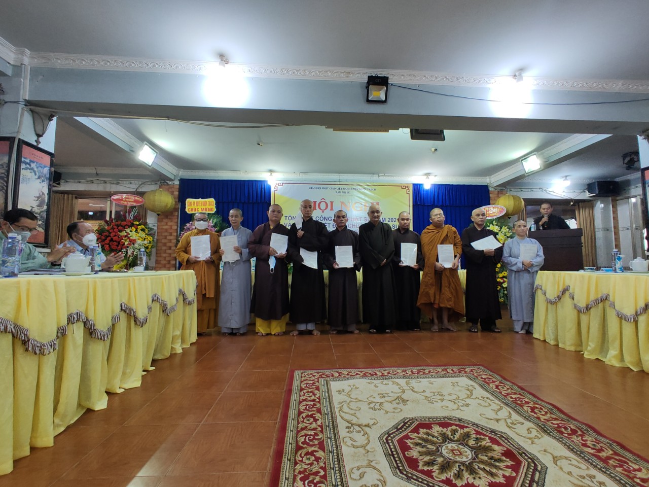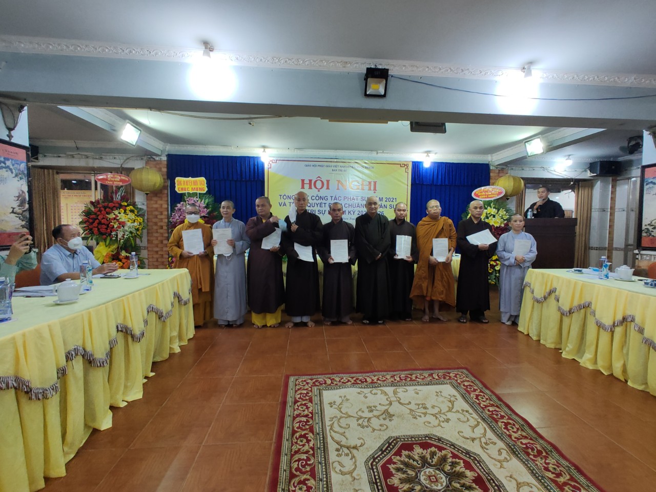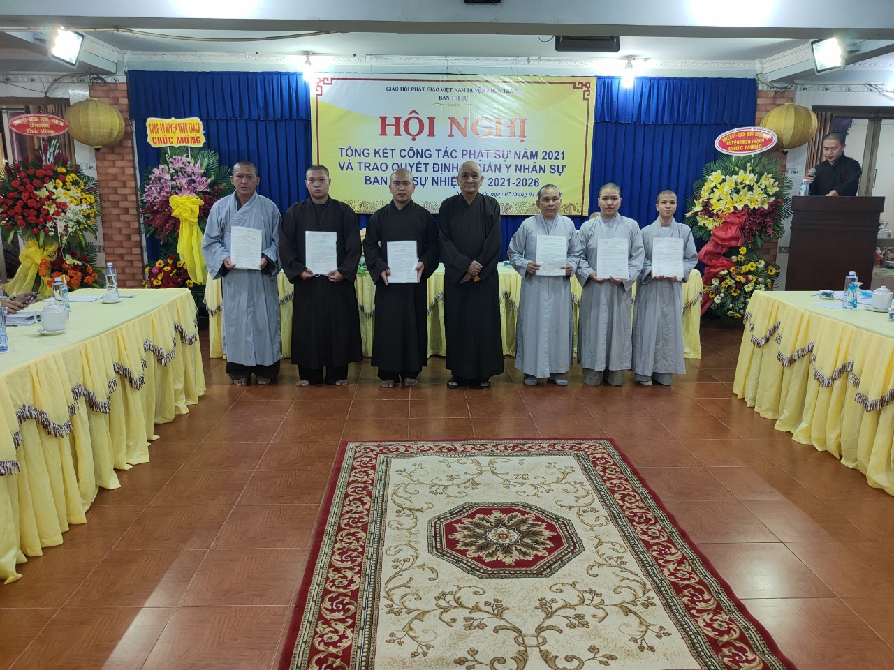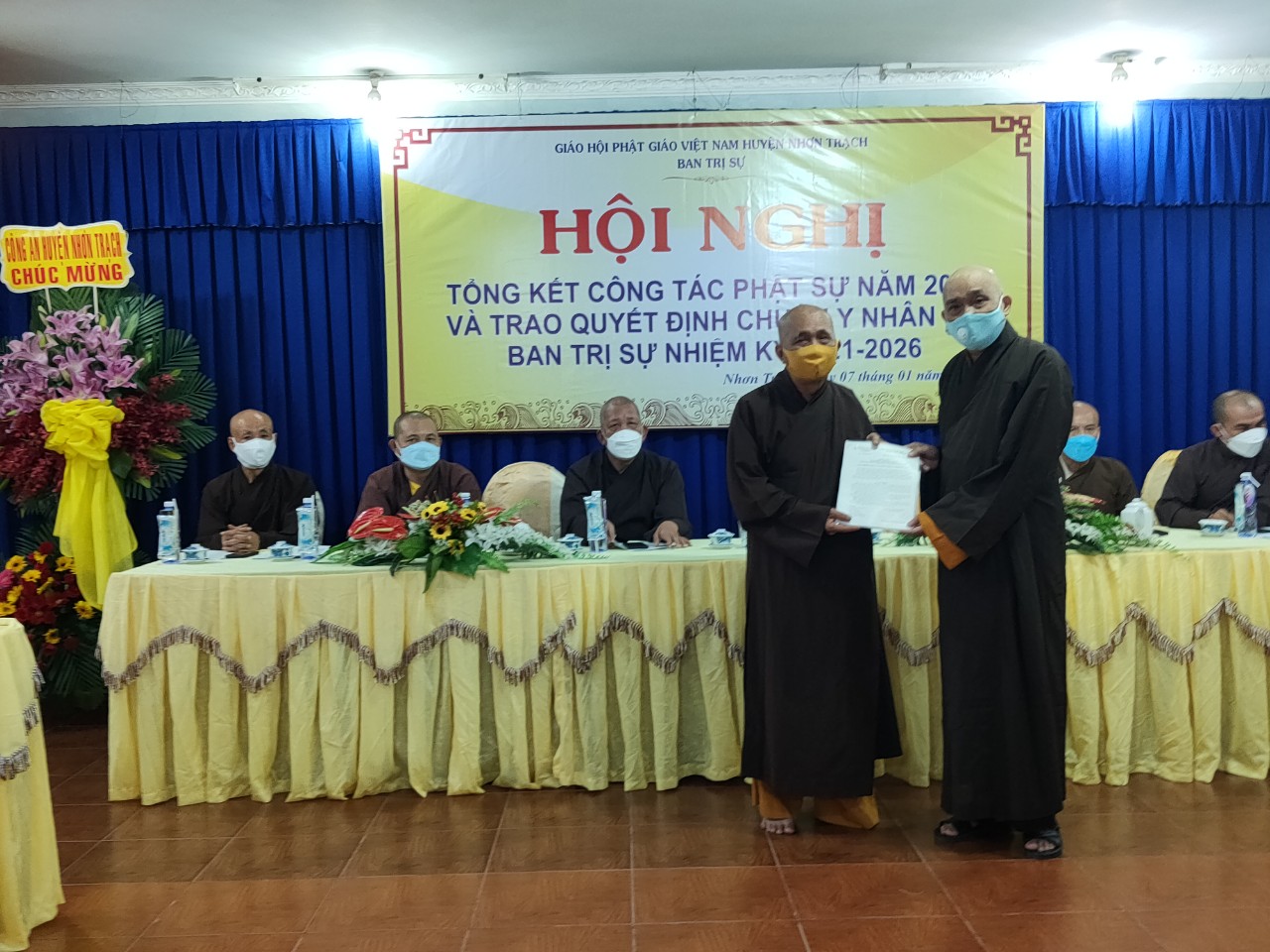 TT.Thích Thiện Pháp – Trưởng ban BTS Phật giáo huyện Nhơn Trạch thừa Ủy nhiệm Ban Thường Trực BTS GHPGVN tỉnh Đồng Nai trao Quyết định chuẩn y nhân sự BTS nhiệm kỳ 2021 – 2026 cho các thành viên trong Ban Trị sự nhận nhiệm của mình.