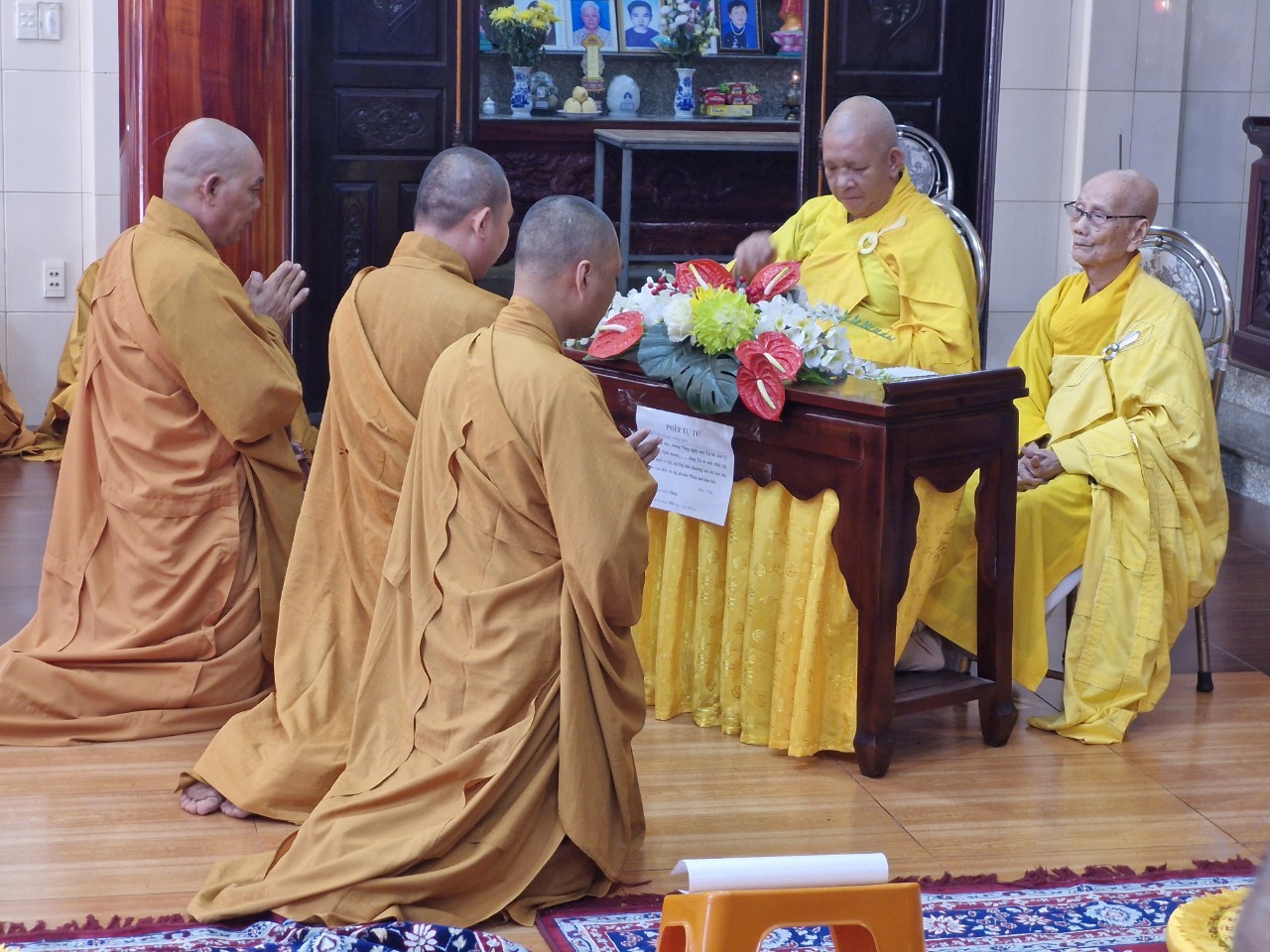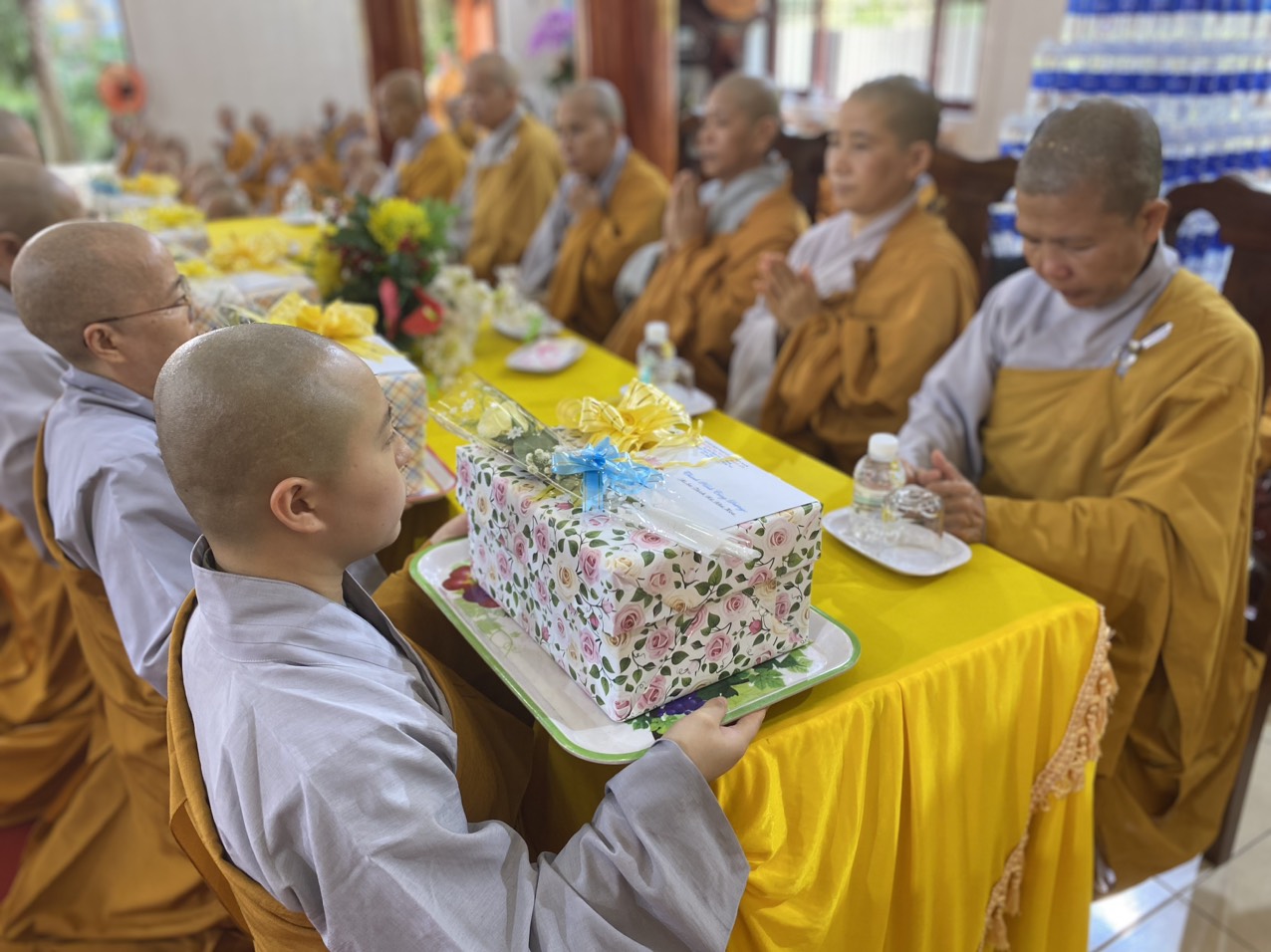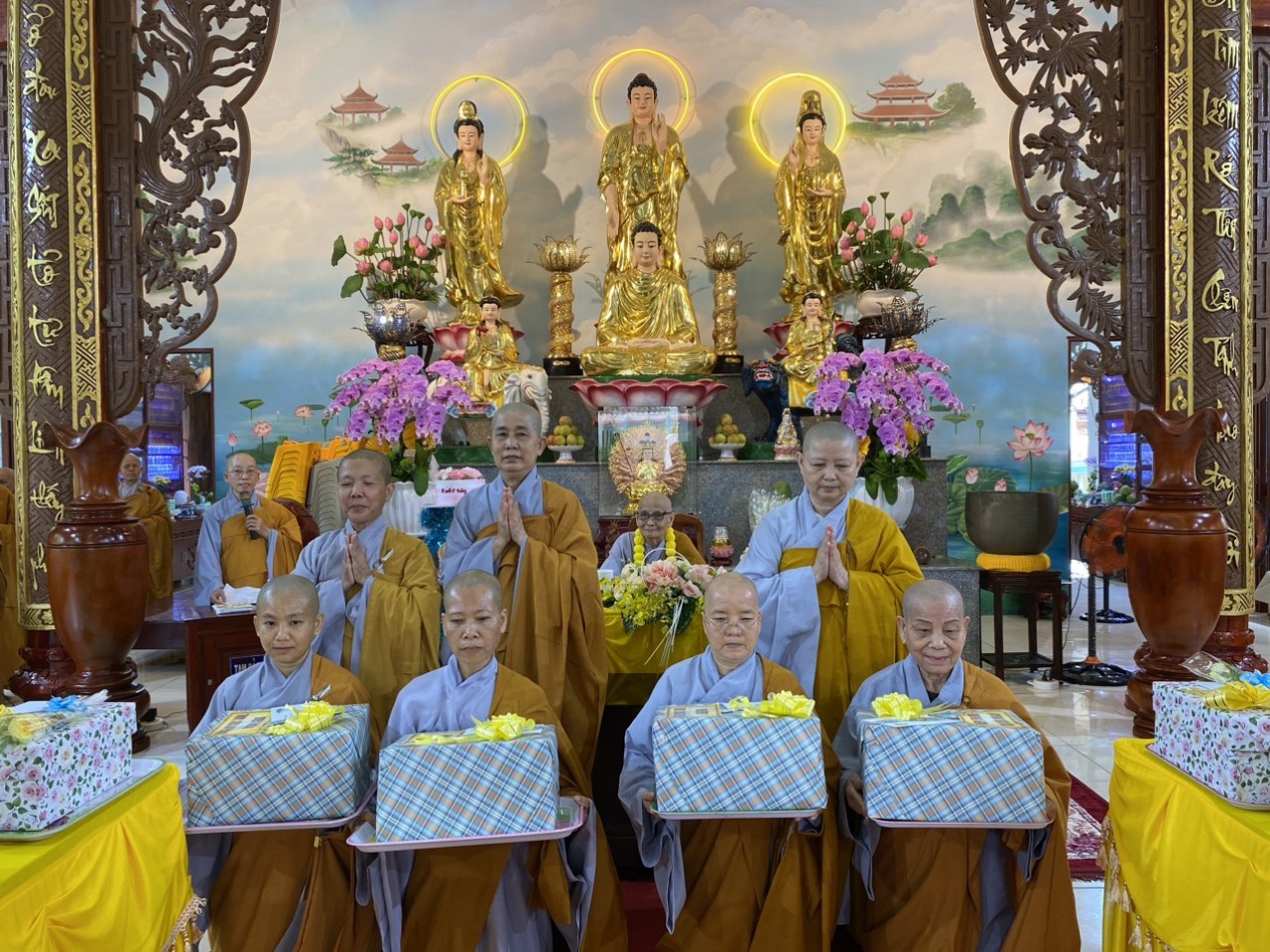 Nhân ngày lễ Tự tứ, chư Ni trong ban chức sự trường hạ đại diện chư hành giả an cư đã dâng lời khánh tuế kính mừng Ni Trưởng Thượng NHƯ hạ THUẬN – chánh Thiền chủ trường hạ được tăng thêm hạ lạp, cầu nguyện Thầy pháp thể kinh an, đạo thọ miên trường và luôn là bóng cây che mát cho hành Ni chúng. Sau đó, chư Tôn Đức Ni kính dâng lên Ni trưởng đóa hoa giải thoát nhằm thể hiện tấm lòng tri ân sâu sắc của hàng đệ tử kính dâng lên bậc Thầy khả kính đã luôn che chở, dìu dắt hàng Ni chúng trên con đường tu học giải thoát.
