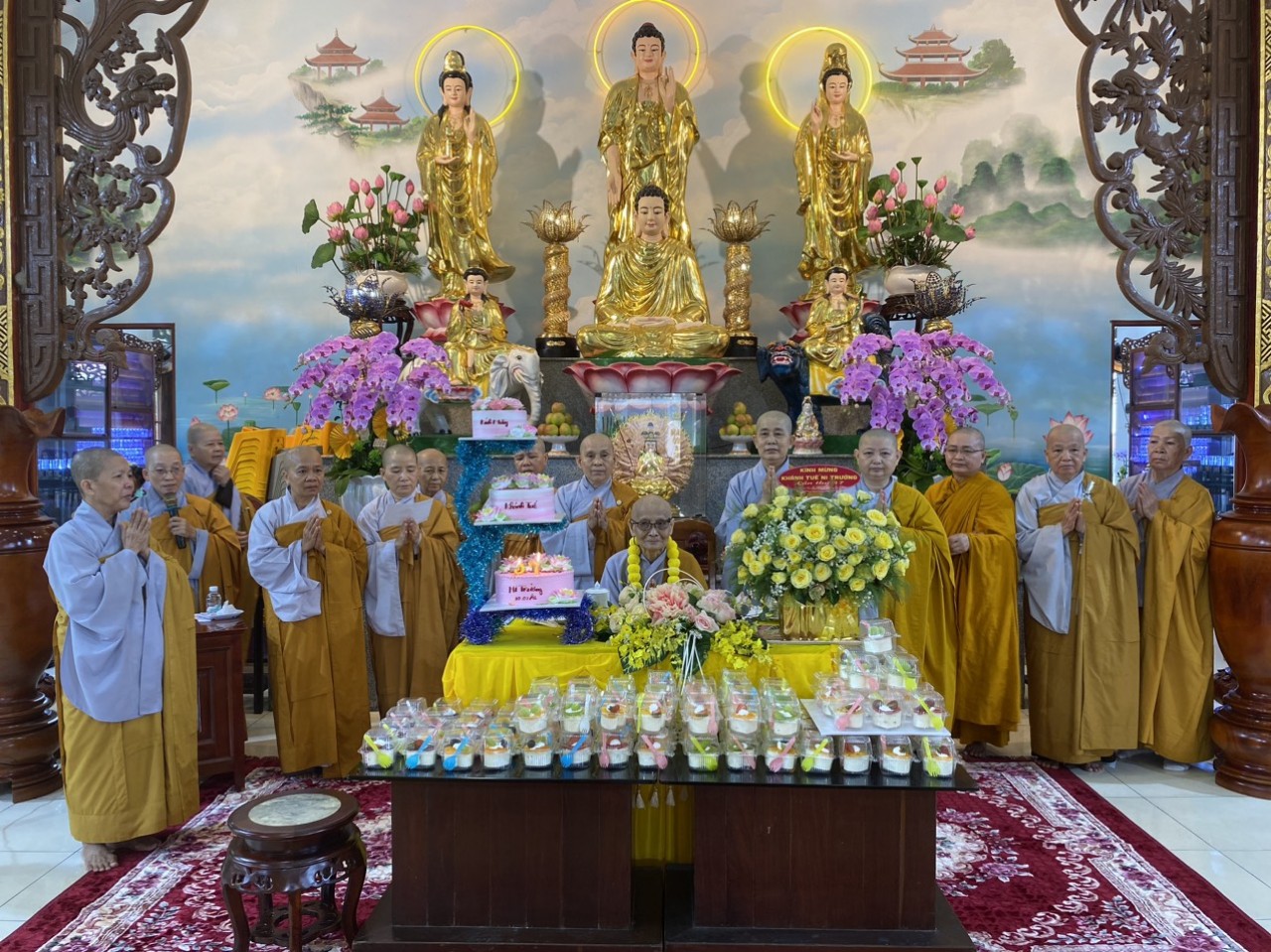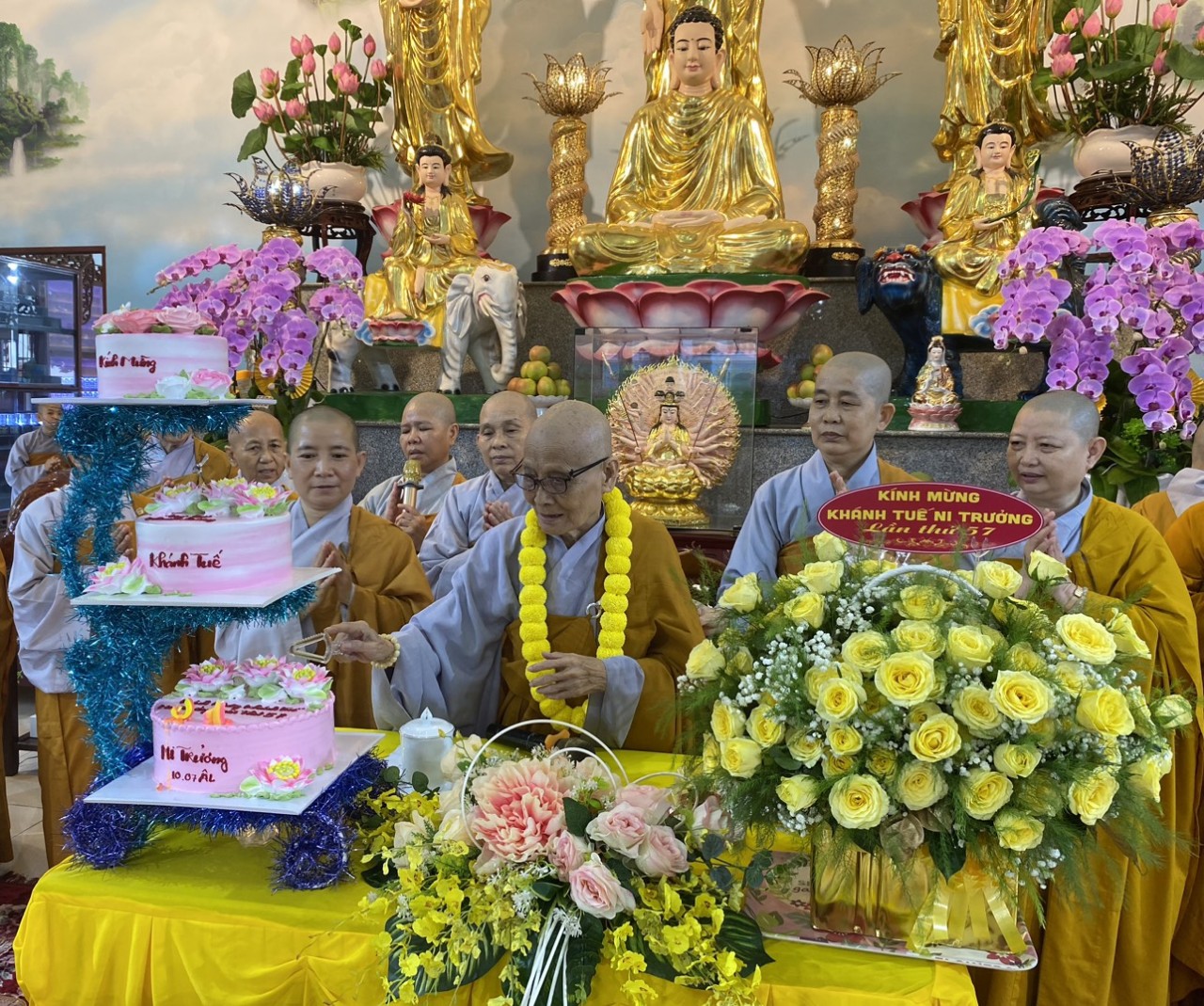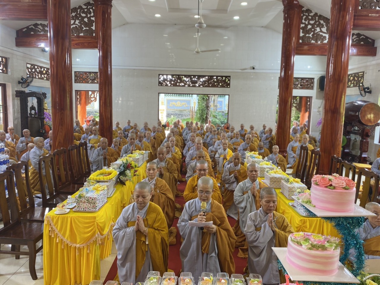 Nhân ngày lễ Tự tứ, chư Ni trong ban chức sự trường hạ đại diện chư hành giả an cư đã dâng lời khánh tuế kính mừng Ni Trưởng Thượng NHƯ hạ THUẬN – chánh Thiền chủ trường hạ được tăng thêm hạ lạp, cầu nguyện Thầy pháp thể kinh an, đạo thọ miên trường và luôn là bóng cây che mát cho hành Ni chúng. Sau đó, chư Tôn Đức Ni kính dâng lên Ni trưởng đóa hoa giải thoát nhằm thể hiện tấm lòng tri ân sâu sắc của hàng đệ tử kính dâng lên bậc Thầy khả kính đã luôn che chở, dìu dắt hàng Ni chúng trên con đường tu học giải thoát.