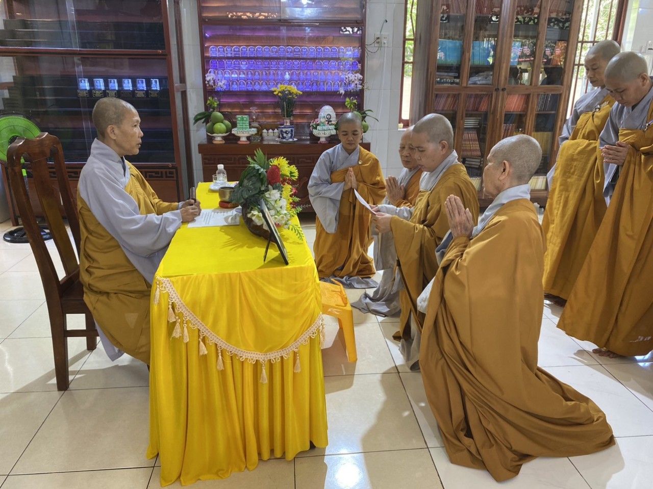 Tại hạ trường chùa Diệu Âm, sau khi niêm hương, đảnh lễ Tam bảo và chuyển lời giáo giới từ đại Tăng, chư hành giả an cư đã tuần tự 3 vị theo hạ lạp bạch pháp Tự tứ theo đúng tinh thần Tỳ Ni Luật tạng Phật dạy.